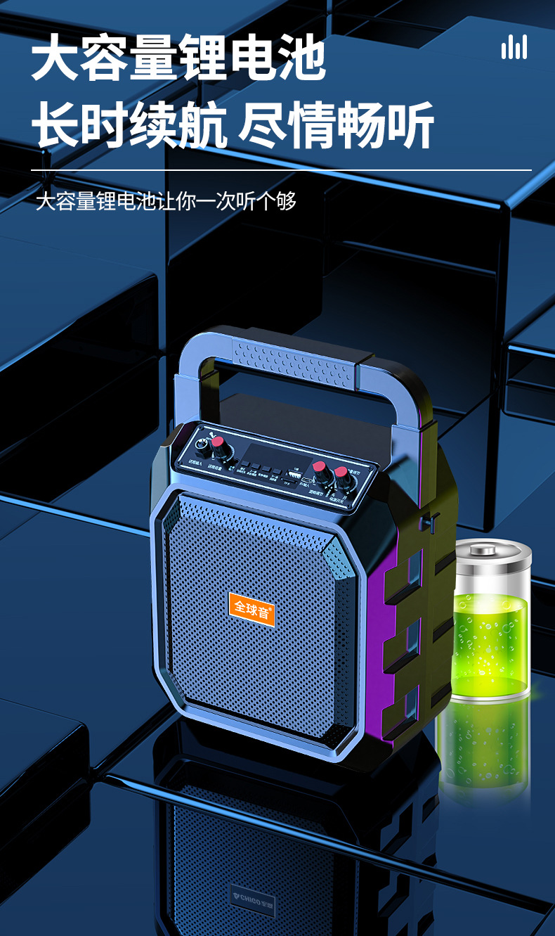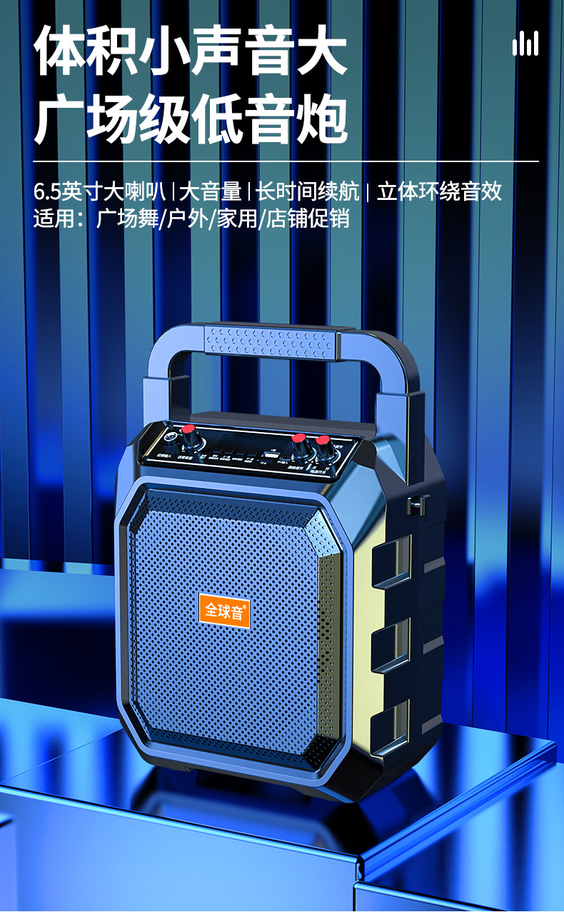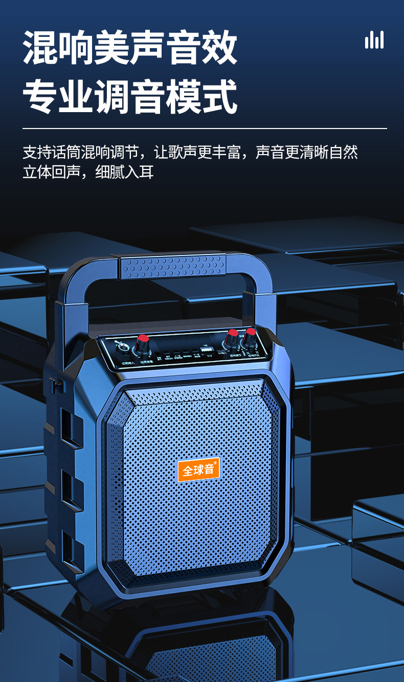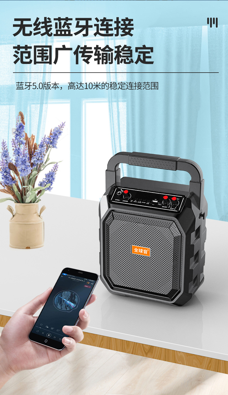 글로벌 사운드 휴대용 사각형 댄스 블루투스 스피커 가정용 노래방 일체형 서브우퍼 오디오 마이크 고음질