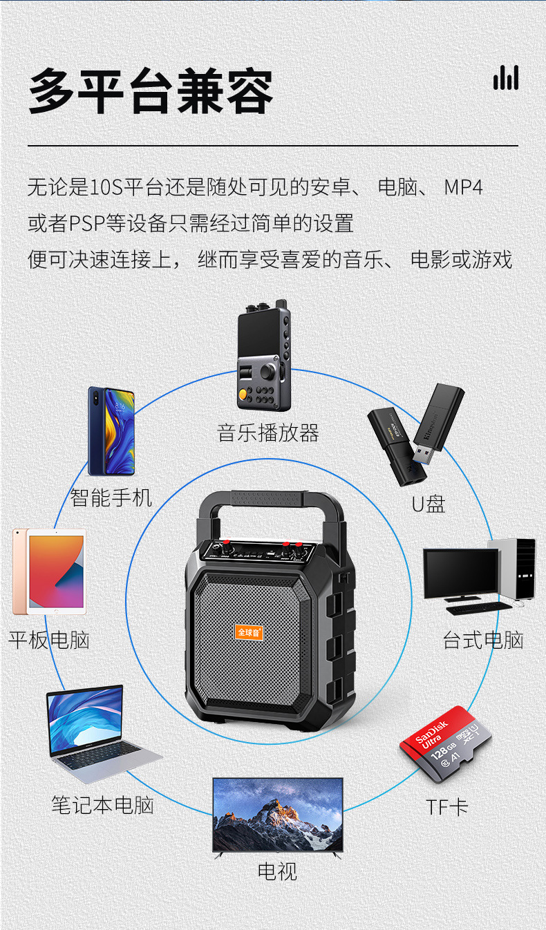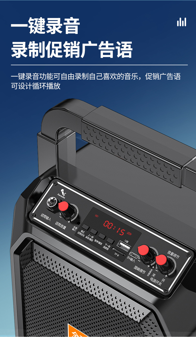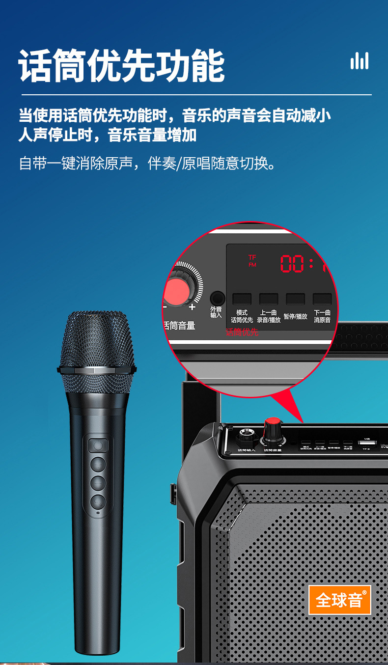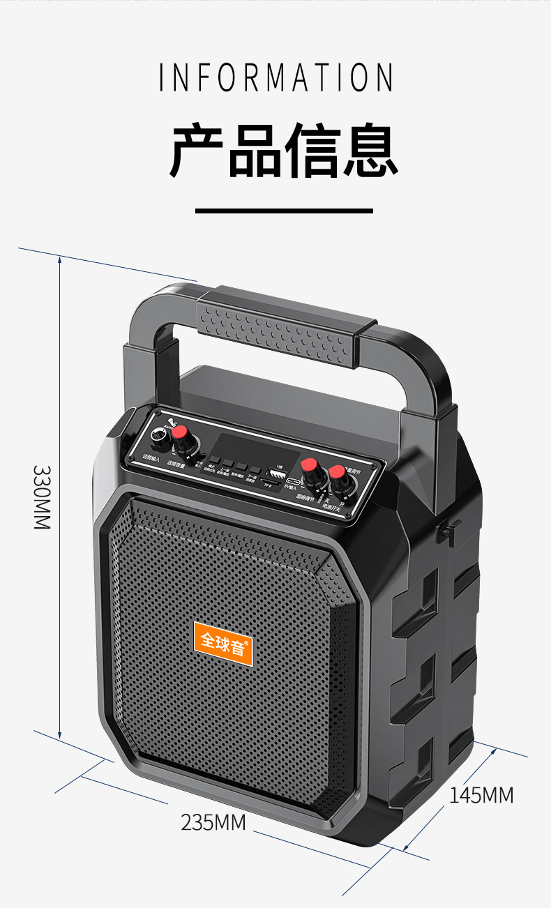 글로벌 사운드 휴대용 사각형 댄스 블루투스 스피커 가정용 노래방 일체형 서브우퍼 오디오 마이크 고음질