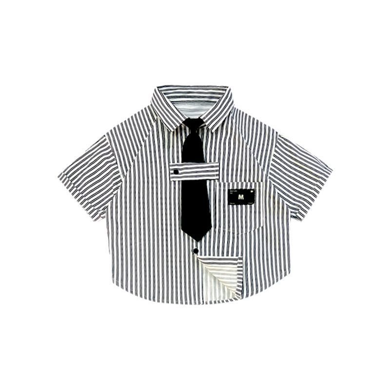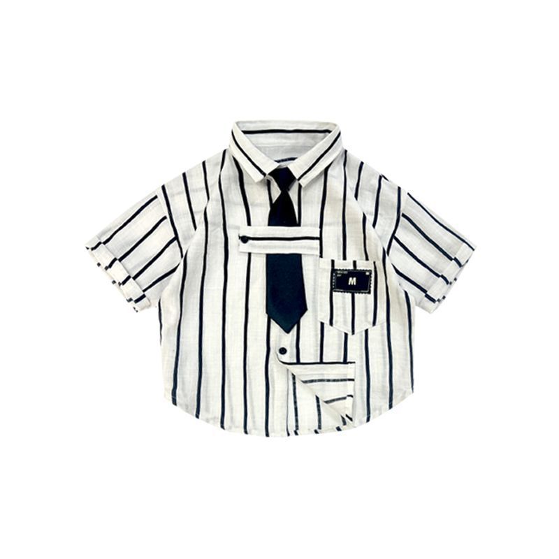 새로운 여름 반팔 셔츠 소년 셔츠 세련된 소녀 탑 스트라이프 옷깃 어린이 셔츠 2-10 다용도