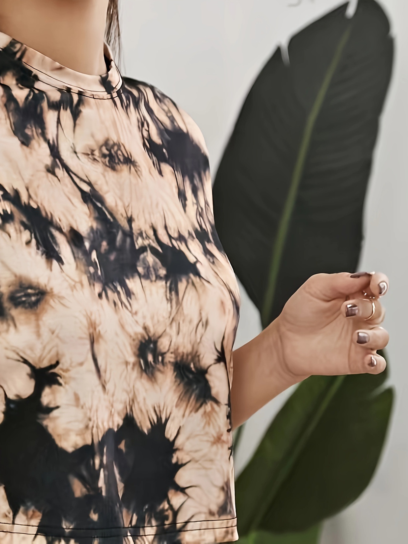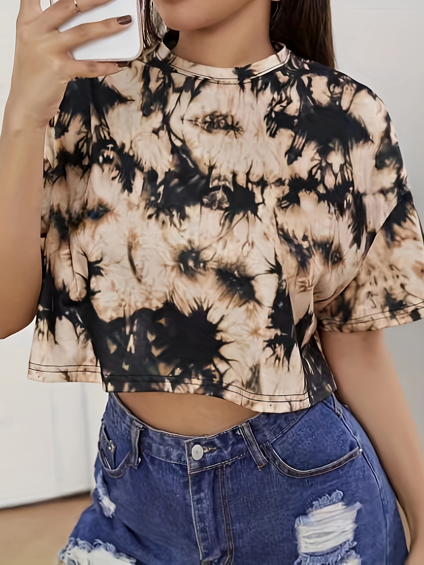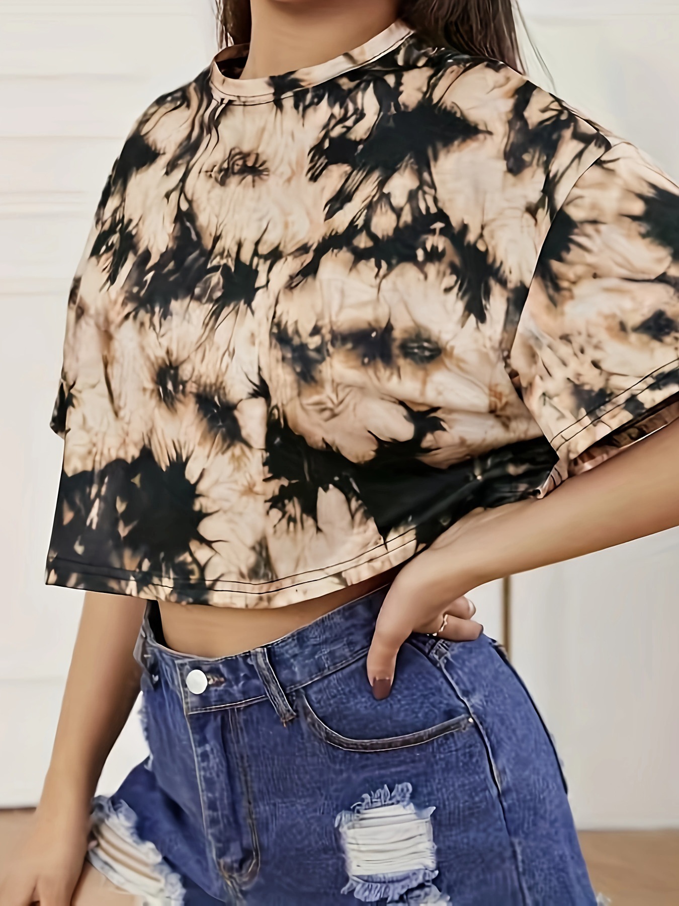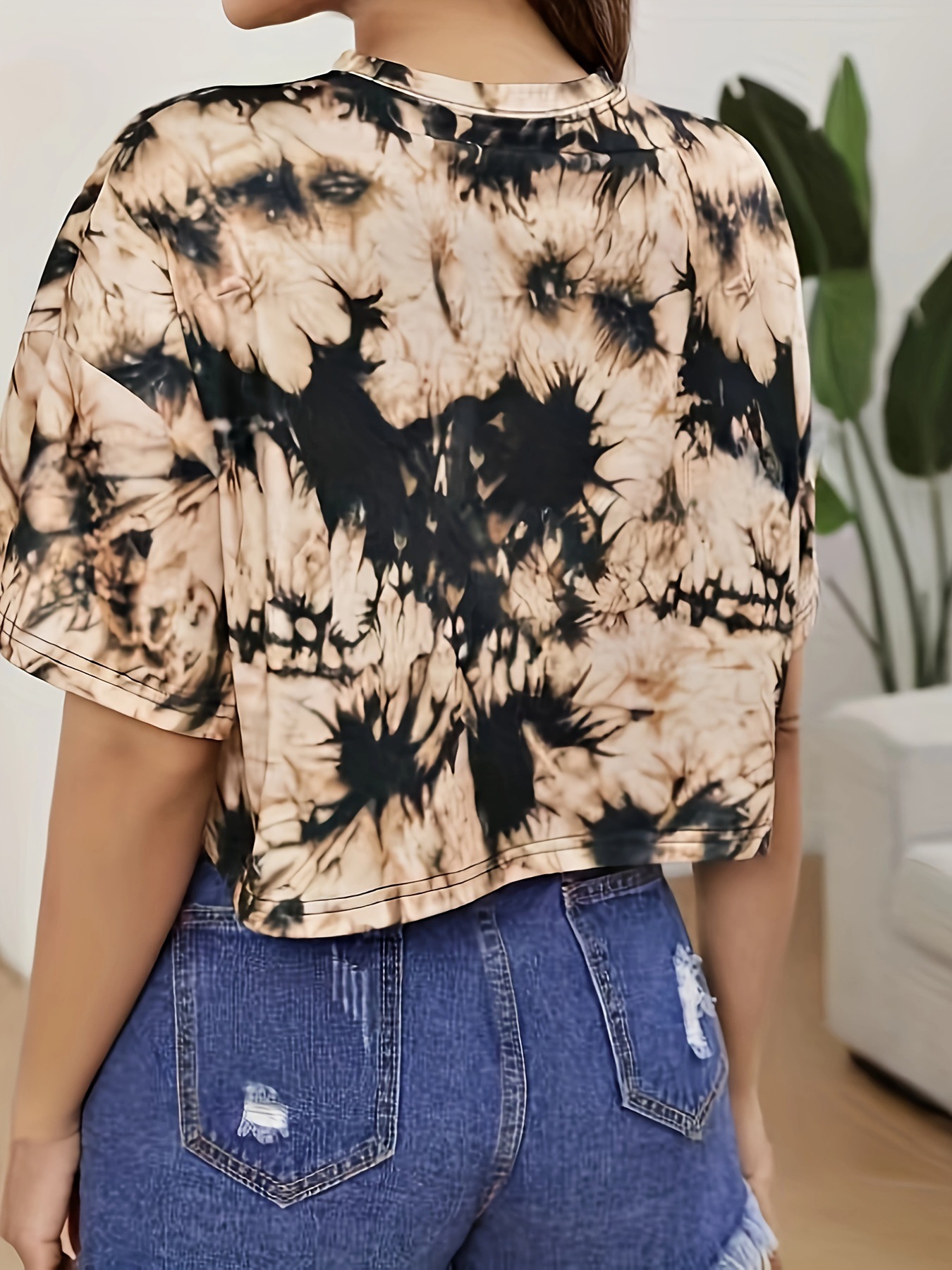 국경 간 대외 무역 여성용 어깨 타이 염색 디자인 반바지 티셔츠 배꼽 노출 루즈핏 반팔 캐주얼 탑스토어 가기