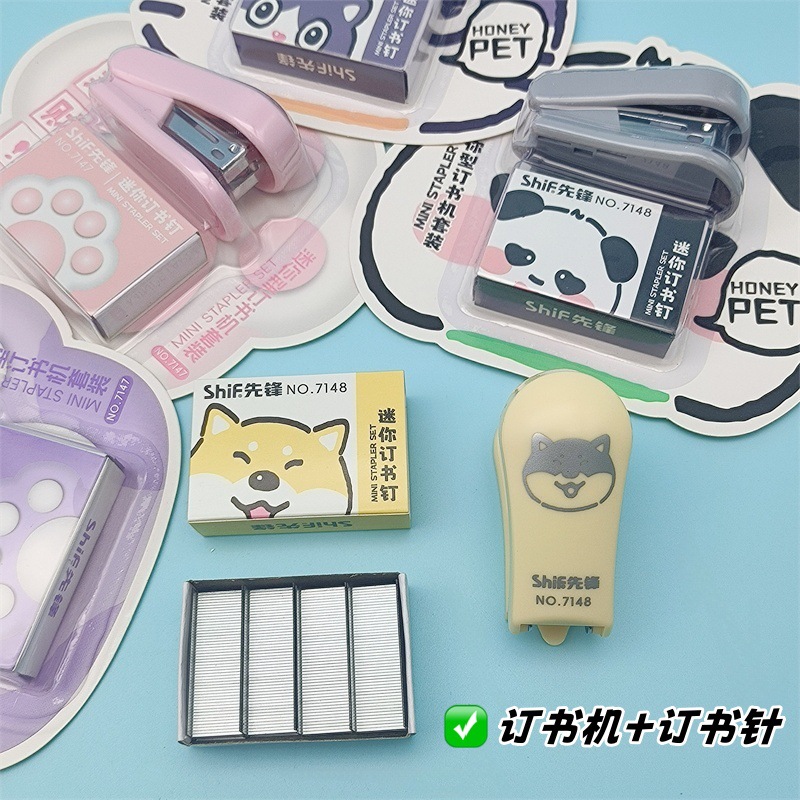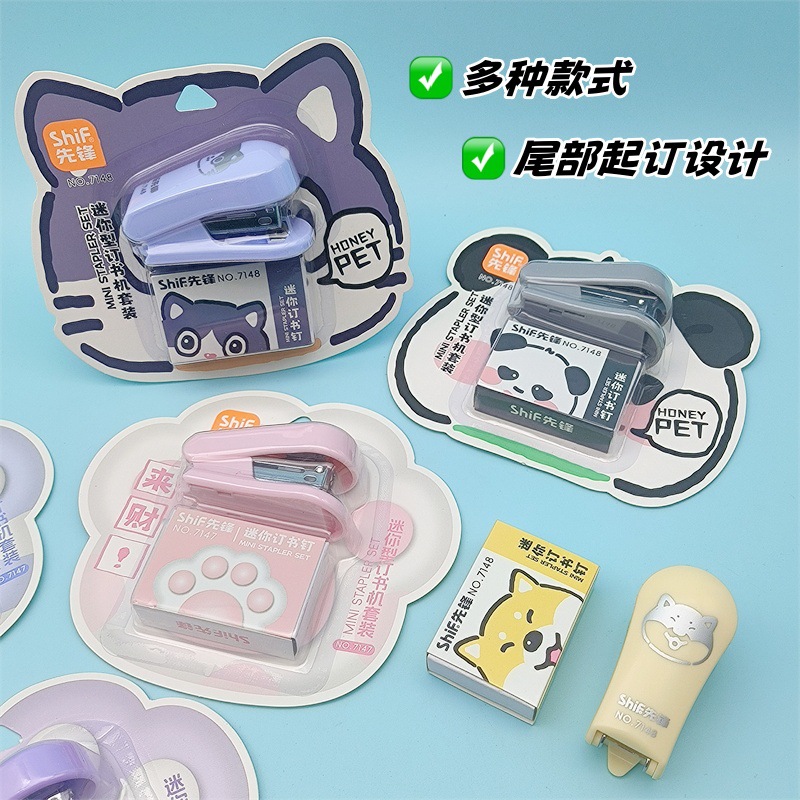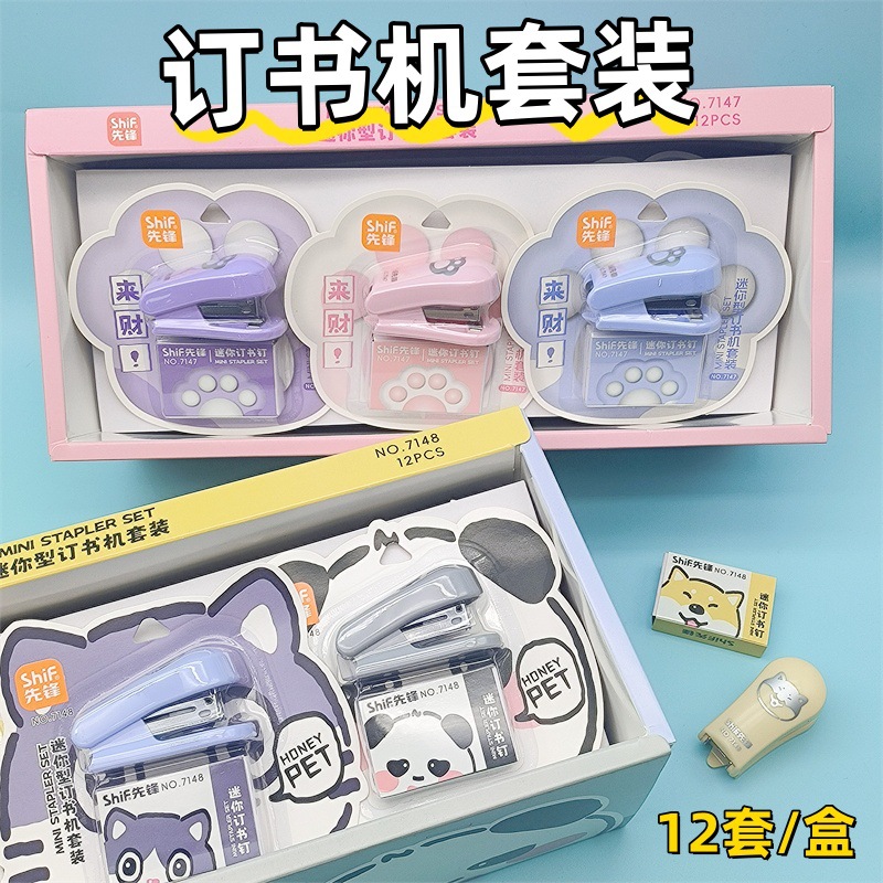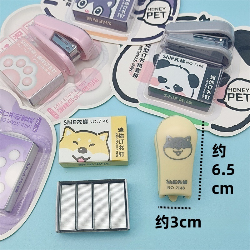 무료 배송 초등학생을위한 개척자 미니 귀여운 만화 스테이플러 작은 2 피스 컴팩트 세트 도매스토어 가기