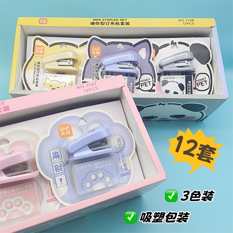 무료 배송 초등학생을위한 개척자 미니 귀여운 만화 스테이플러 작은 2 피스 컴팩트 세트 도매