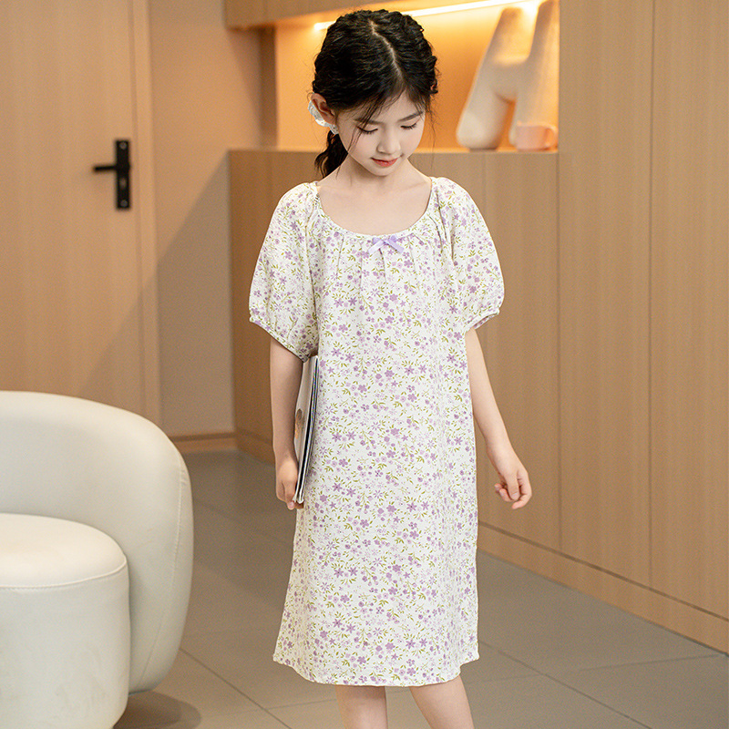 여자 드레스 여름 드레스 2025 새로운 여자 꽃 드레스 아기 여름 짧은 소매 드레스 얇은 어린이 공주 드레스스토어 가기