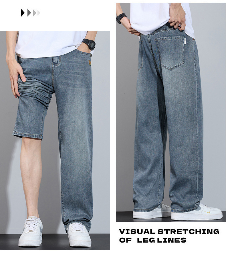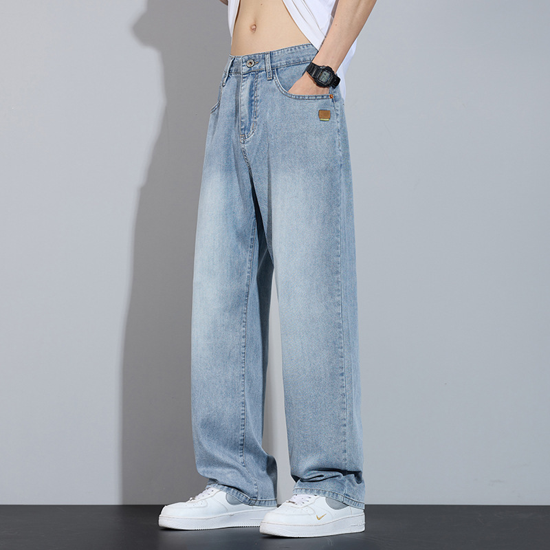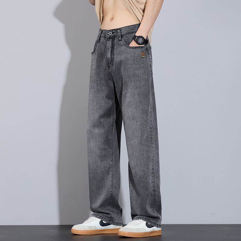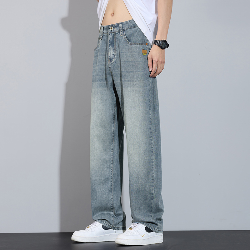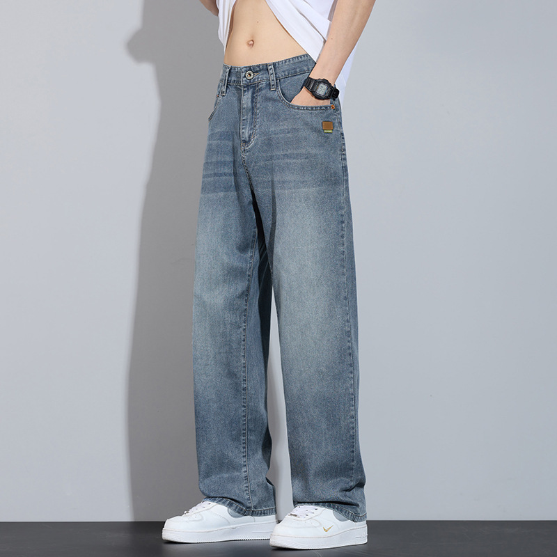 남성용 봄 여름 루즈 스트레이트 청바지 2025 아메리칸 하이 스트리트 패션 브랜드 와이드 레그 캐주얼 롱 팬츠 남성 트렌드스토어 가기