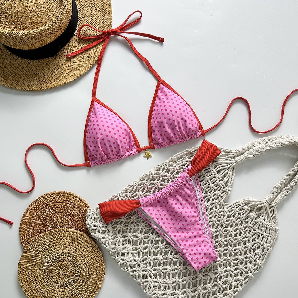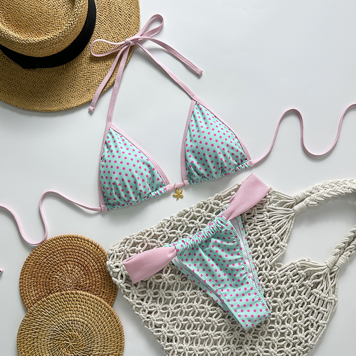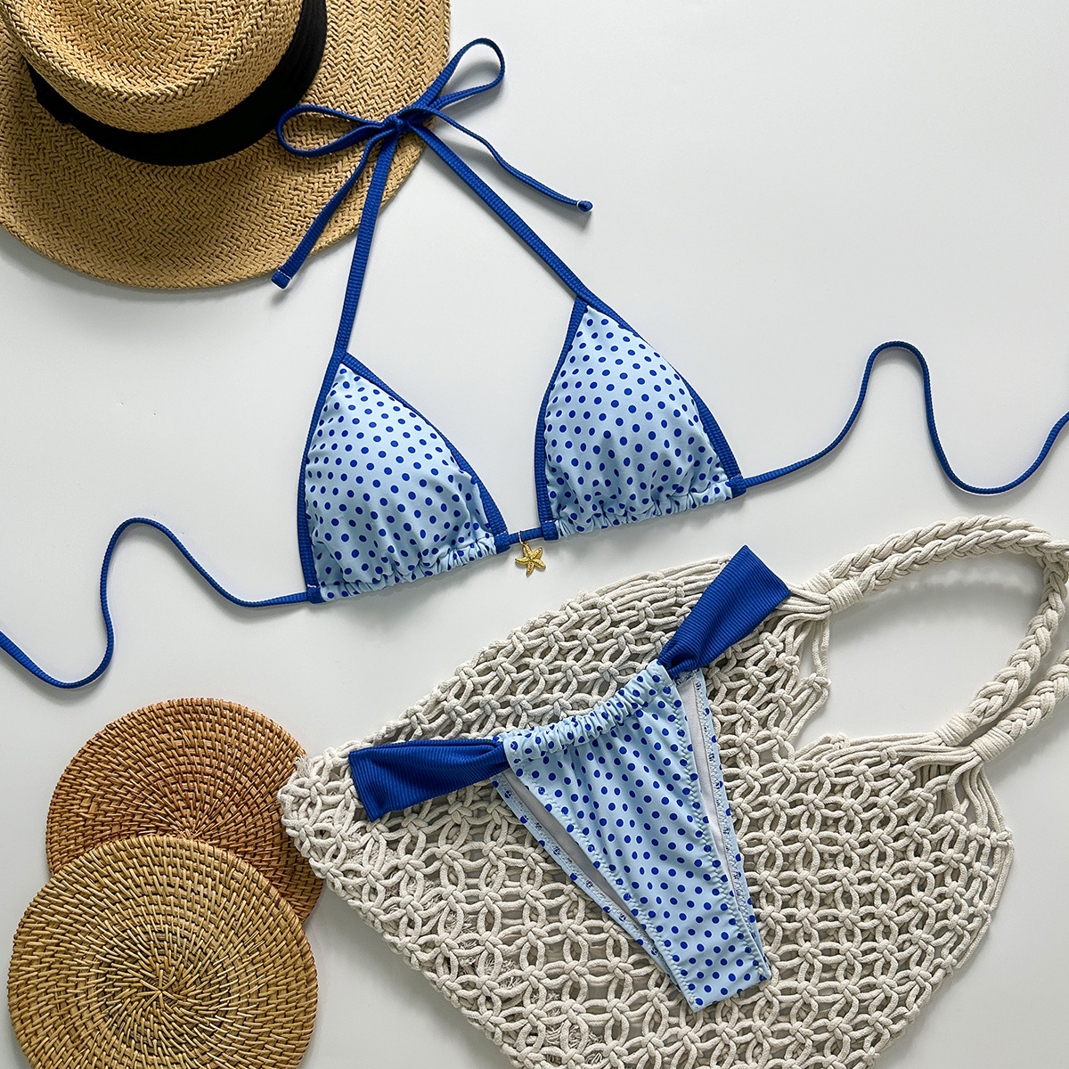 유럽과 미국의 새로운 스타일의 스플릿 수영복, 여성스럽고 상큼한 3점 비키니, 타이트한 백리스 크로스보더 대외 무역 수영복