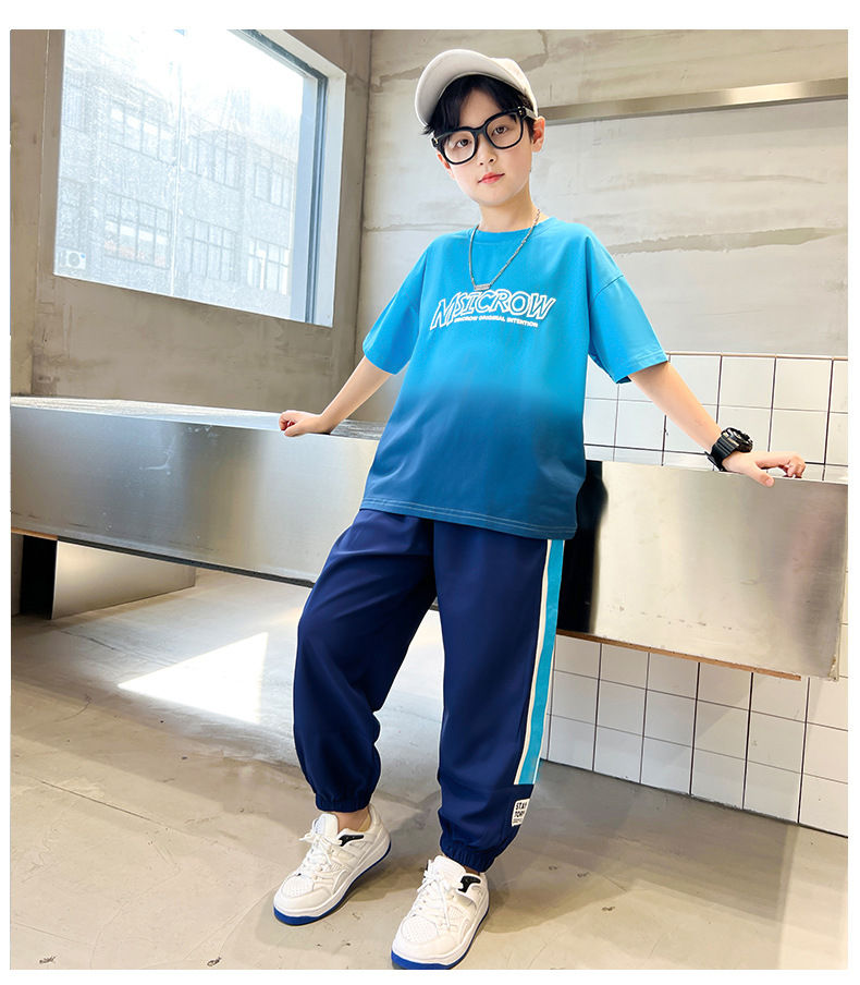 남아 여름 정장, 인터넷 연예인 스타일, 중대형 아동 스포츠 투피스 세트, 아동복, 패셔너블한 반팔 남아, 멋지고 트렌디함스토어 가기
