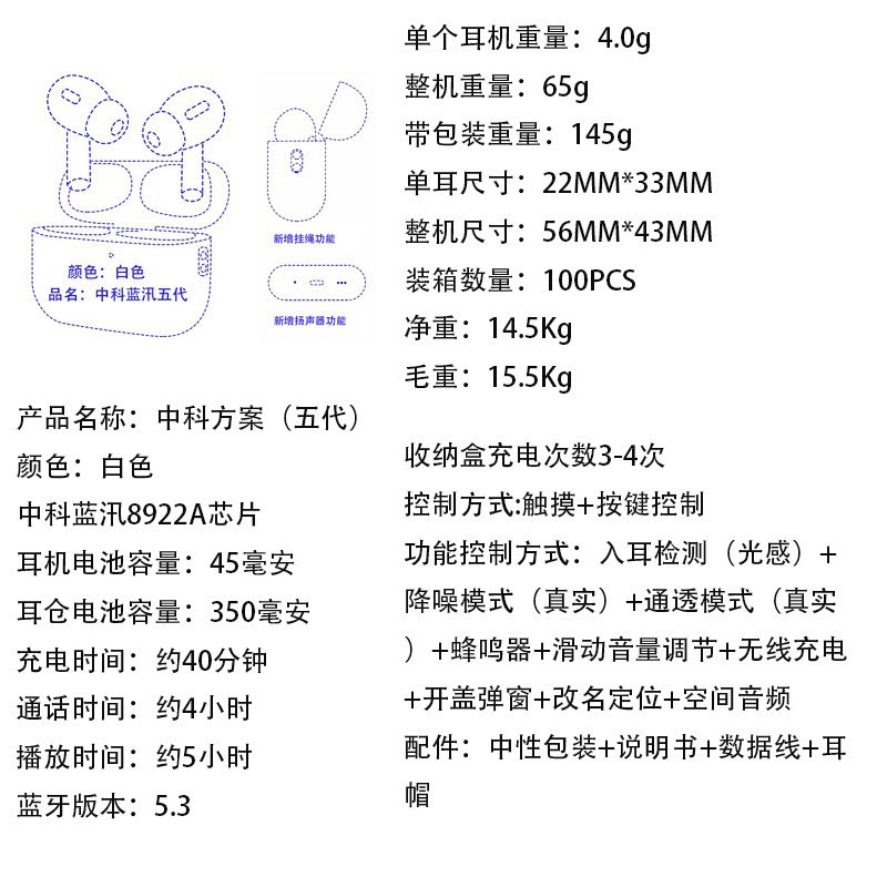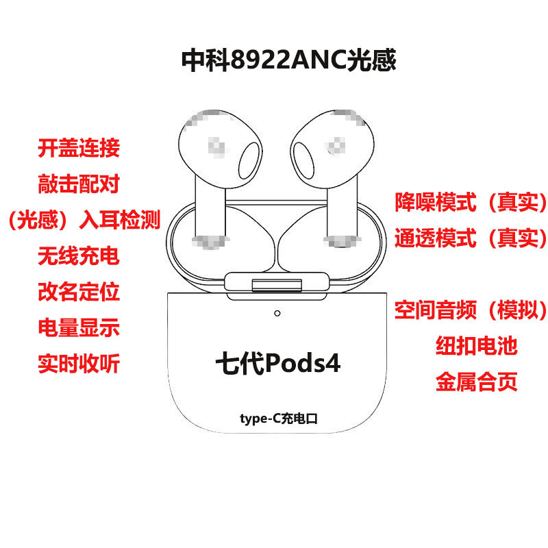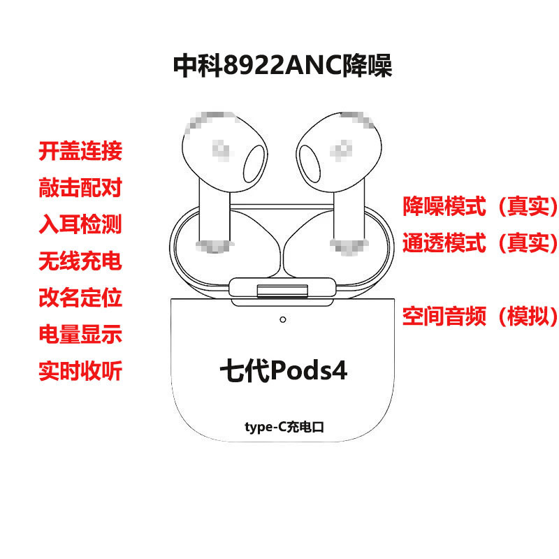 七代(Pods4)中科8922ANC(type-C充电口)参数: