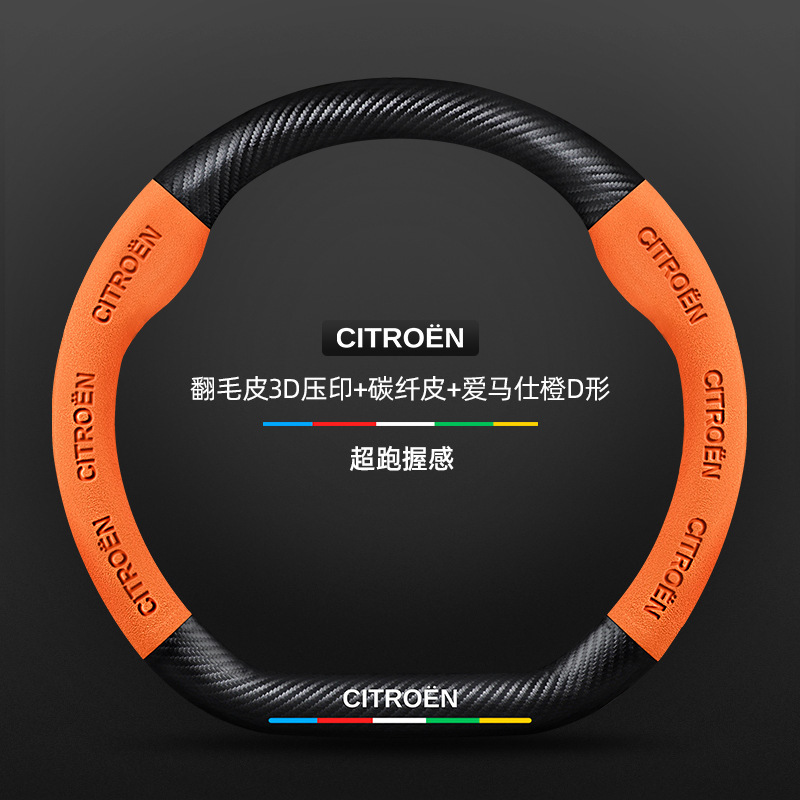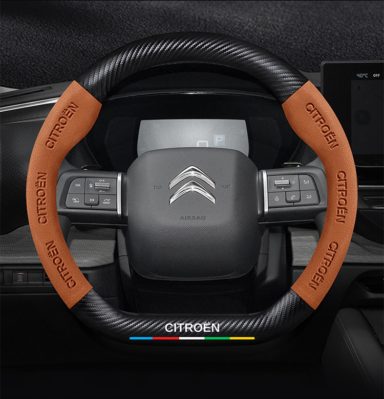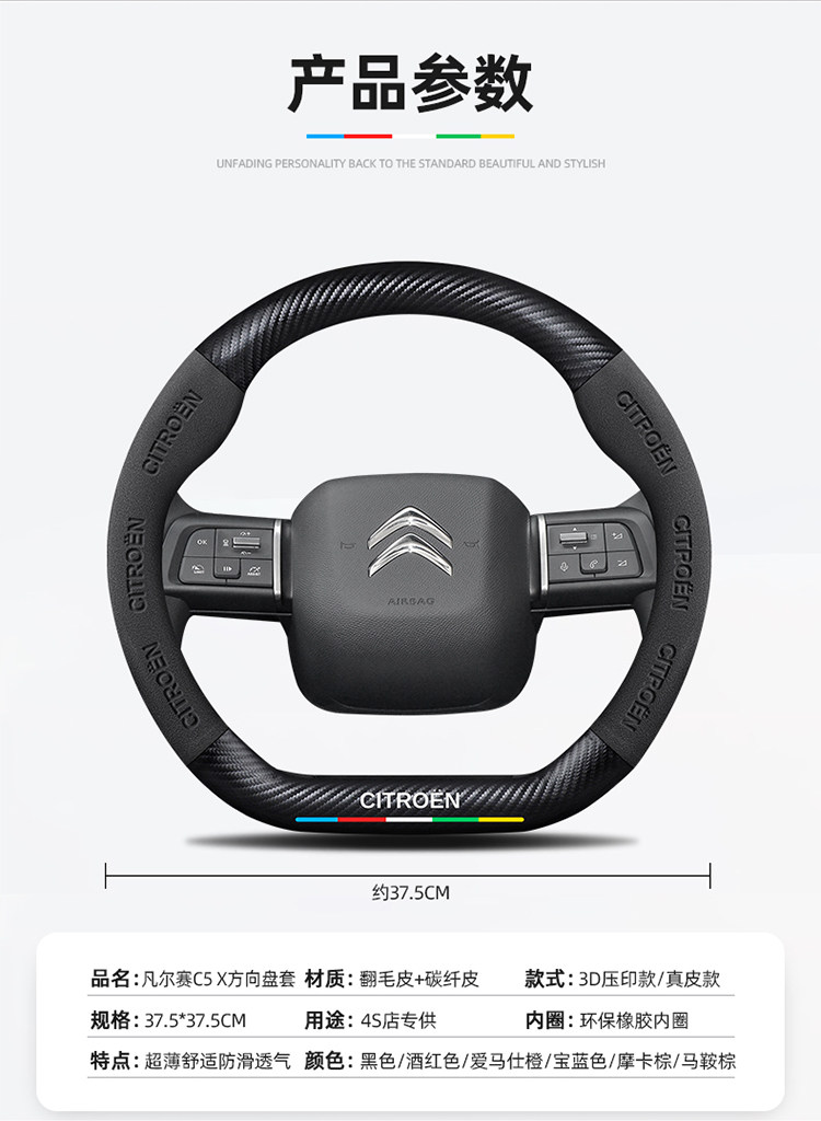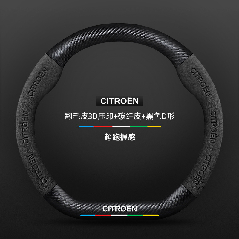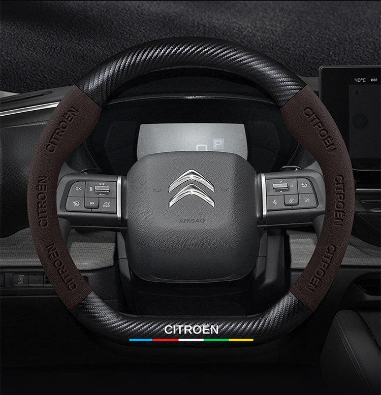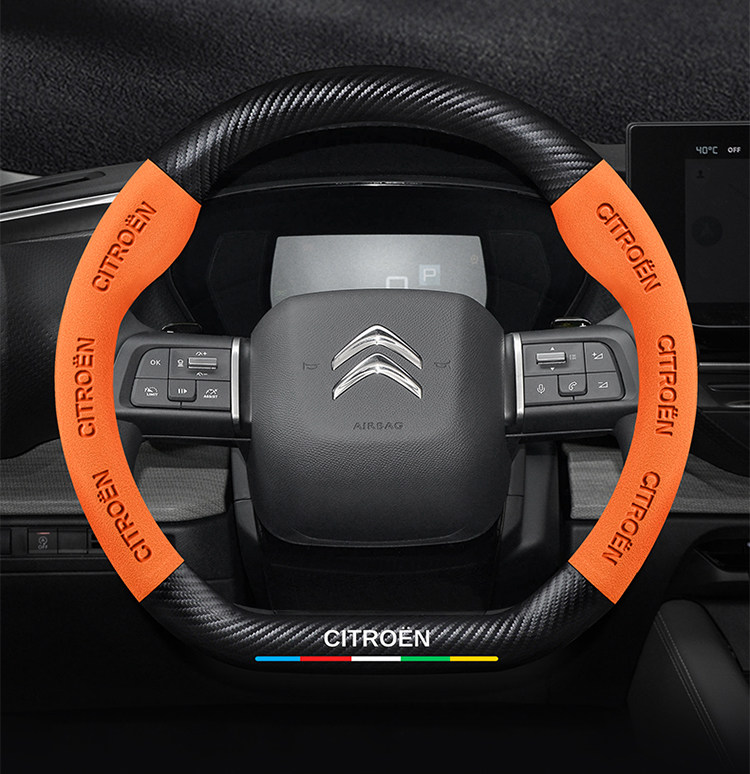 시트로엥 베르사유 c5x 스티어링 휠 커버 21-24 탄소 섬유 미끄럼 방지 가죽 스웨이드 초박형 자동차 핸들 커버스토어 가기