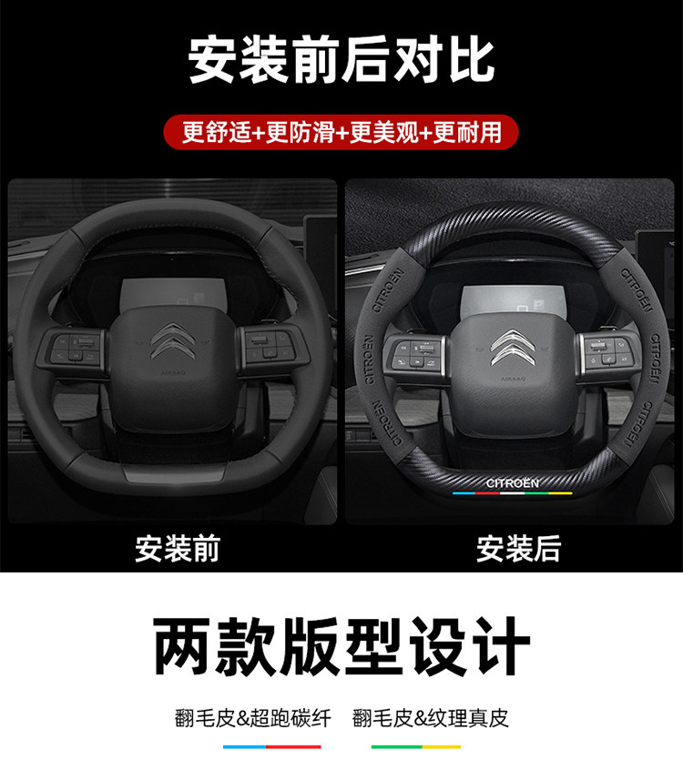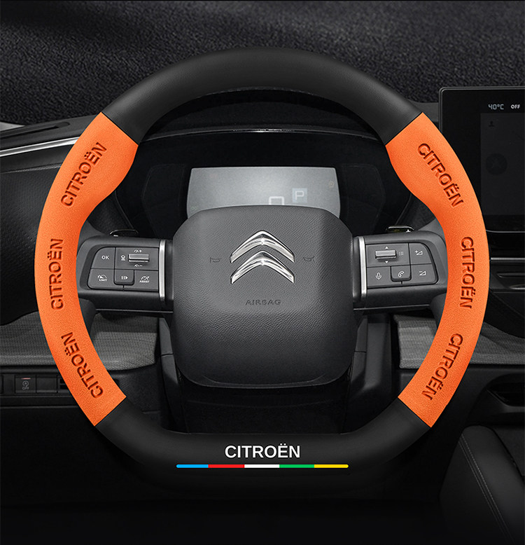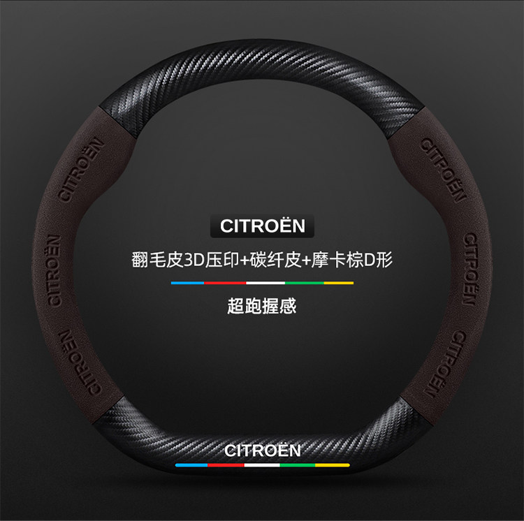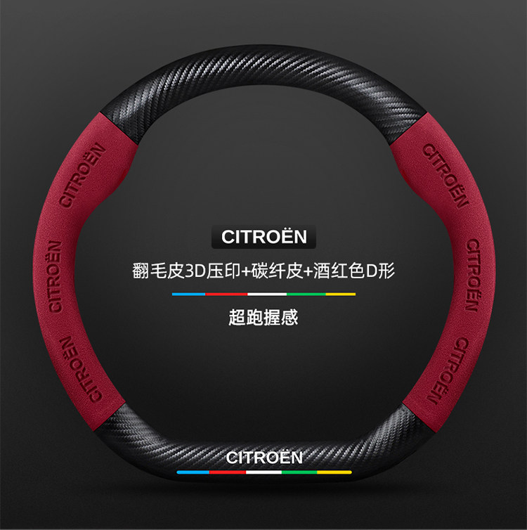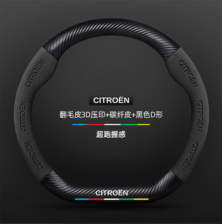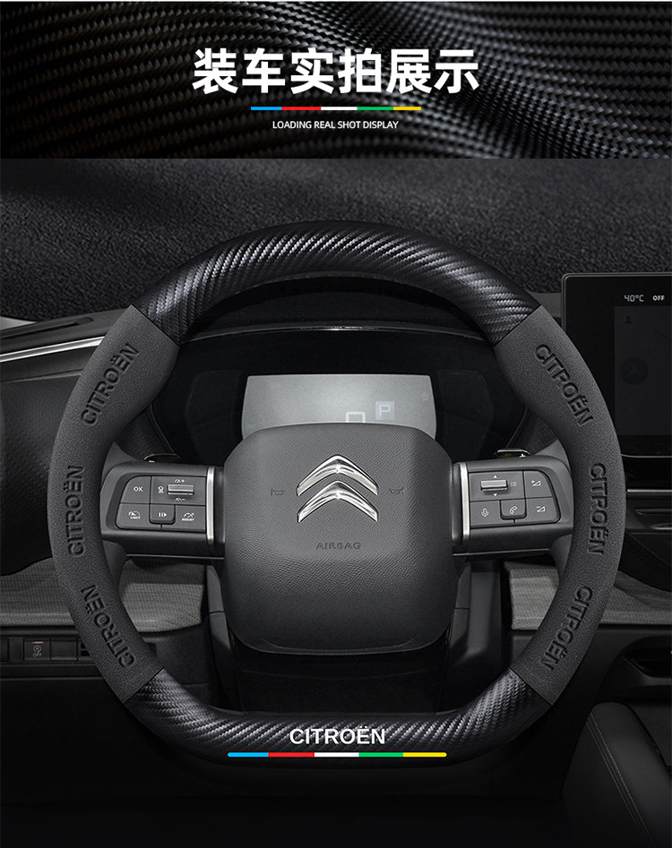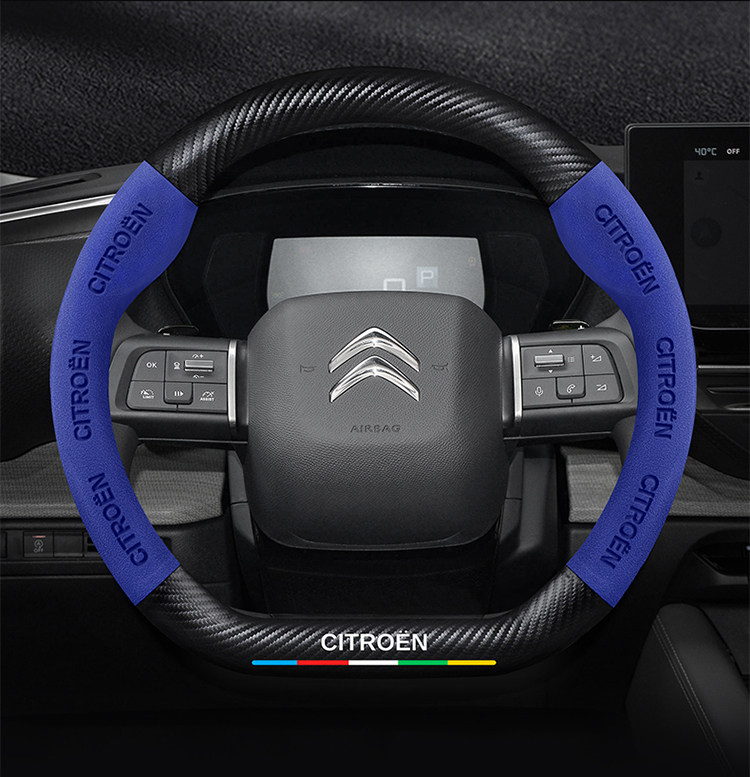 시트로엥 베르사유 c5x 스티어링 휠 커버 21-24 탄소 섬유 미끄럼 방지 가죽 스웨이드 초박형 자동차 핸들 커버스토어 가기