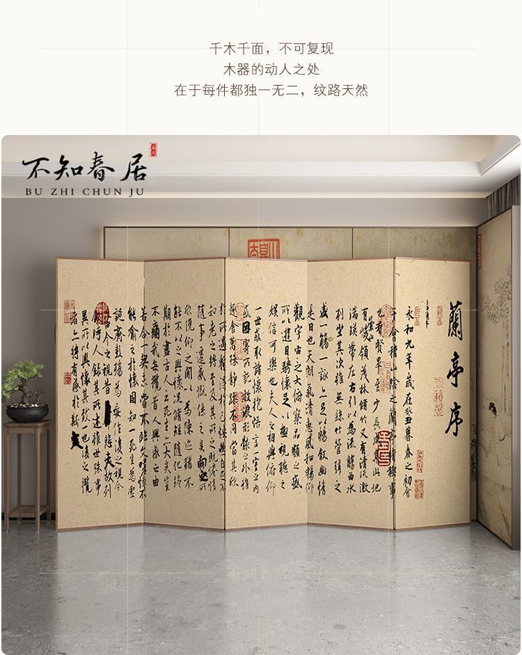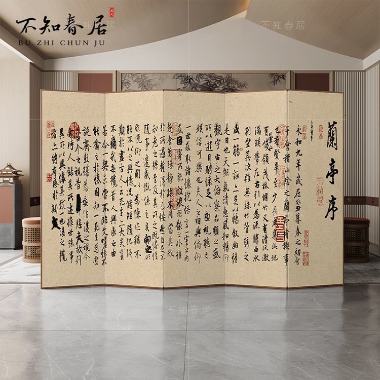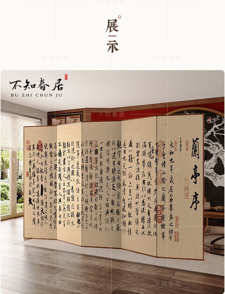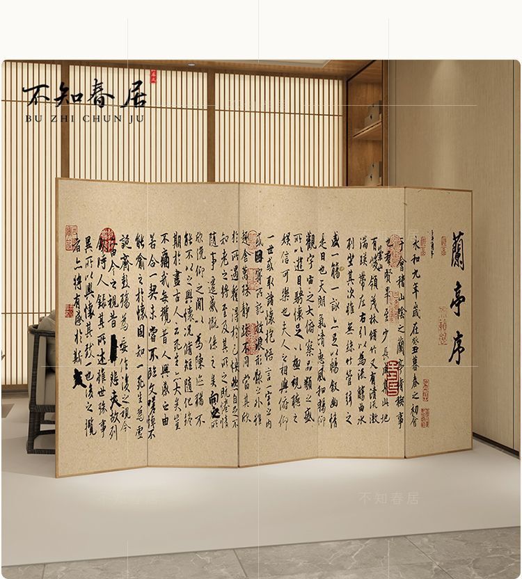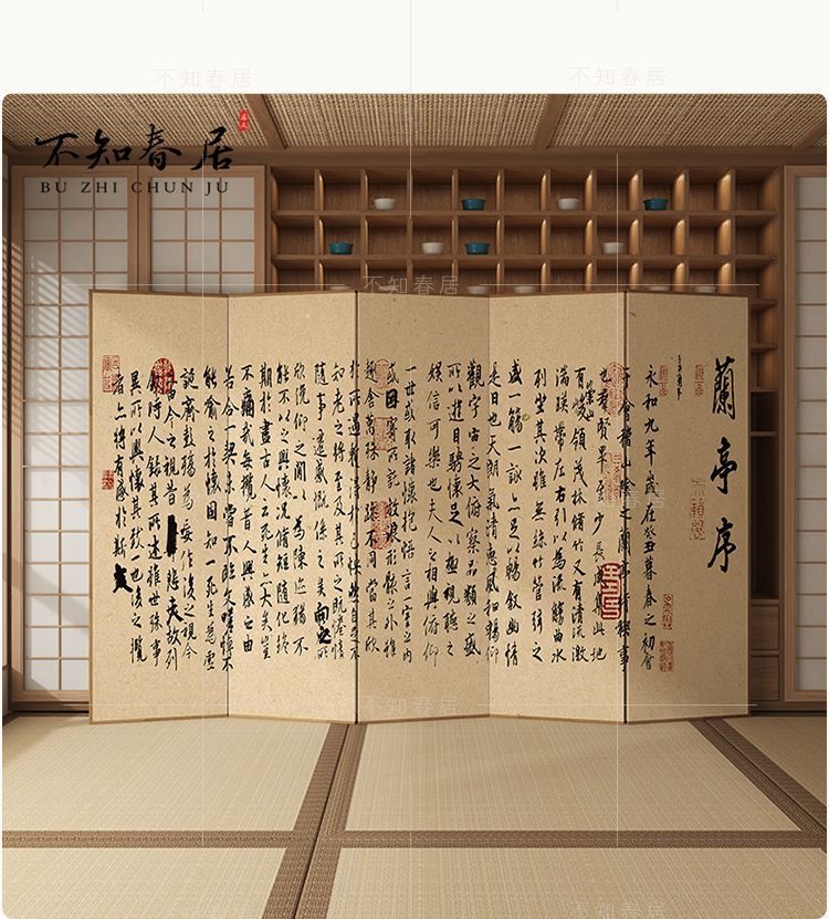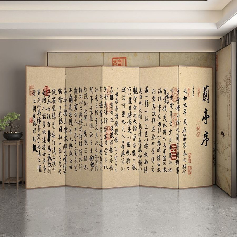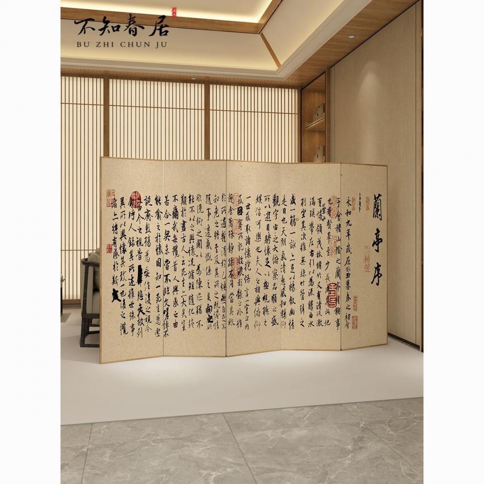 양면 미적 스크린 접이식 모바일 새로운 중국 스타일 거실 파티션 찻집 사무실 패브릭 서예 Franling Preface