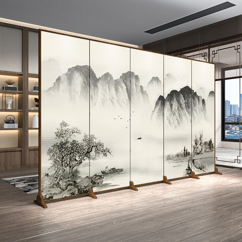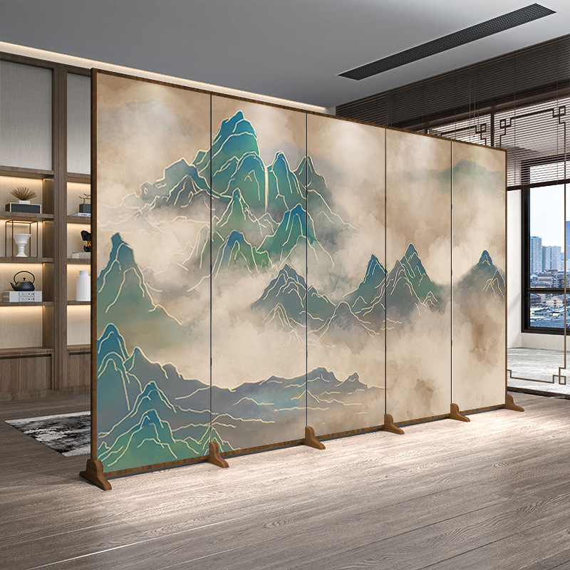 클래식 중국 스타일 스크린 파티션 거실 입구 현관 장식 찻집 풍경 나무 접이식 스크린 접이식 모바일 침대 옆