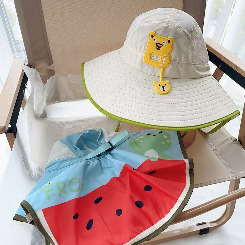 어린이 여름 차양 모자 큰 브림 소녀 태양 보호 목도리 모자 소년 아기 해변 어부 모자 야외 태양 모자