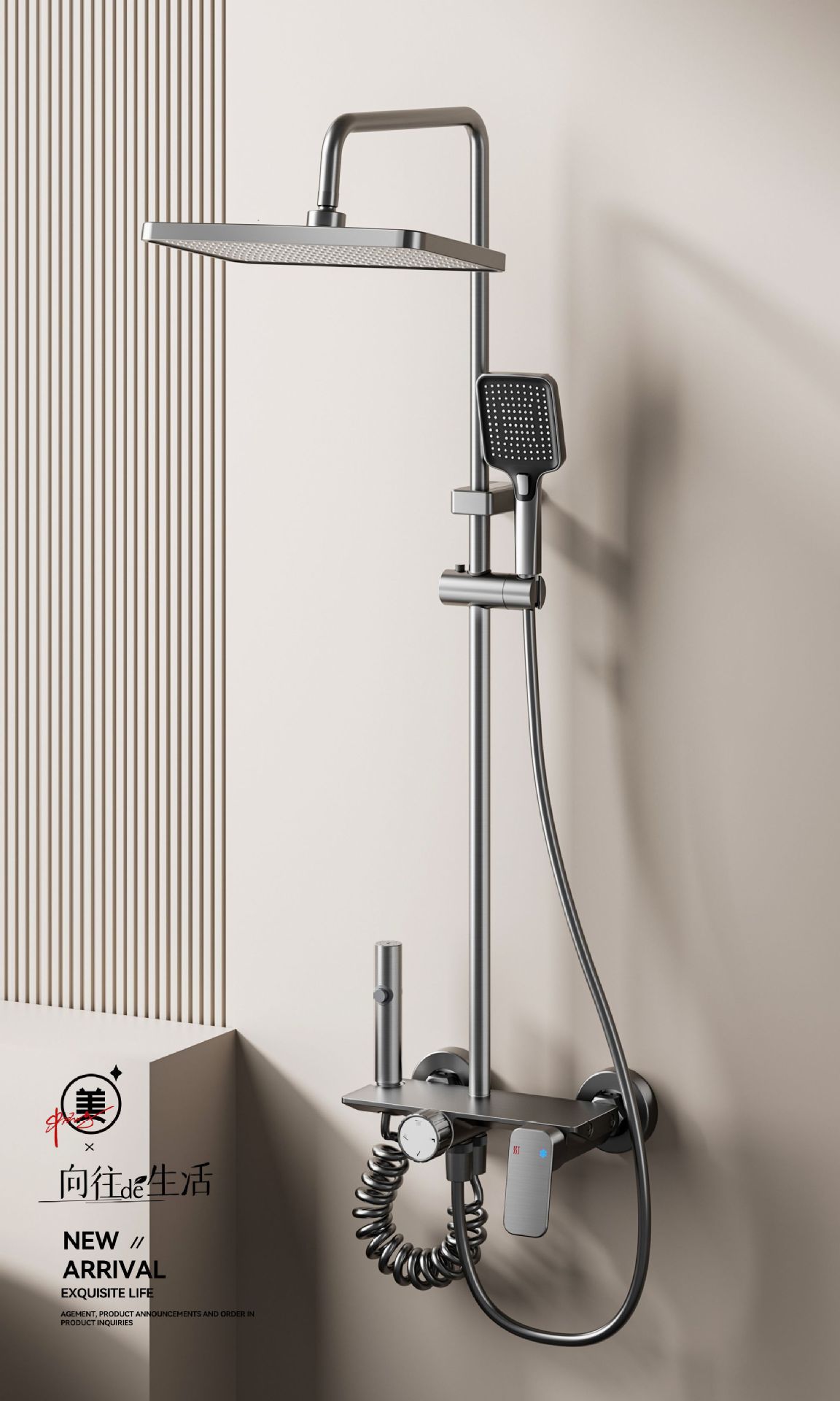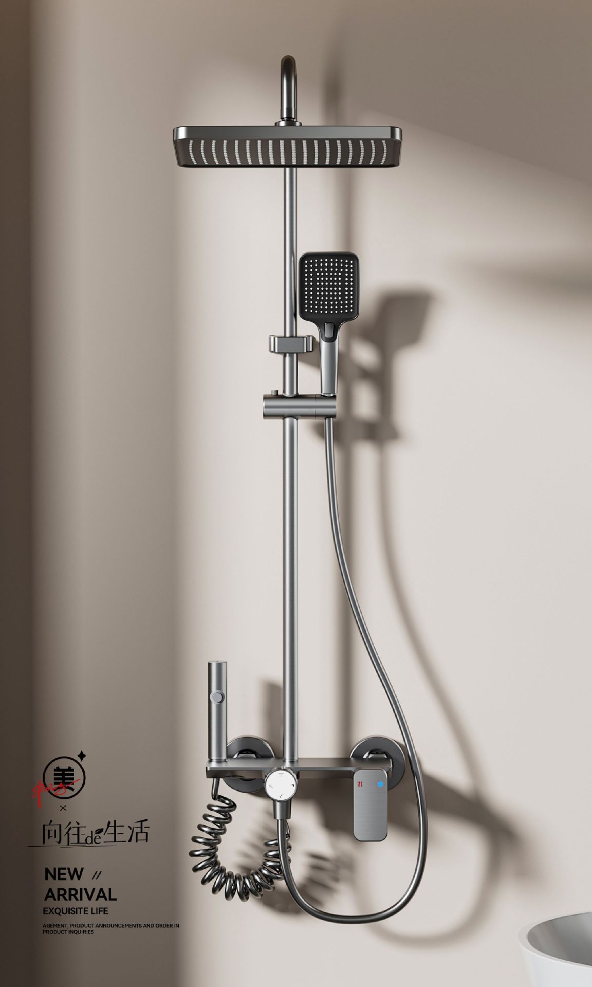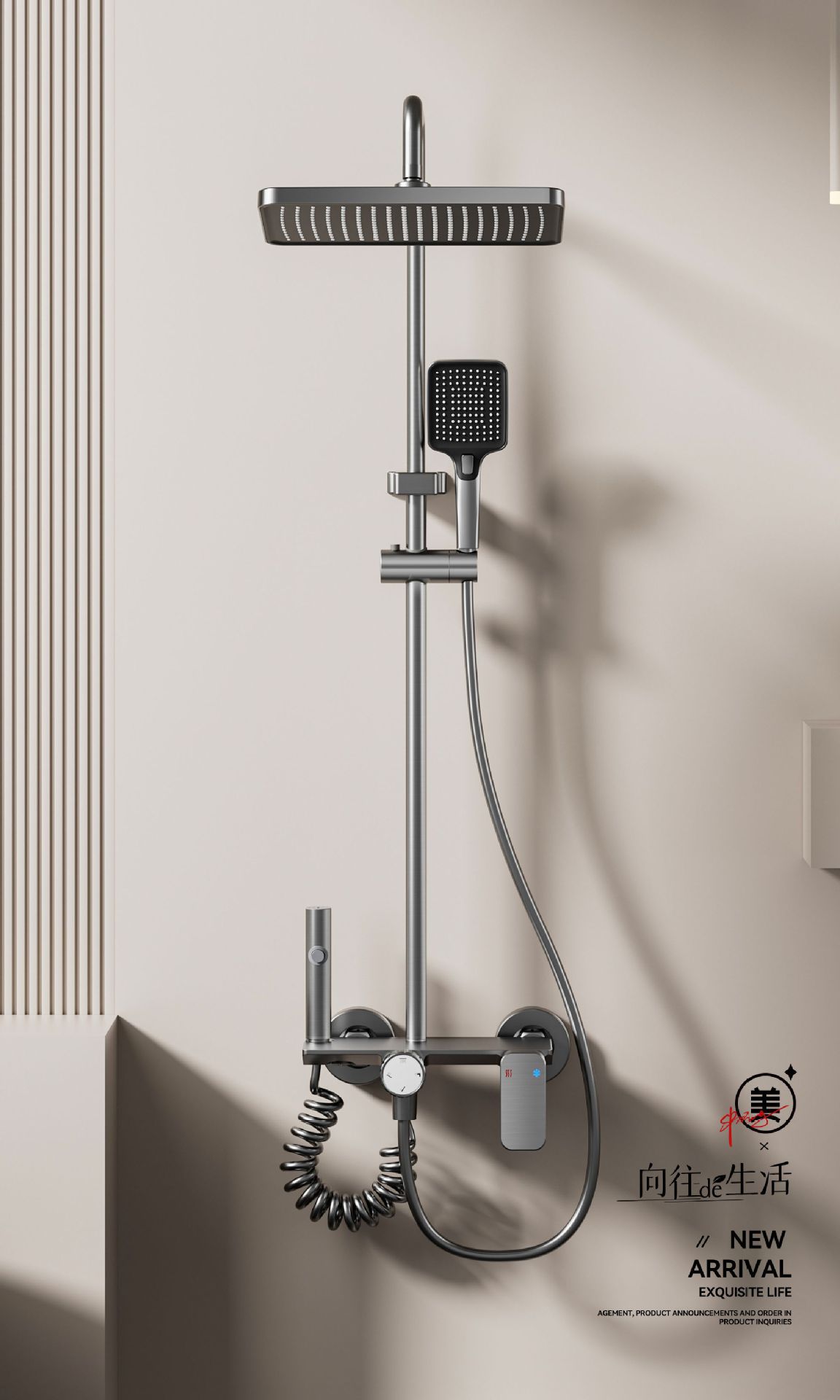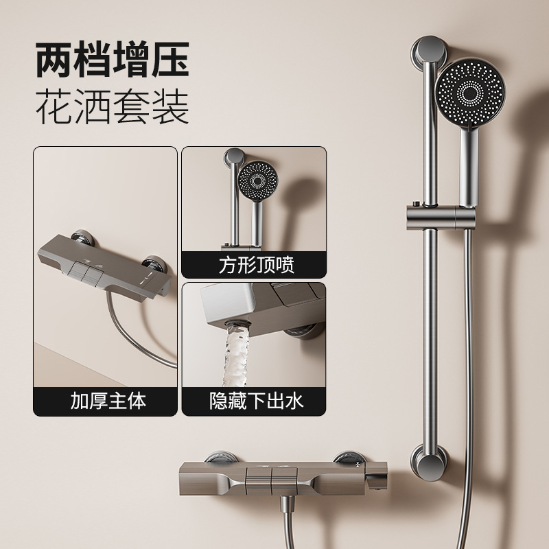 卫浴淋浴花洒 淋浴屏 挂壁 沐浴屏 卫浴花洒套装 淋浴花洒三件套 淋浴器 浴霸花洒全套 淋浴套装 水镀灰