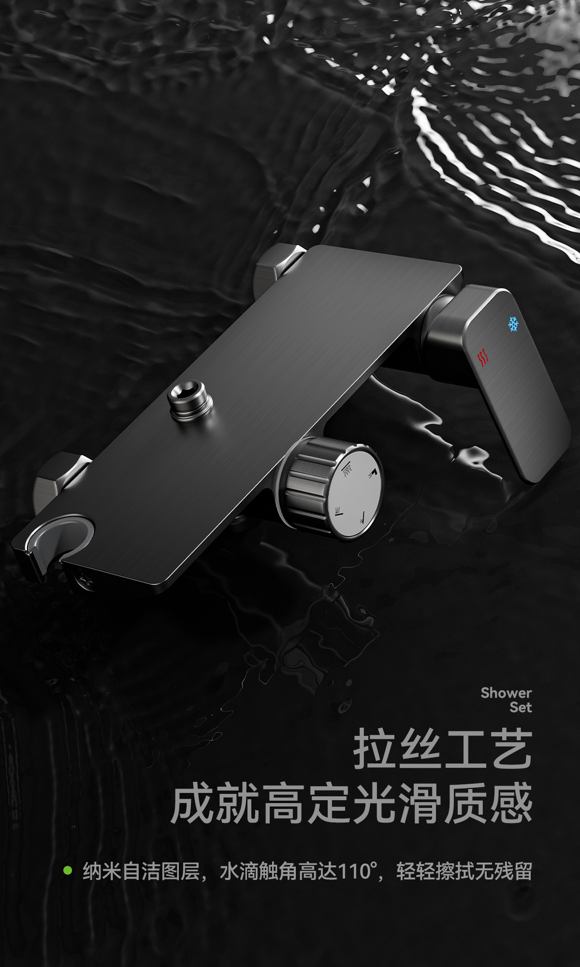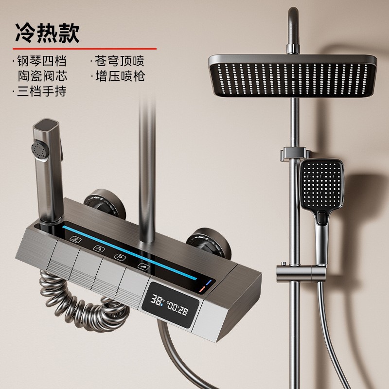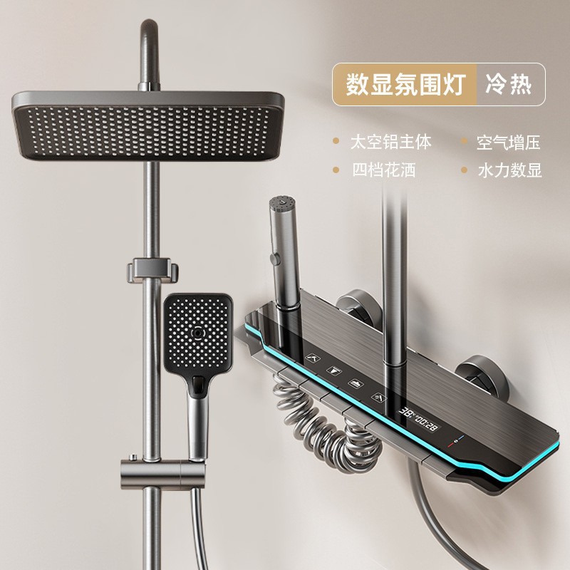 新款枪灰色水镀钢琴键淋浴花洒数显 氛围灯 暗装 全套氛围灯花洒淋浴套装浴室沐浴LED数显卫浴增压花洒一整套 花洒淋浴一整套 花洒套装 淋浴花洒