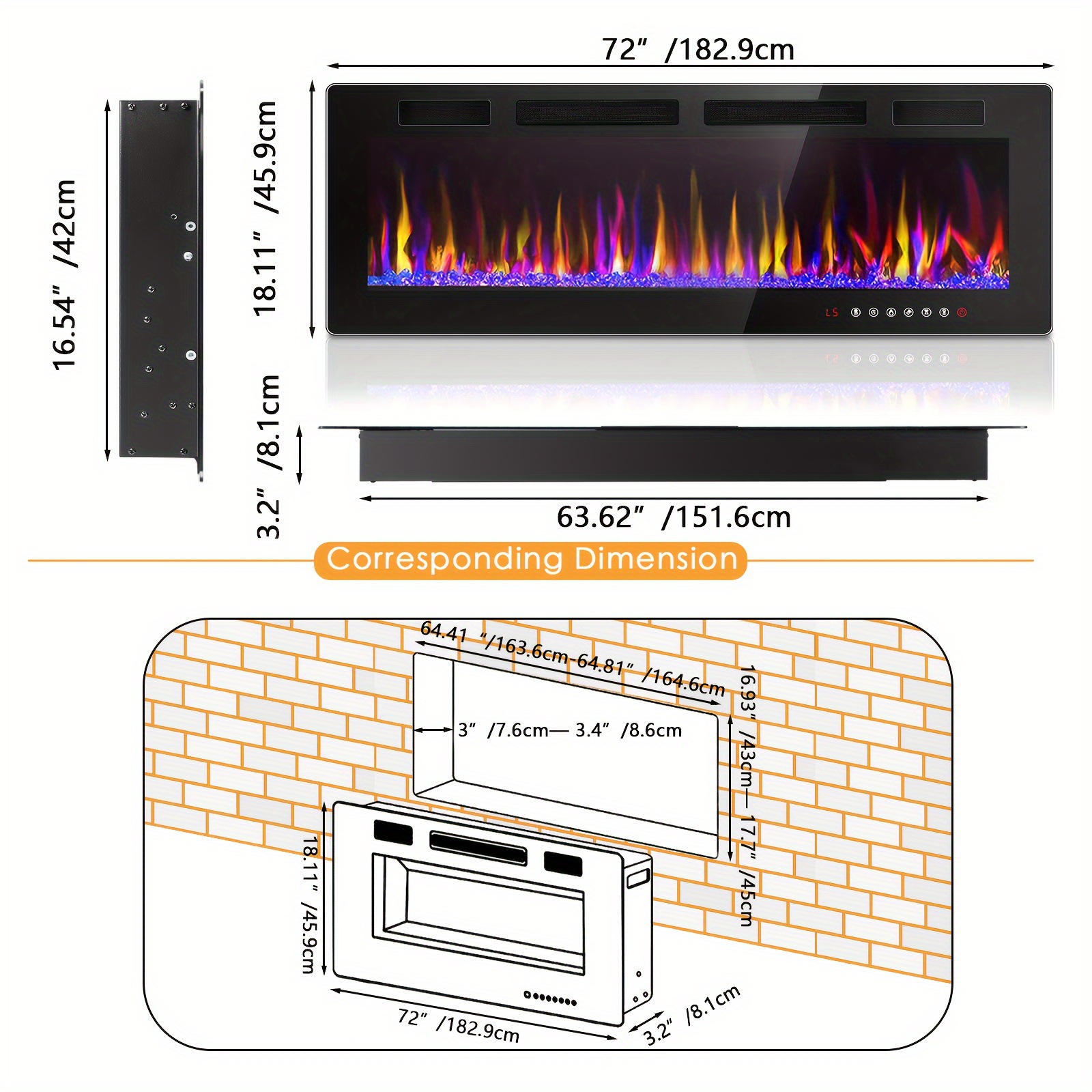 전기 벽난로 매립형 및 벽걸이형 750/1500W 국경 간스토어 가기