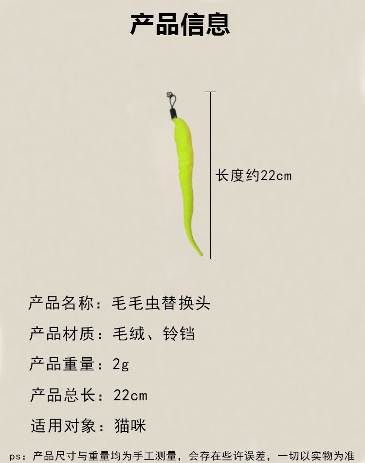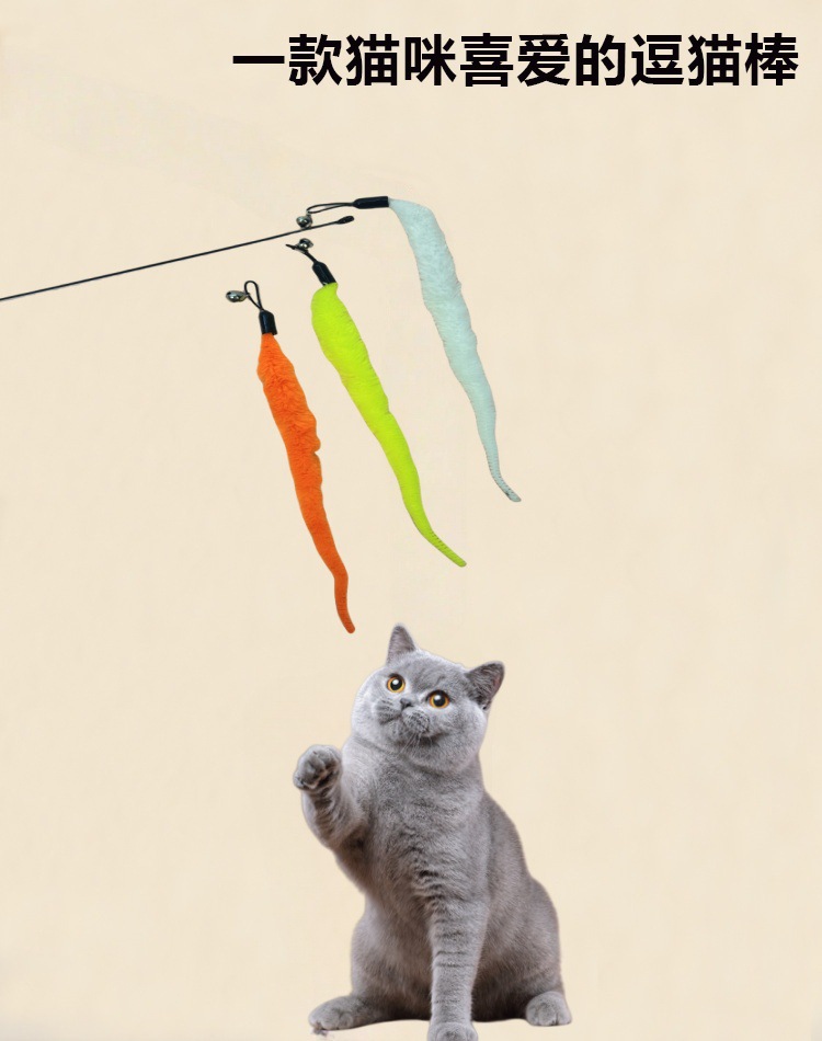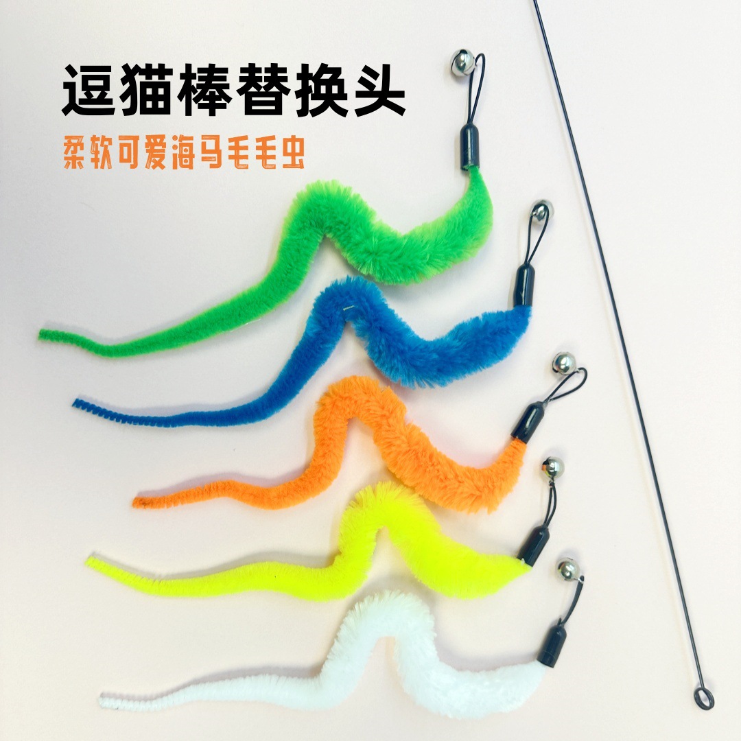 국경을 넘는 새로운 애완 동물 고양이 장난감 애벌레 교체 헤드 고양이 스틱 고양이 플러시 장난감 낚싯대 교체 헤드