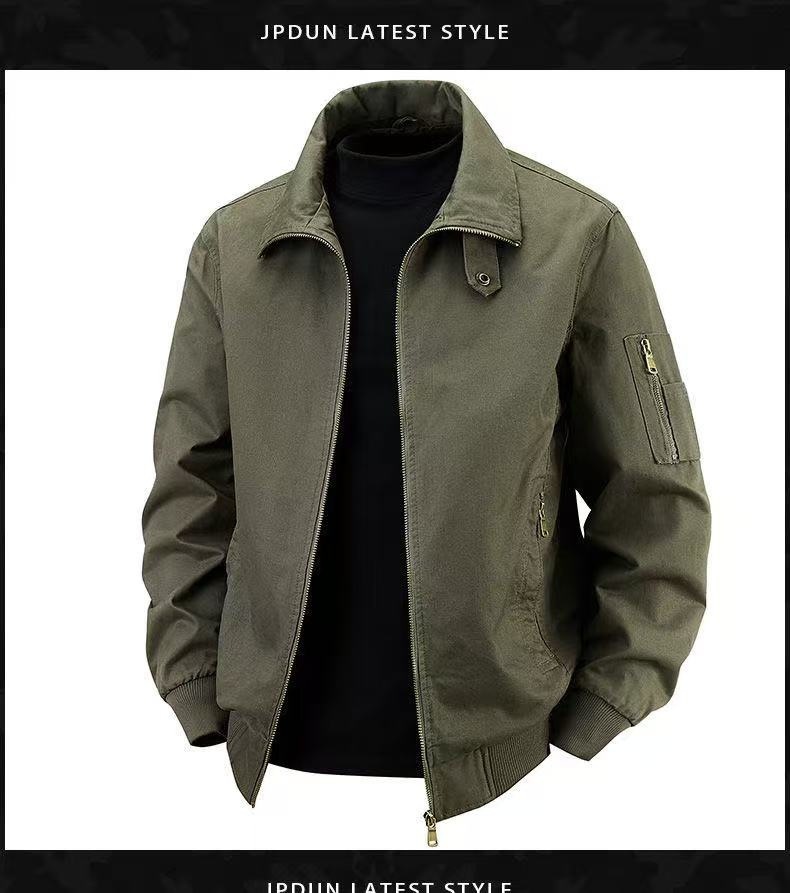 봄과 가을 새로운 카고 자켓 남성 코튼 자켓 솔리드 컬러 플러스 사이즈 아메리칸 파일럿 라펠 레트로 캐주얼 자켓스토어 가기