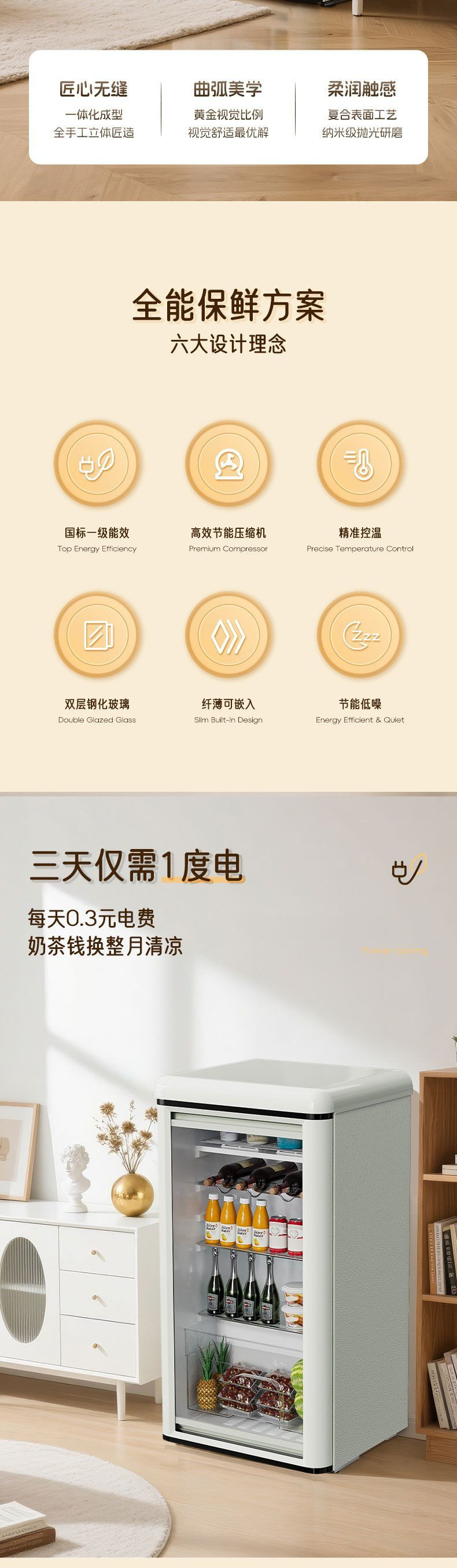 1급 에너지 효율 복고풍 아이스 바 가정용 소형 냉장 보존 캐비닛 사무실 대용량 레드 와인 음료 냉장고 YO스토어 가기