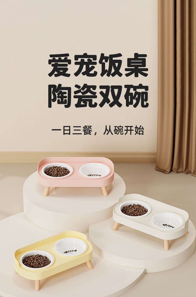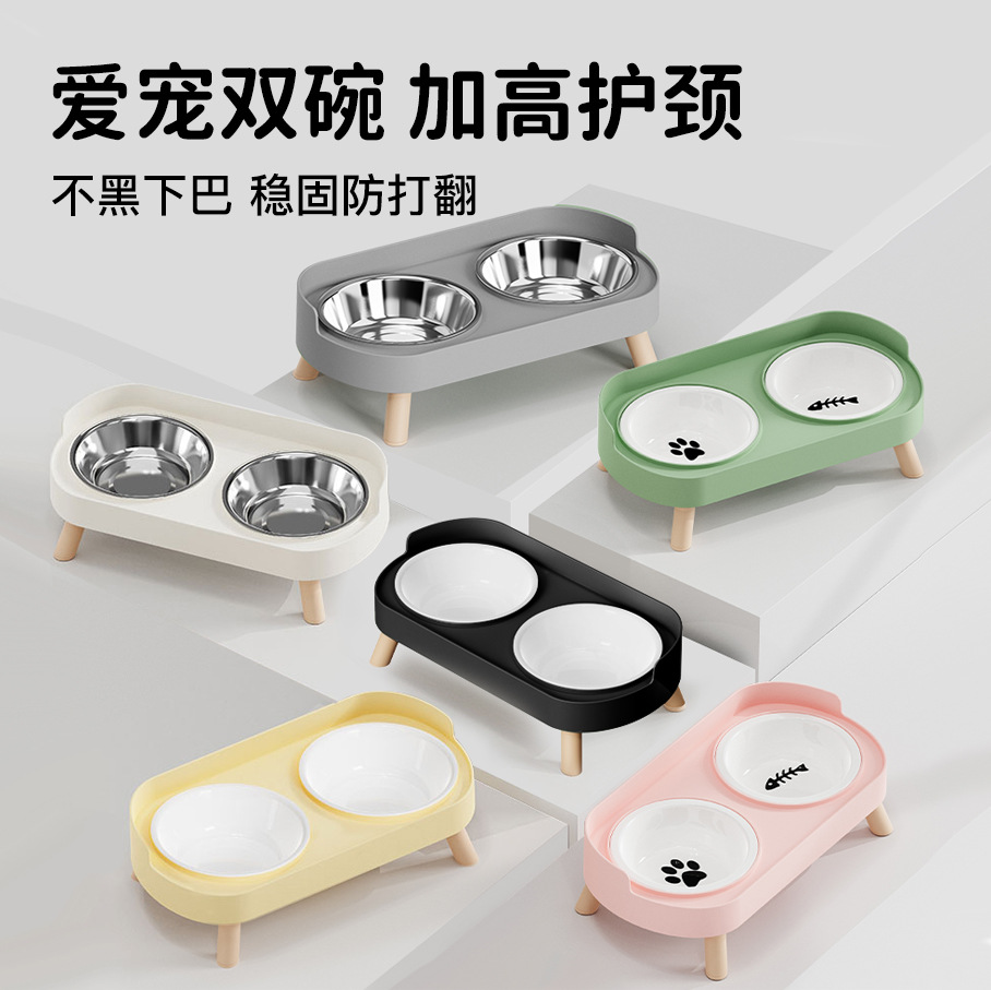세라믹 고양이 밥그릇, 이중 그릇, 강아지 밥그릇, 물그릇, 급식 그릇, 강아지 식기, 넘어짐 방지 애완용품, 고양이 식기, 고양이 사료 그릇