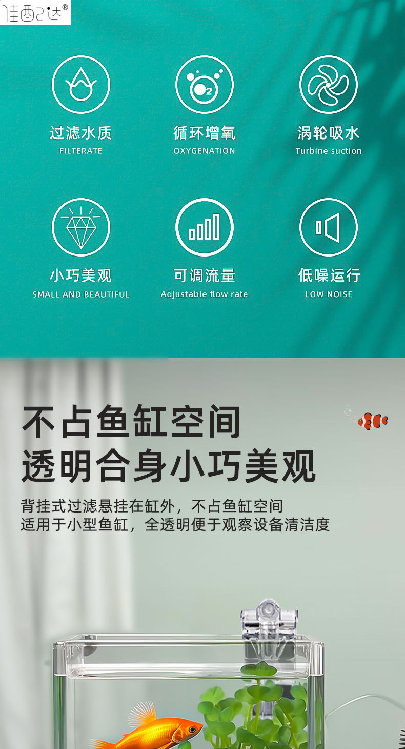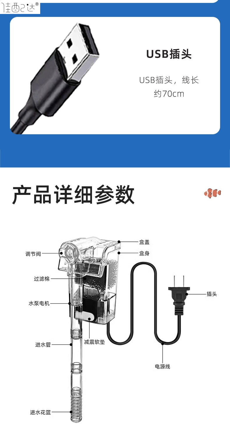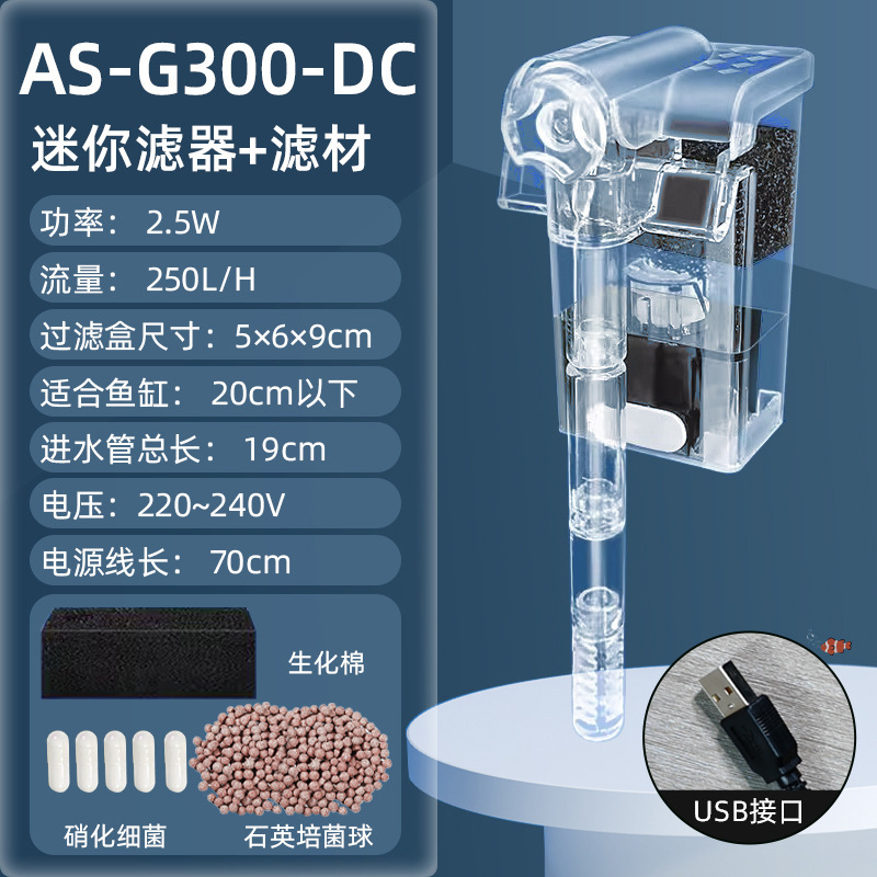 미니 수조 필터 물 순환 3-in-1 산소 공급 및 물고기 흡입 방지 소형 벽걸이형 폭포형 소형 워터 펌프스토어 가기