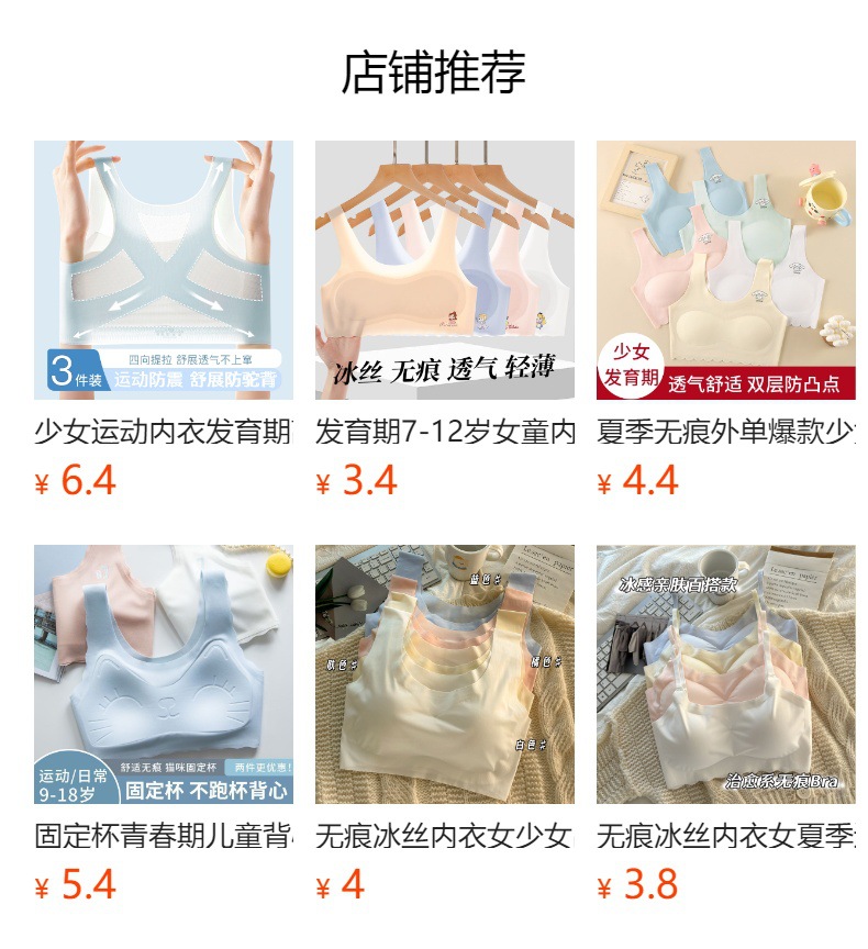 고정 컵 얼음 실크 조끼 소녀 발달 기간 소녀 브래지어 초등학생 10-12 세 소녀 얇은 스타일스토어 가기