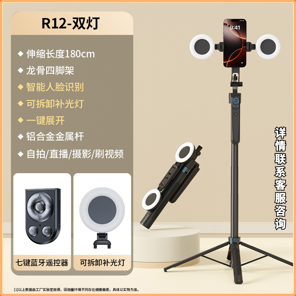• R12D-7 [더블 8cm 조명 + 1.8m + 오버헤드 샷 클립 + 알루미늄 합금 두꺼운 막대 + 테트라포드 + Douyin 리모콘 + 휴대용 가방]