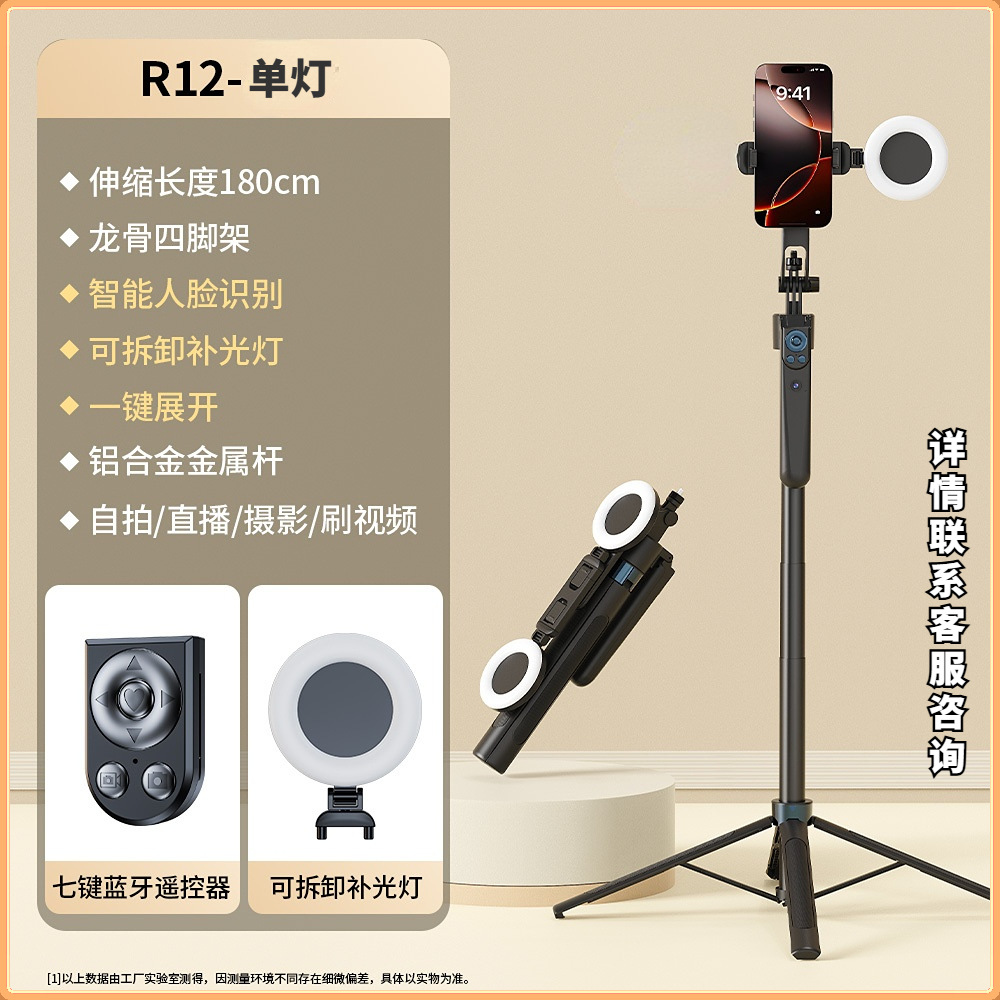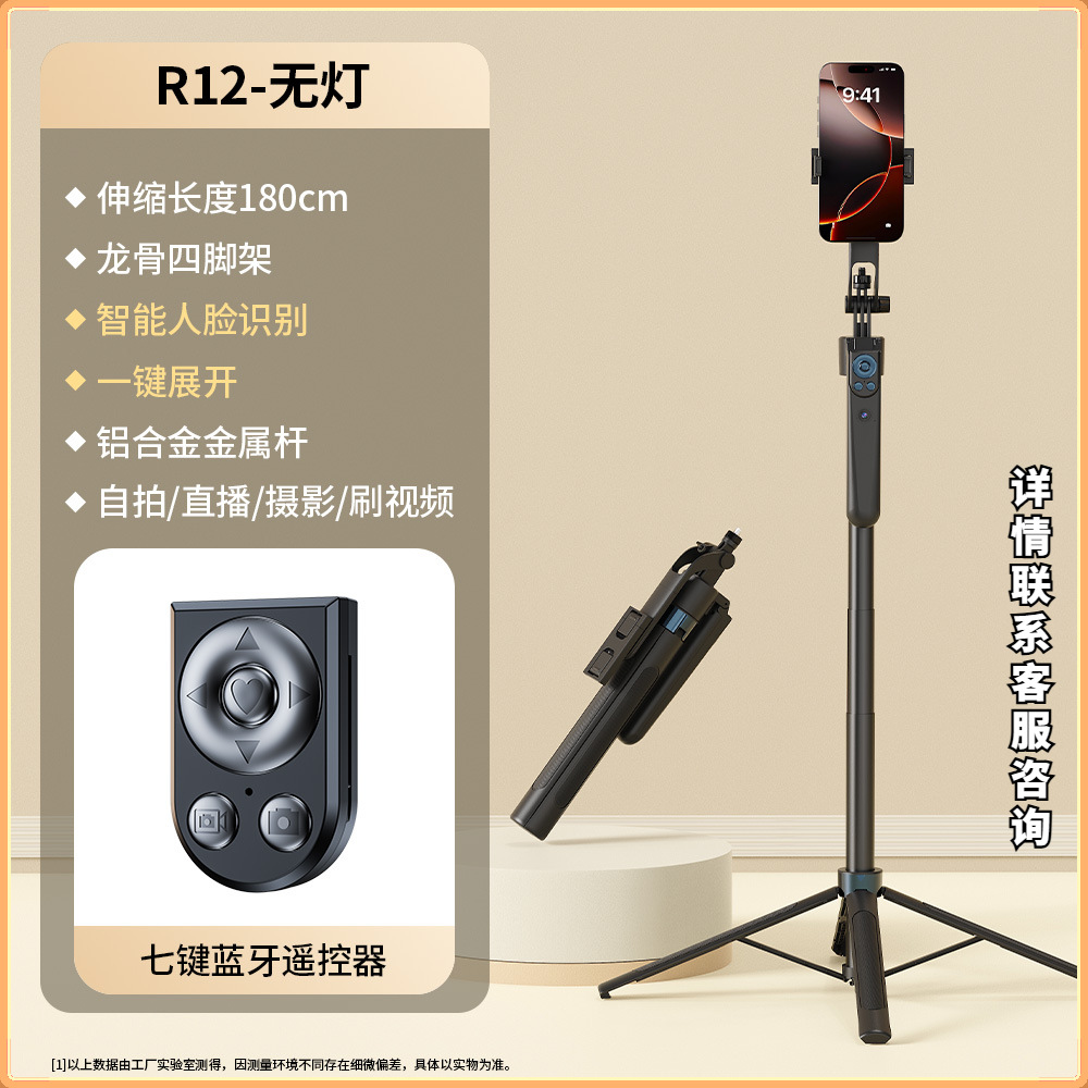• R12-7 [조명 없음 + 1.8m + 오버헤드 클립 + 알루미늄 합금 두꺼운 막대 + 쿼드포드 + Douyin 리모콘 + 휴대용 가방]