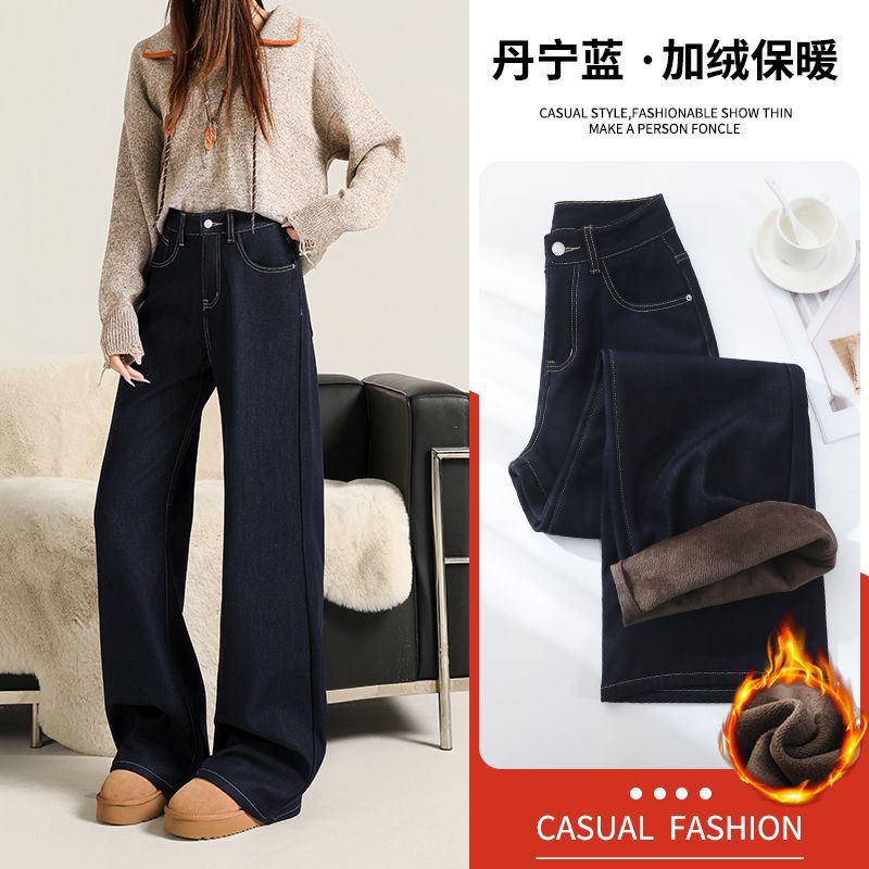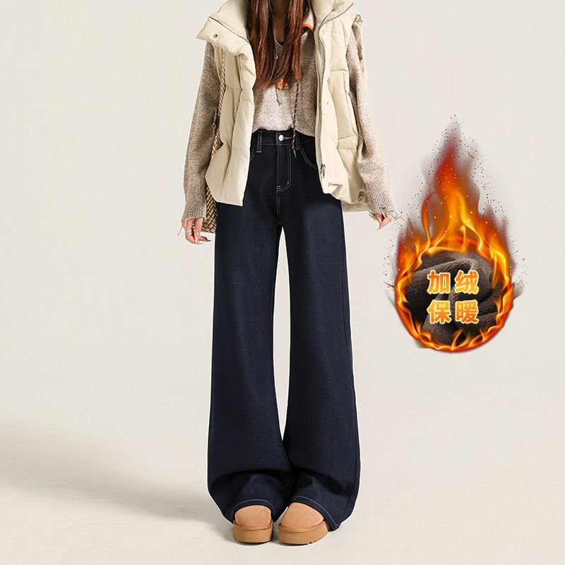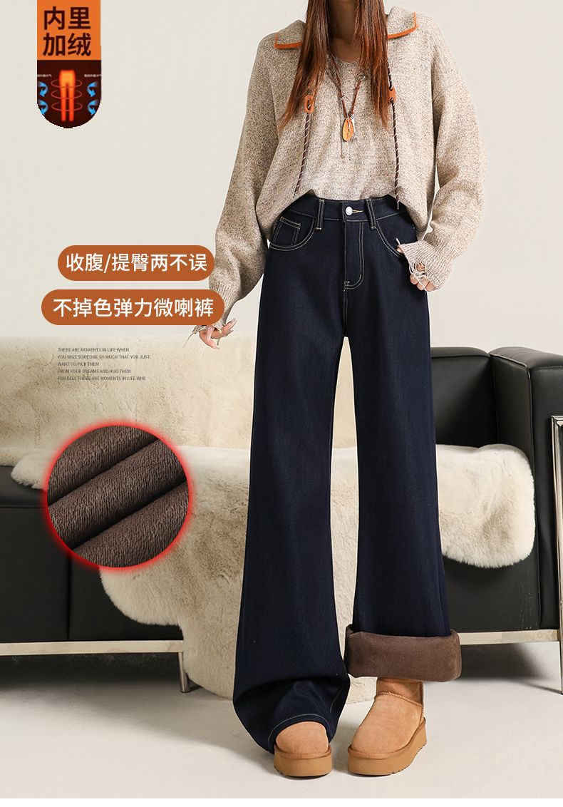 미국식 하이 스트리트 주름 방지 레깅스 없는 부츠컷 청바지 여성용 가을 겨울 플러스 사이즈 2025 드레이프 와이드 레그 플레어 팬츠스토어 가기