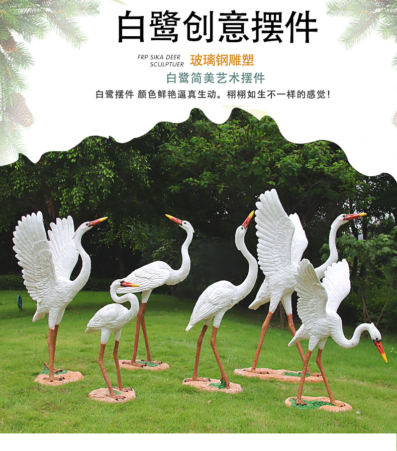 야외 시뮬레이션 조류 백로 유리 섬유 강화 플라스틱 조각 정원 안뜰 바위 수영장 조경 정원 조경 장식 장식품스토어 가기