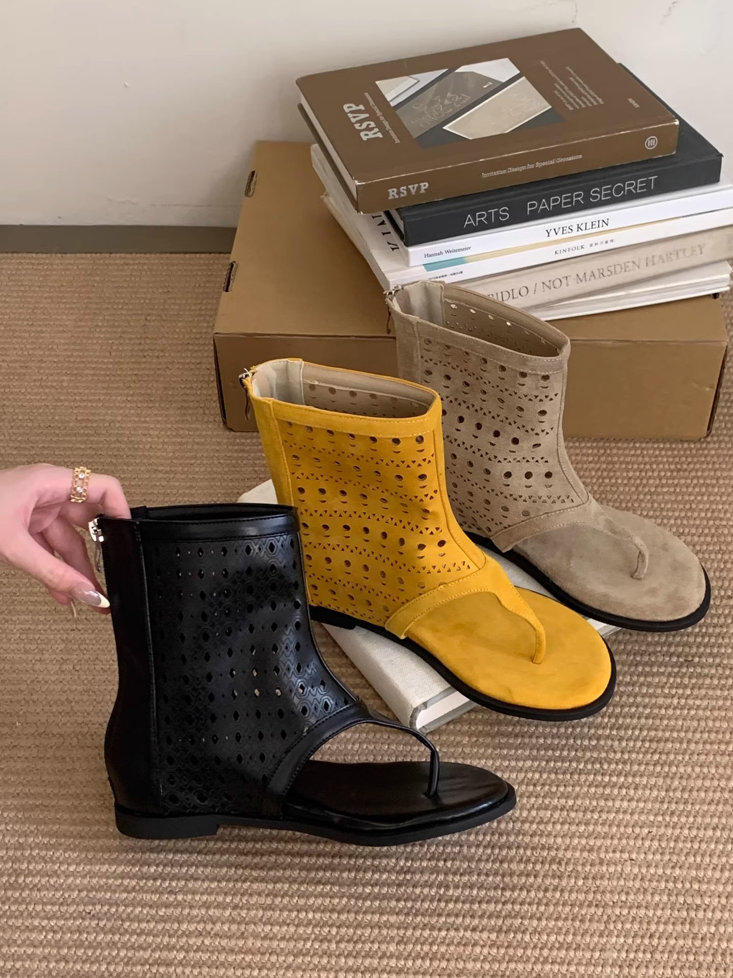 재고 있음 새로운 복고풍 영국 스타일 다용도 메일라드 부츠 중공 내부 강화 플랫 바닥 홀 샌들 짧은 부츠