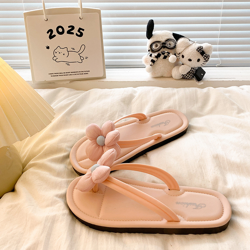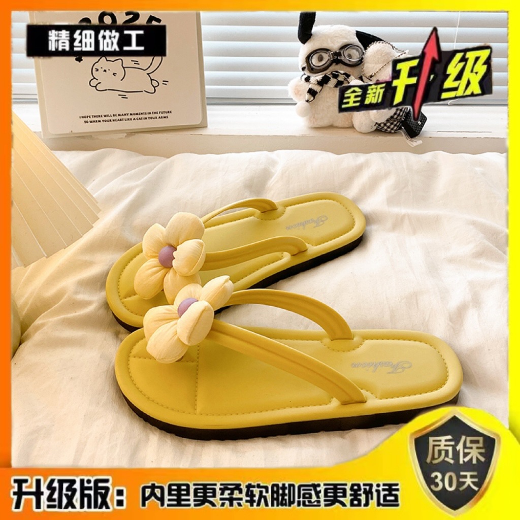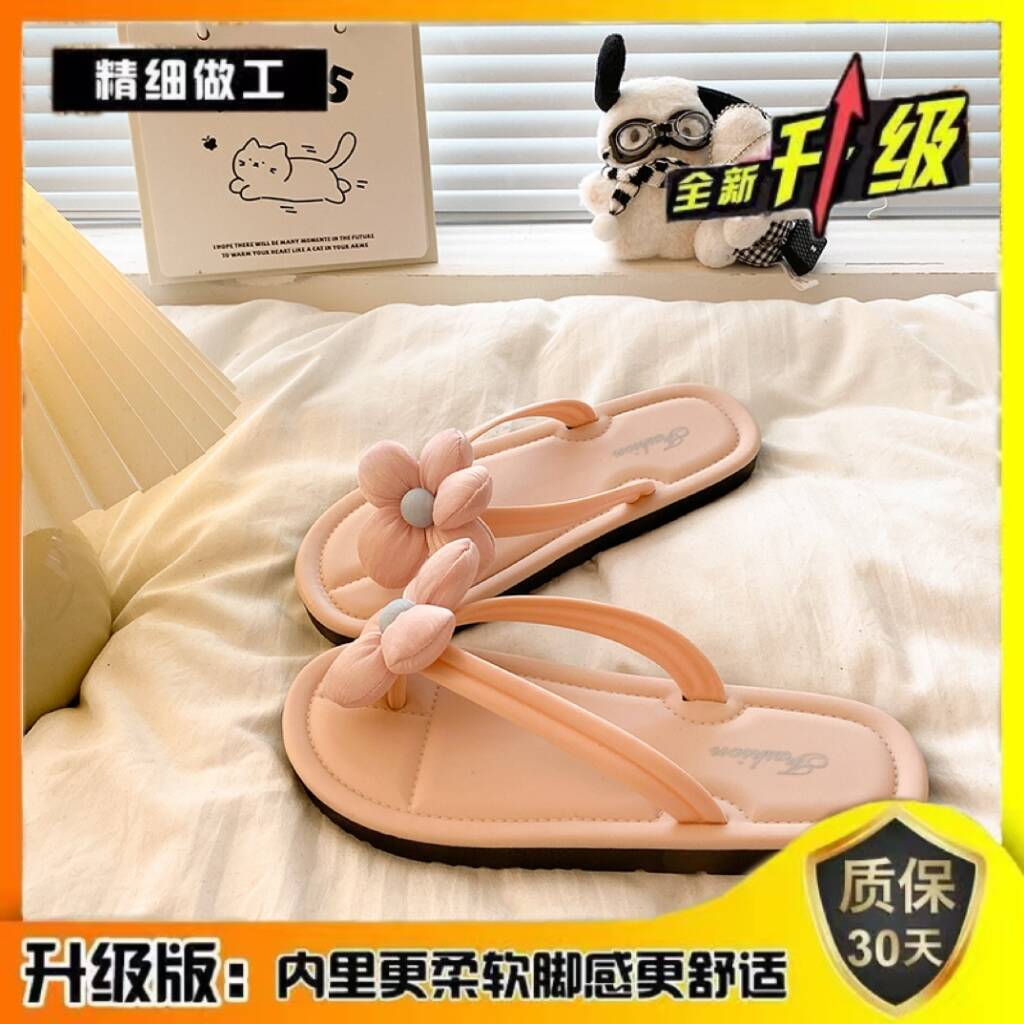 인터넷 연예인 소녀 스타일 여름 슈퍼 소프트 플립 플롭 여름 거리 인기 플랫 편안한 캐주얼 도파민 꽃