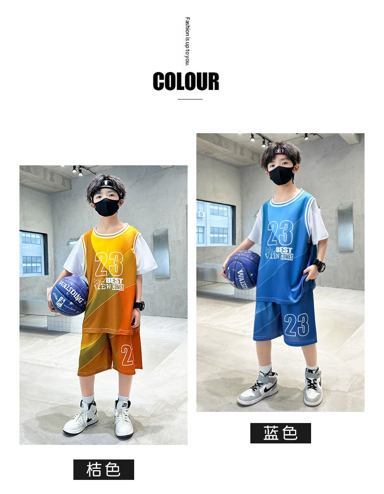 아동복 투피스 여름 의류 아동복 소년 소녀 중대형 아동 스포츠 슈트 소년 속건성 농구 유니폼