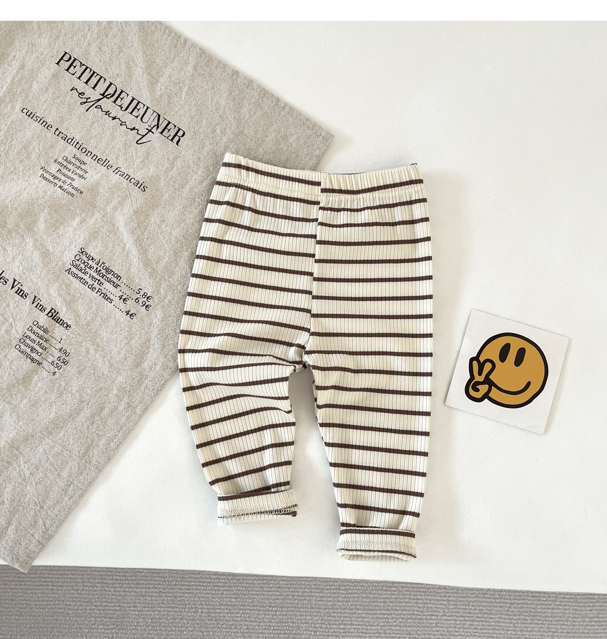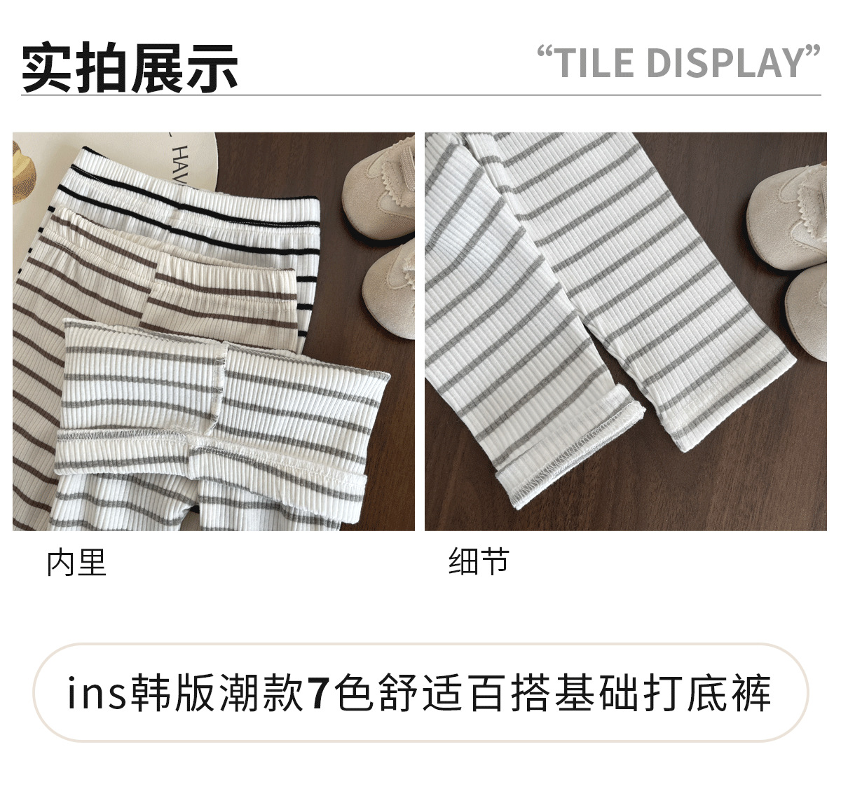 유아 및 어린이를 위한 한국판 인기 레깅스, 봄 여름 다용도 캐주얼 스트라이프 솔리드 컬러 팬츠, 트렌디한 외출 팬츠스토어 가기