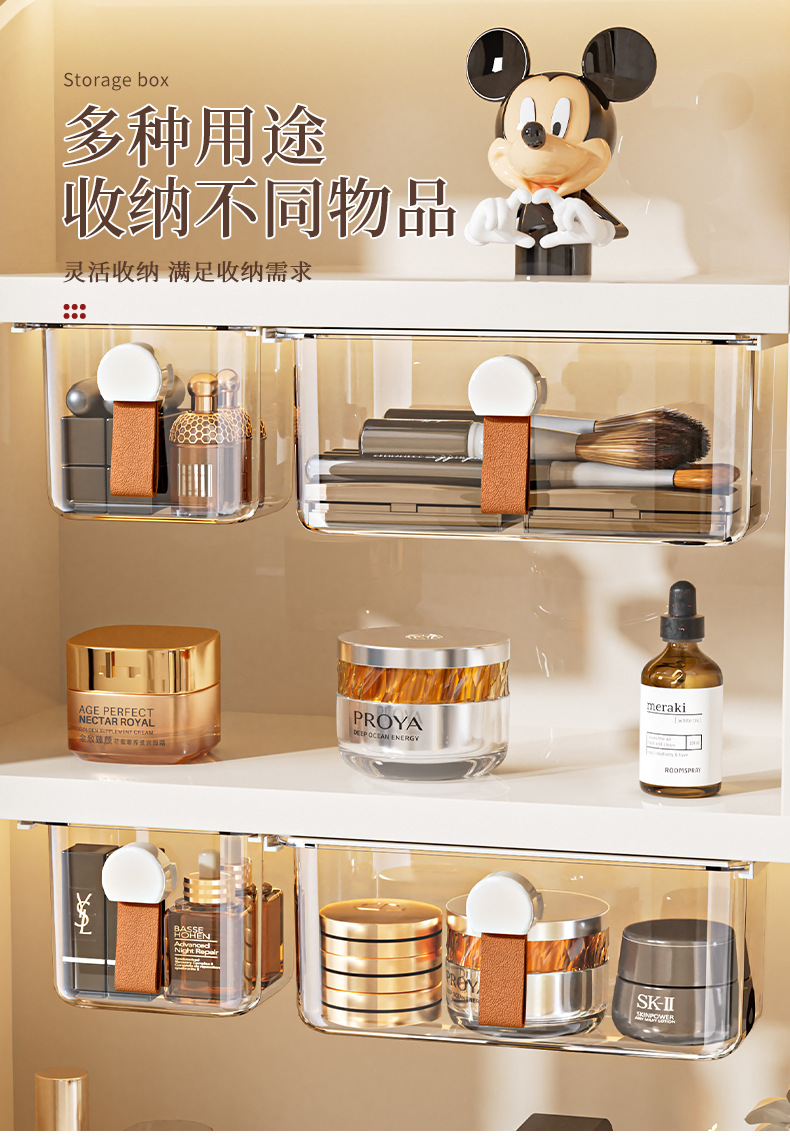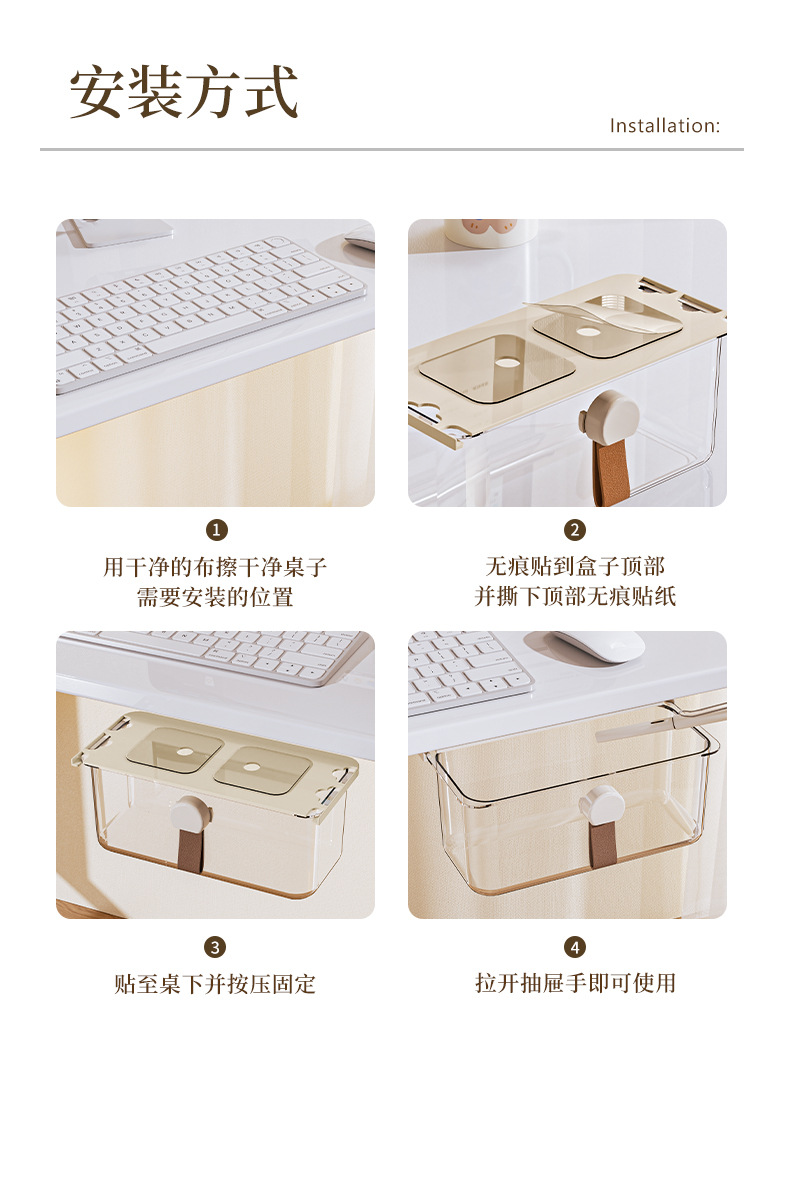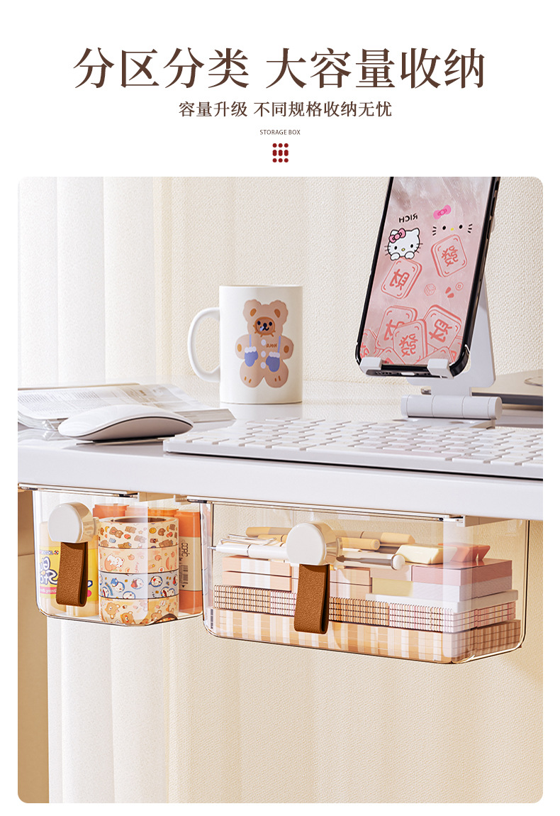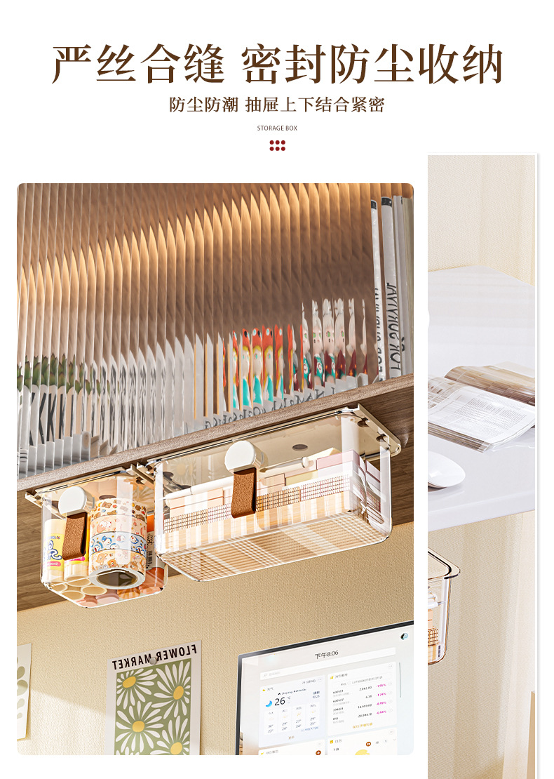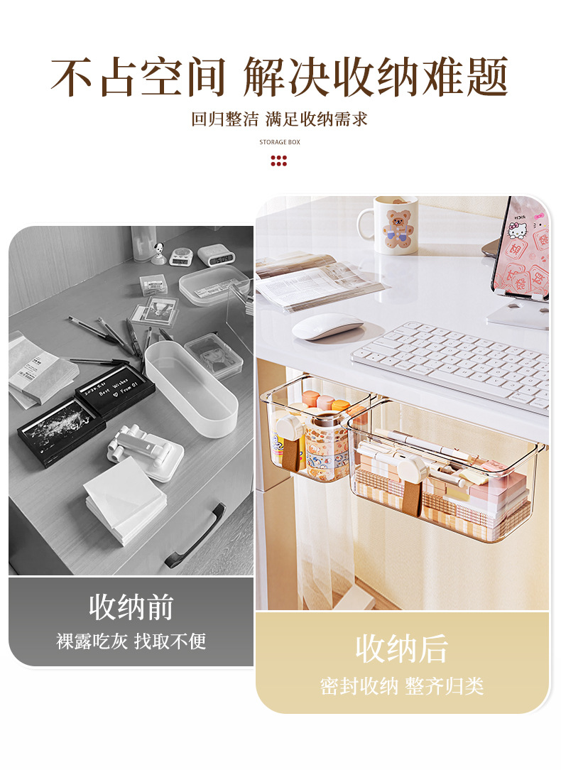 테이블 아래 보관 상자 대용량 투명 서랍 유형 조합 접착제 유형 주방 잡화 문구 화장품 마감 상자