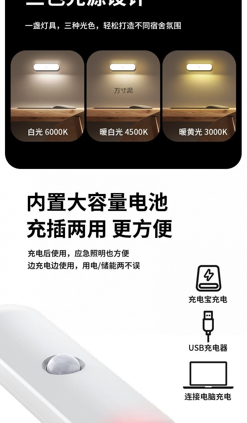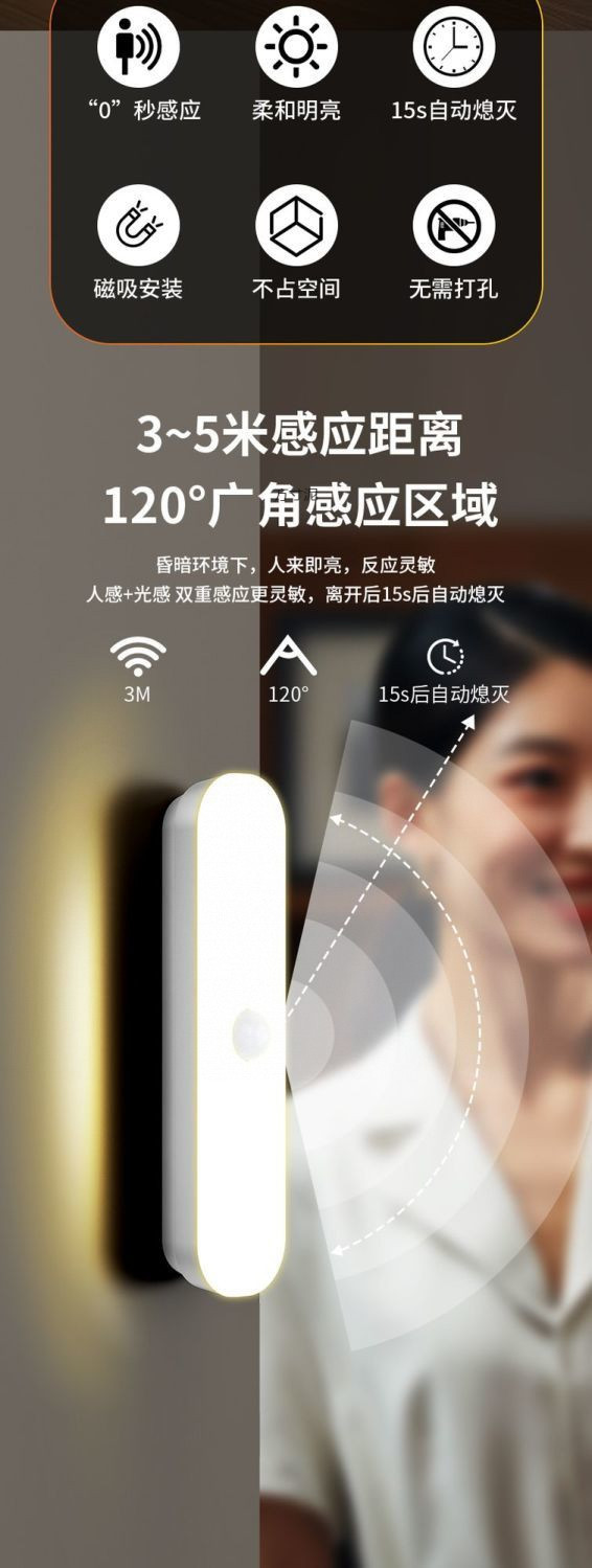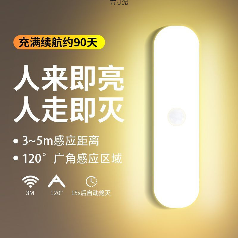 LED 인체 센서 램프 자동 홈 슈퍼 밝은 야간 조명 머리맡 램프 자동 플러그인 없음 램프 꺼짐 도매스토어 가기