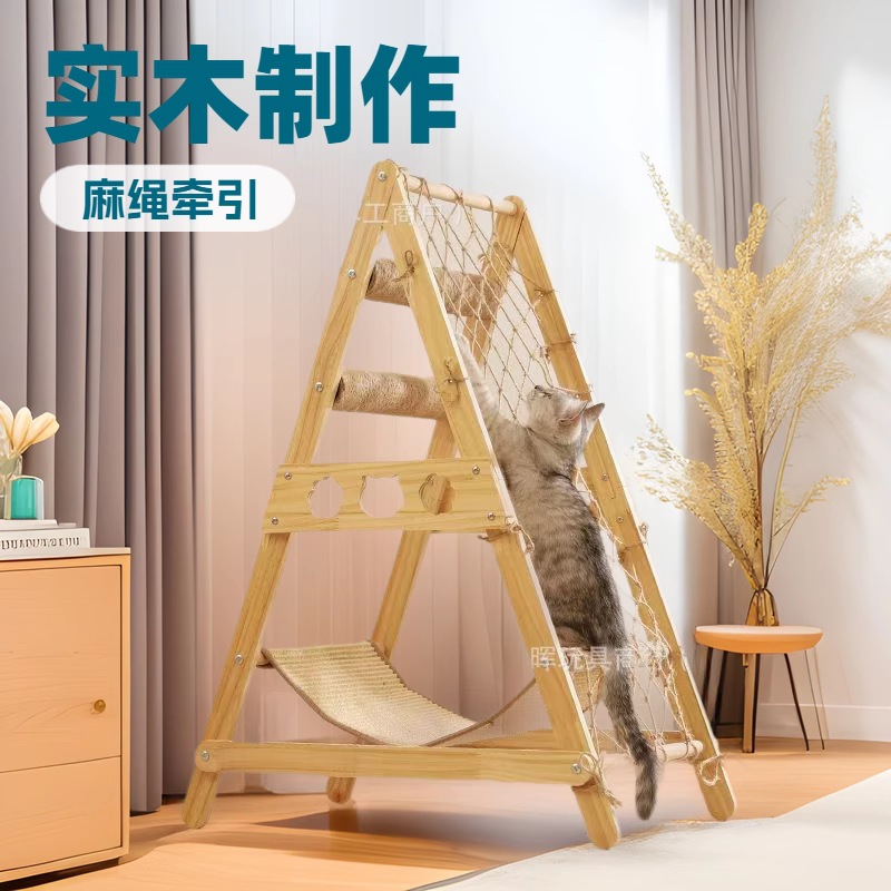 고양이 해먹, 고양이 클라이밍 프레임, 클라이밍 네트, 고양이 스크래치 컬럼, 삼나무 고양이 트리, 삼각형 고양이 클라이밍 프레임 세트, 목재스토어 가기