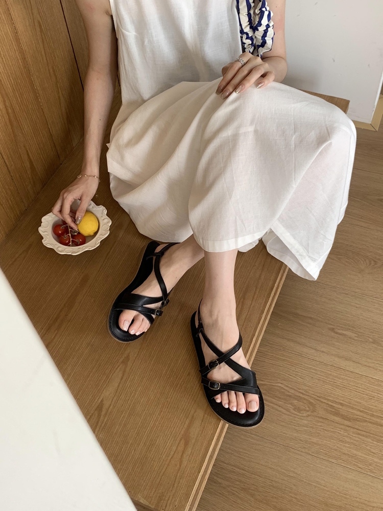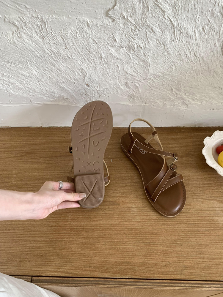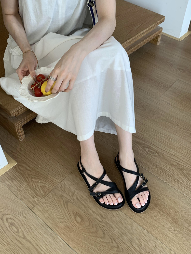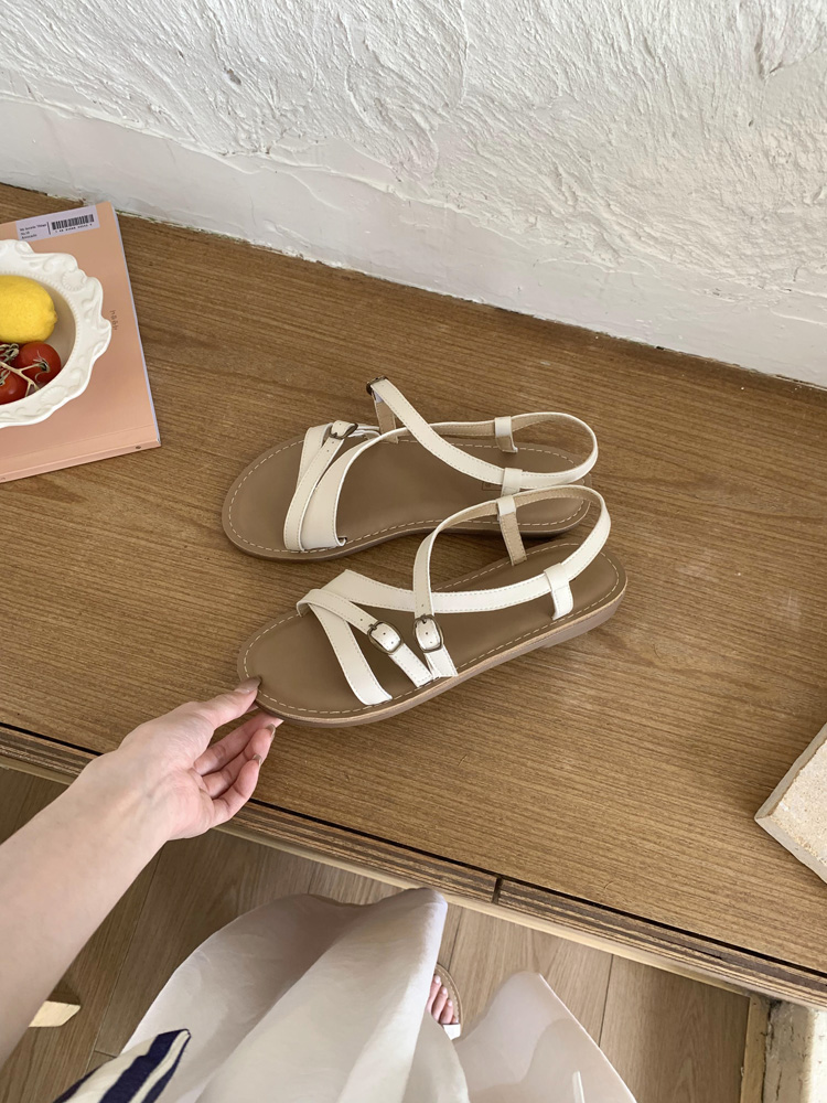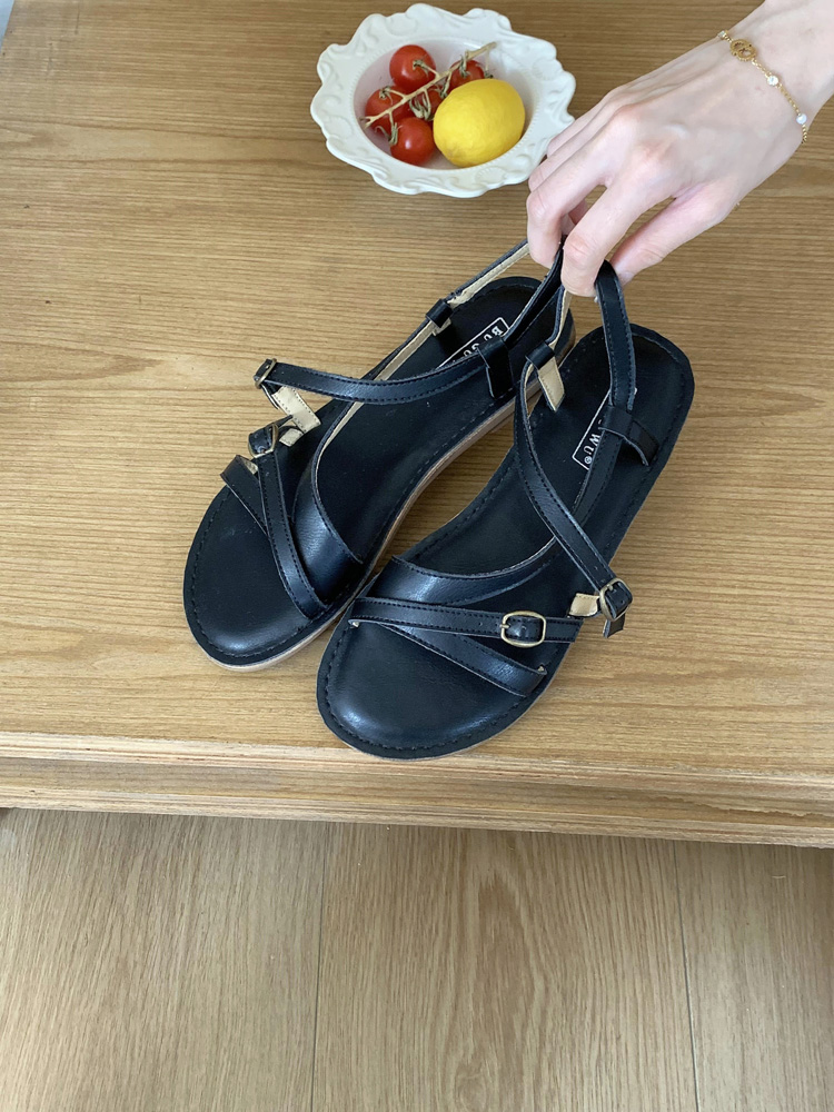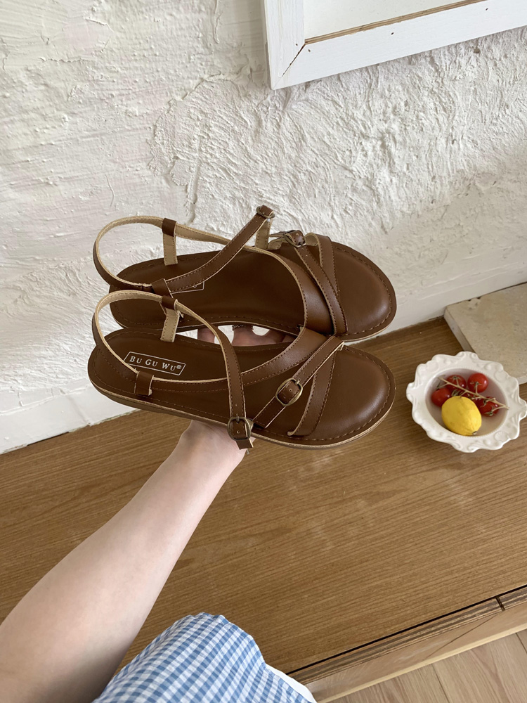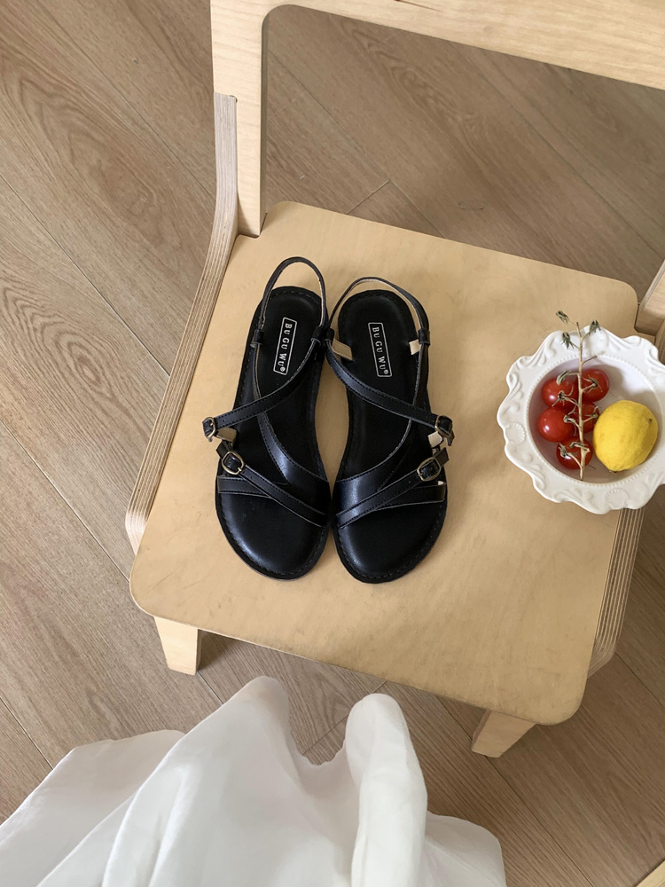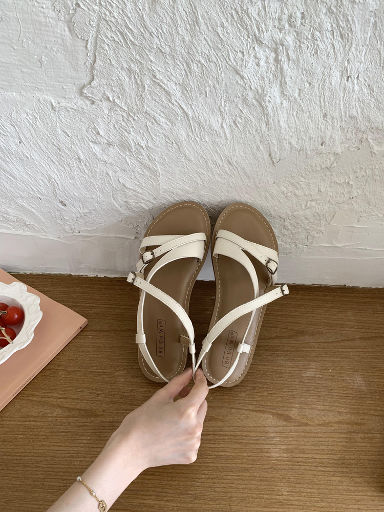 둥근 발가락 샌들 여성 여름 2025 새로운 레트로 크로스 버클 스트랩 틈새 디자인 로마 신발 플랫스토어 가기