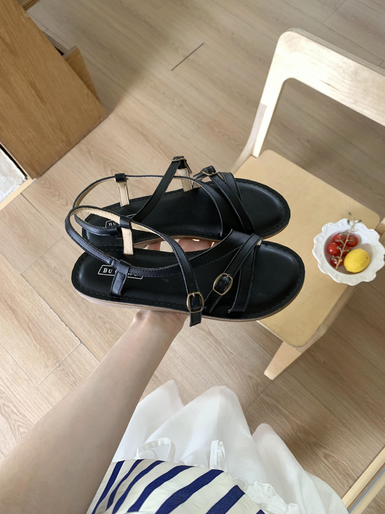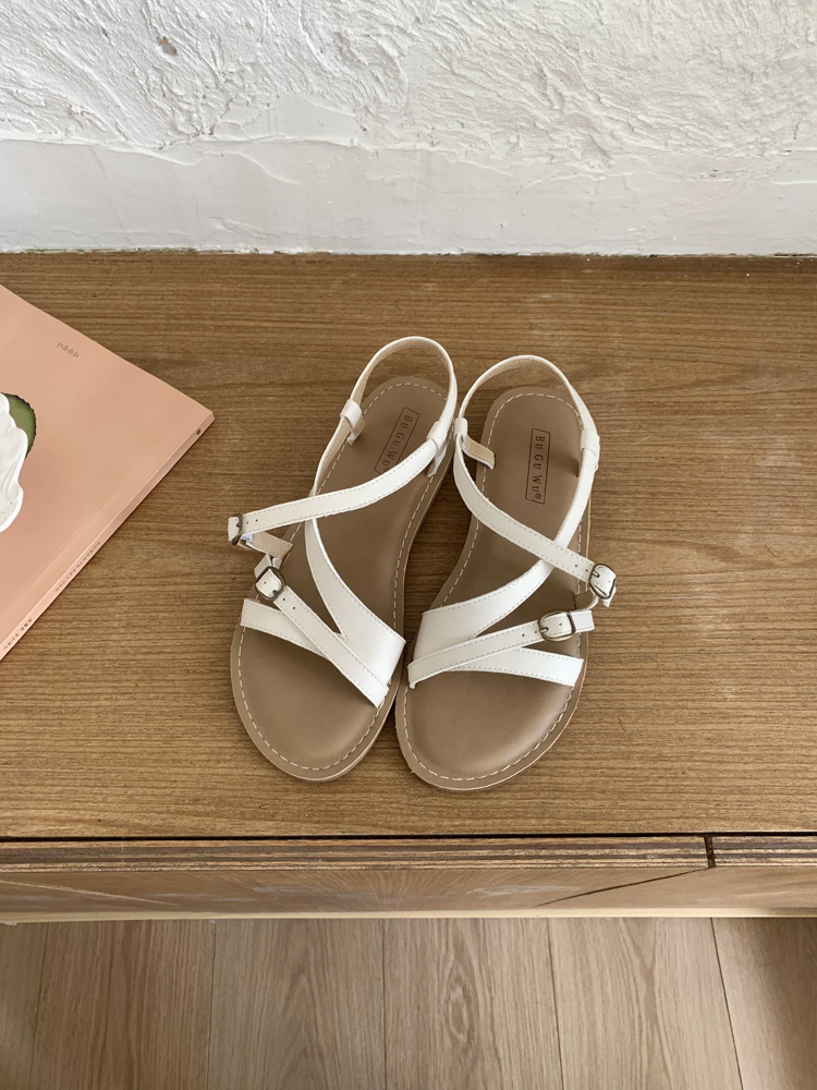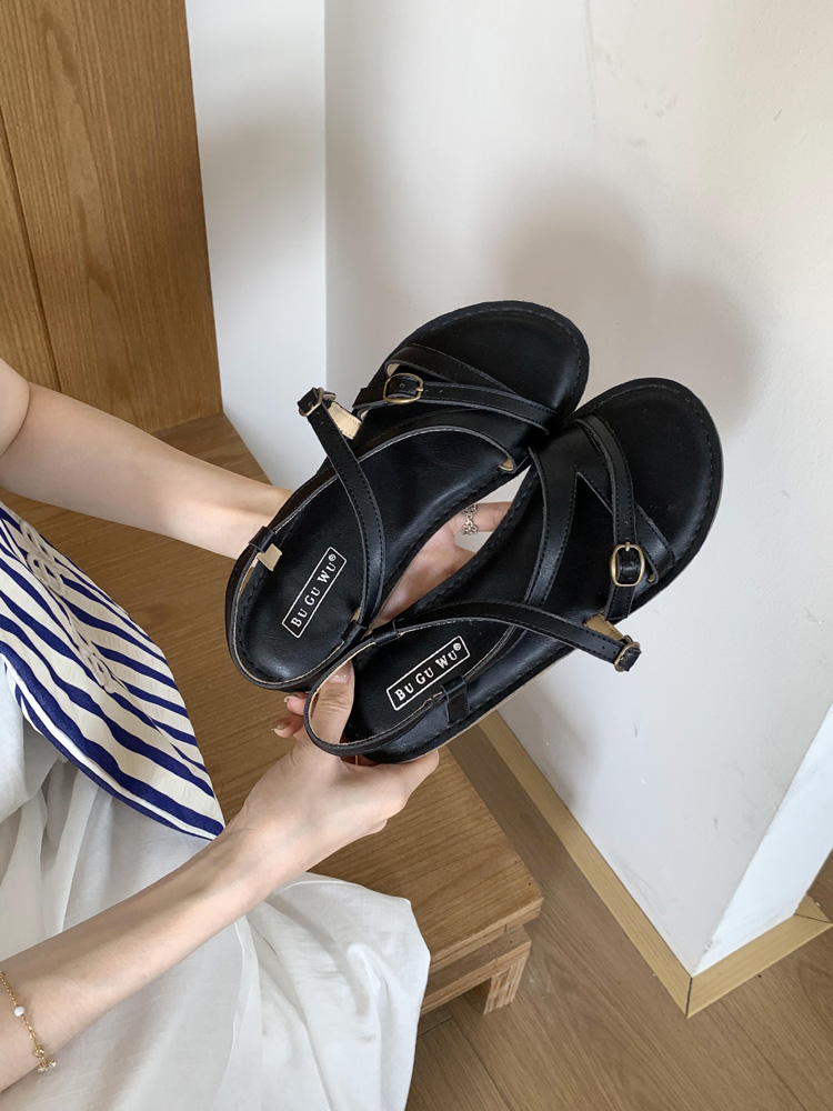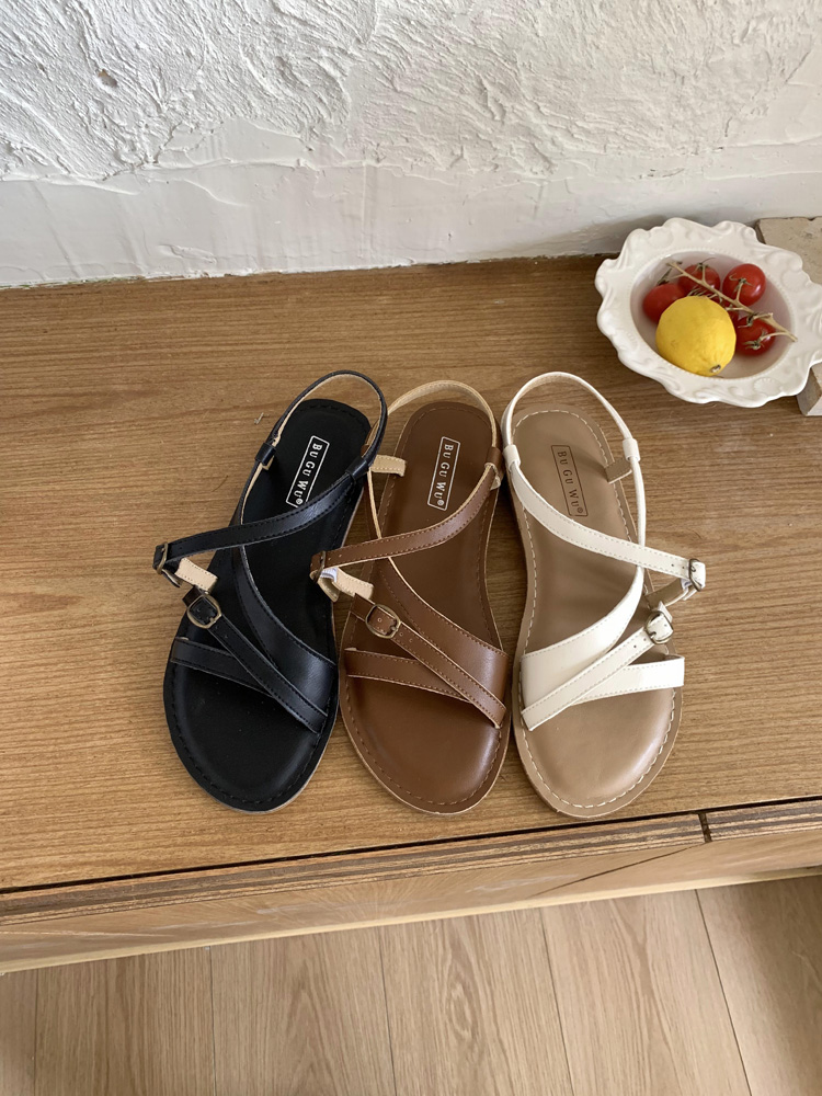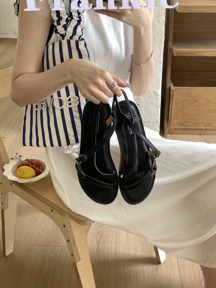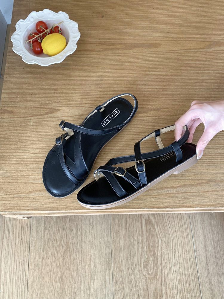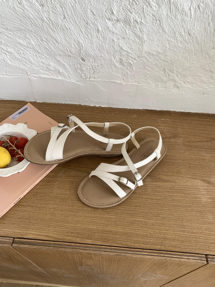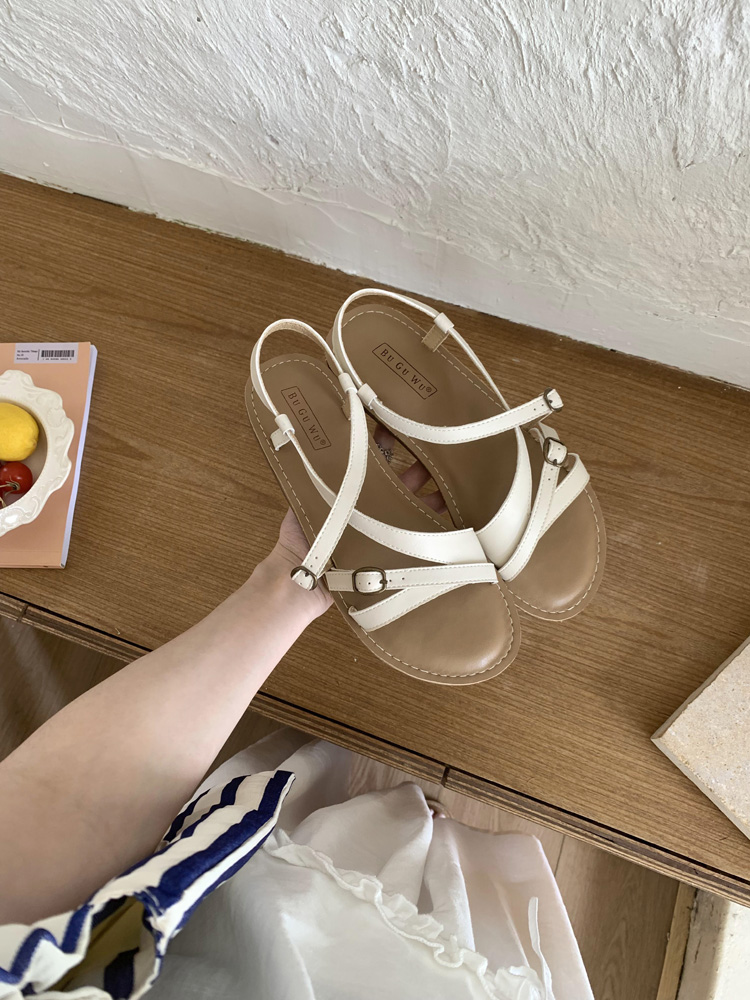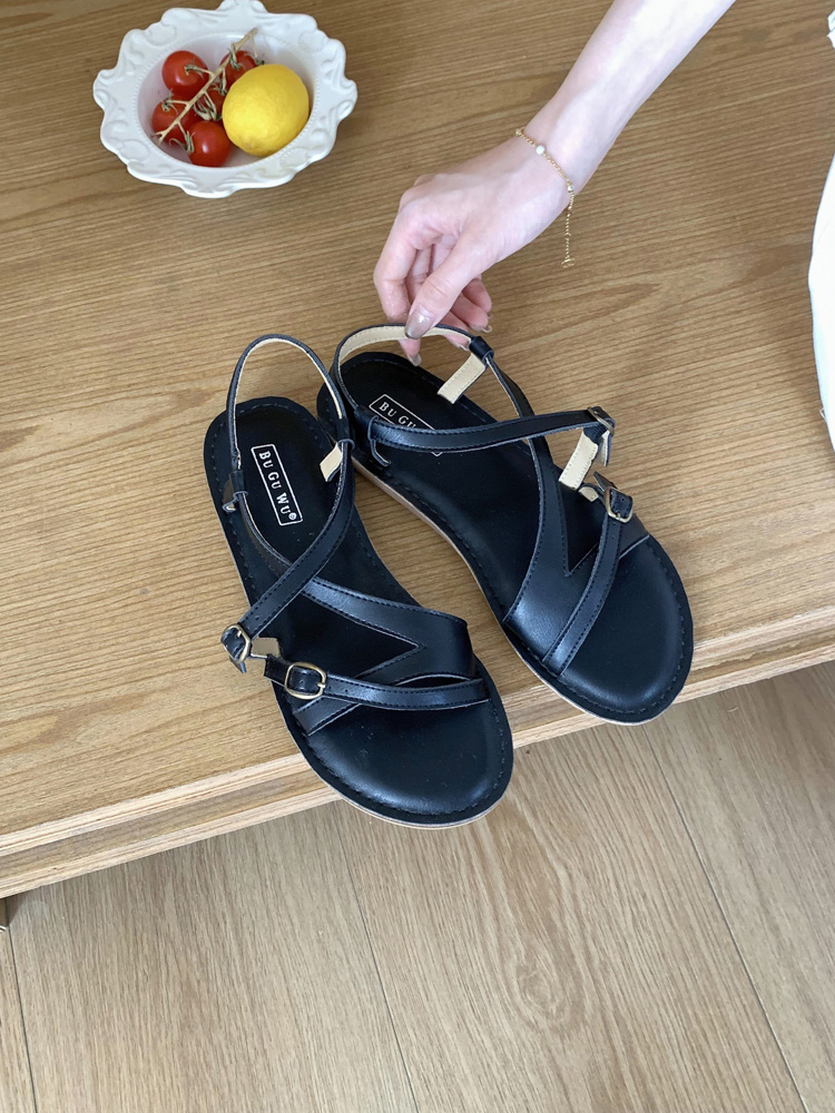 둥근 발가락 샌들 여성 여름 2025 새로운 레트로 크로스 버클 스트랩 틈새 디자인 로마 신발 플랫스토어 가기