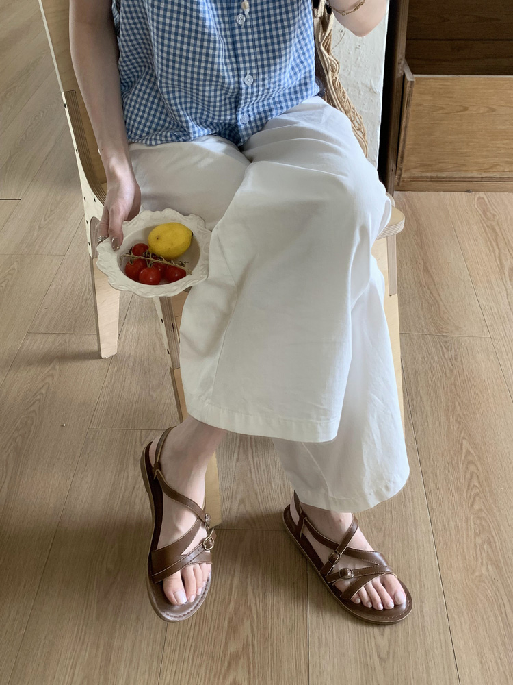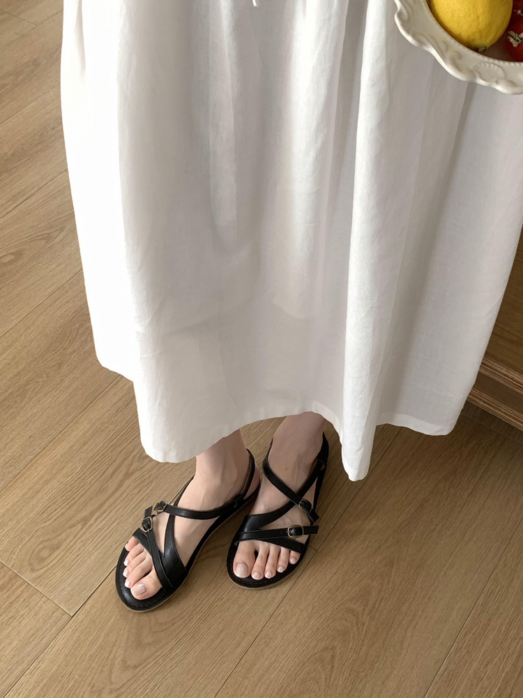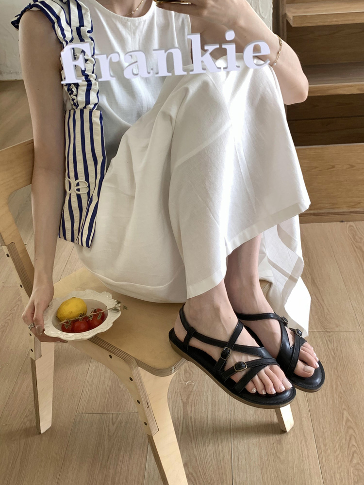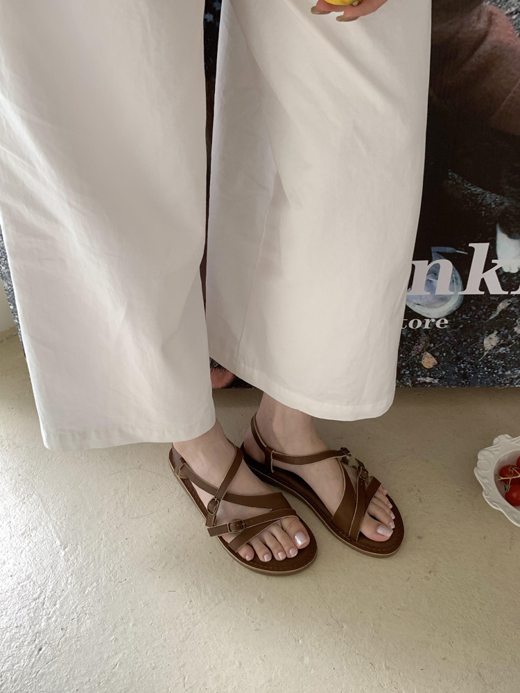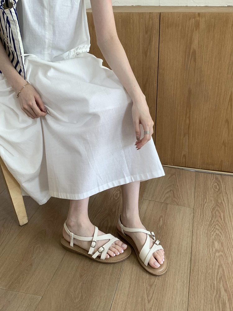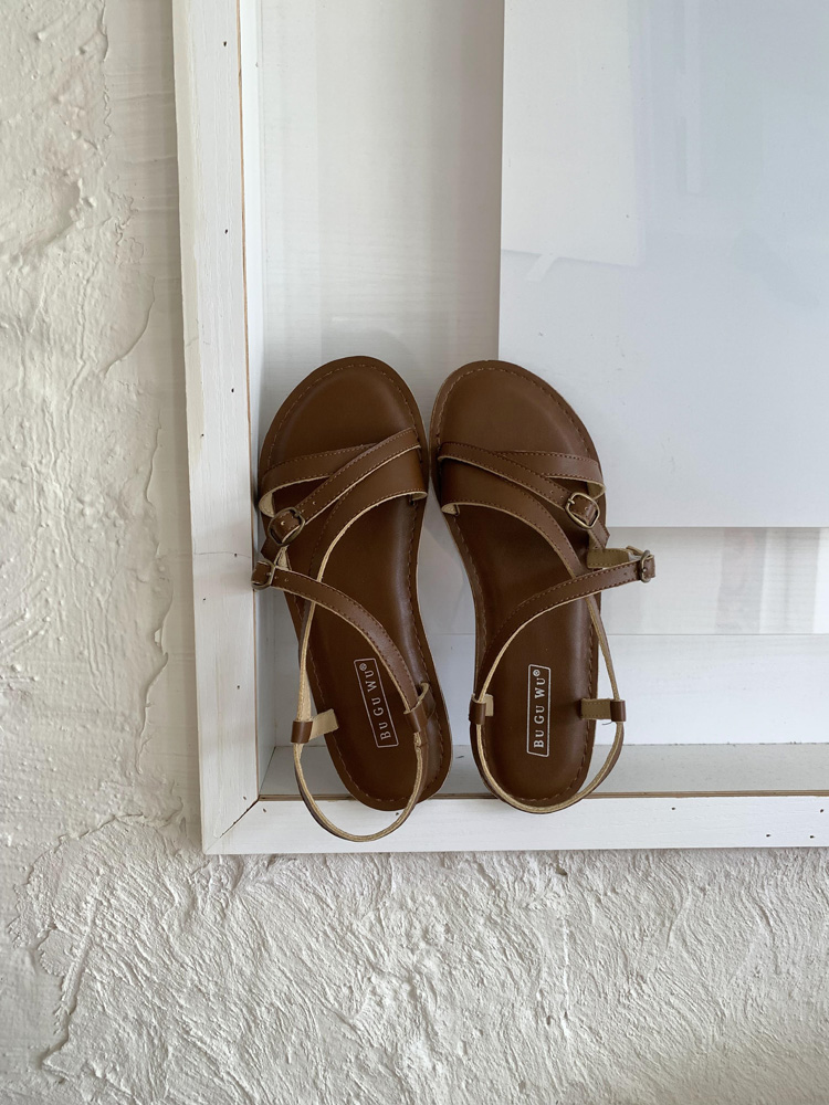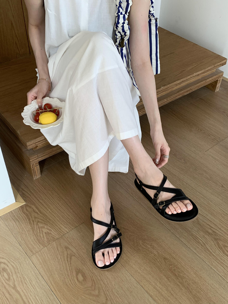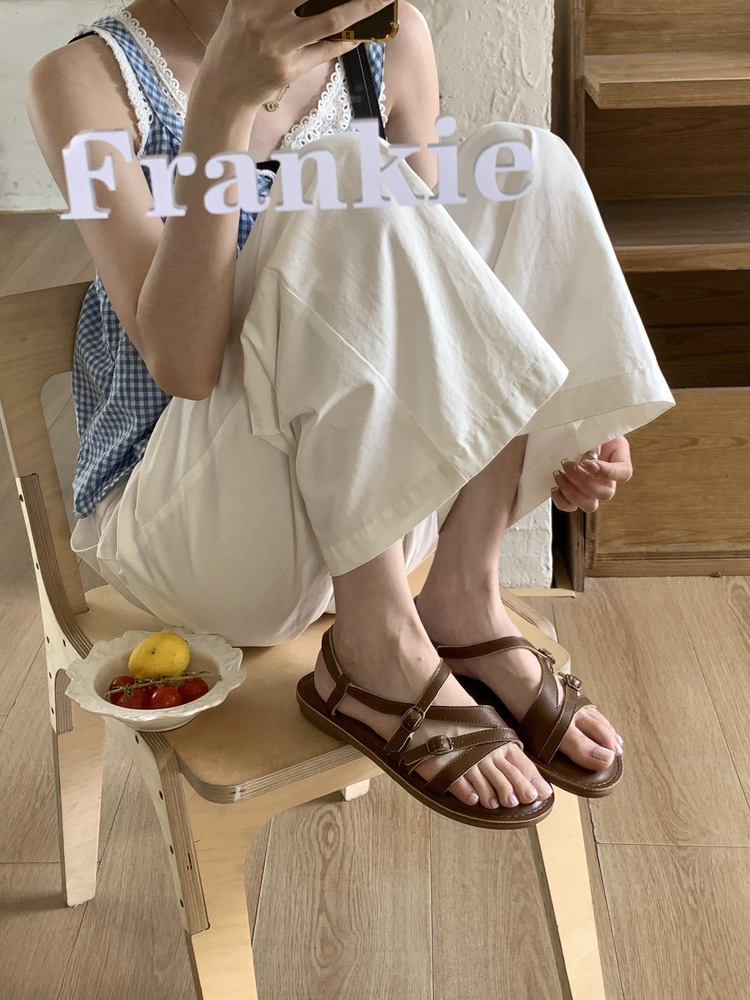둥근 발가락 샌들 여성 여름 2025 새로운 레트로 크로스 버클 스트랩 틈새 디자인 로마 신발 플랫스토어 가기