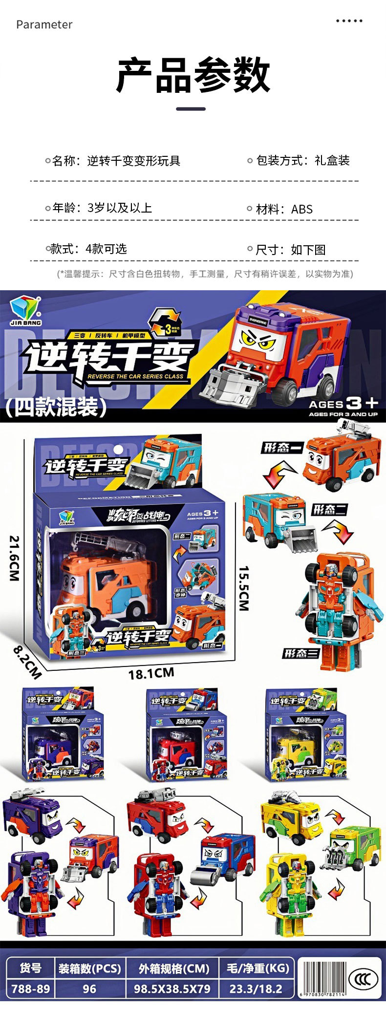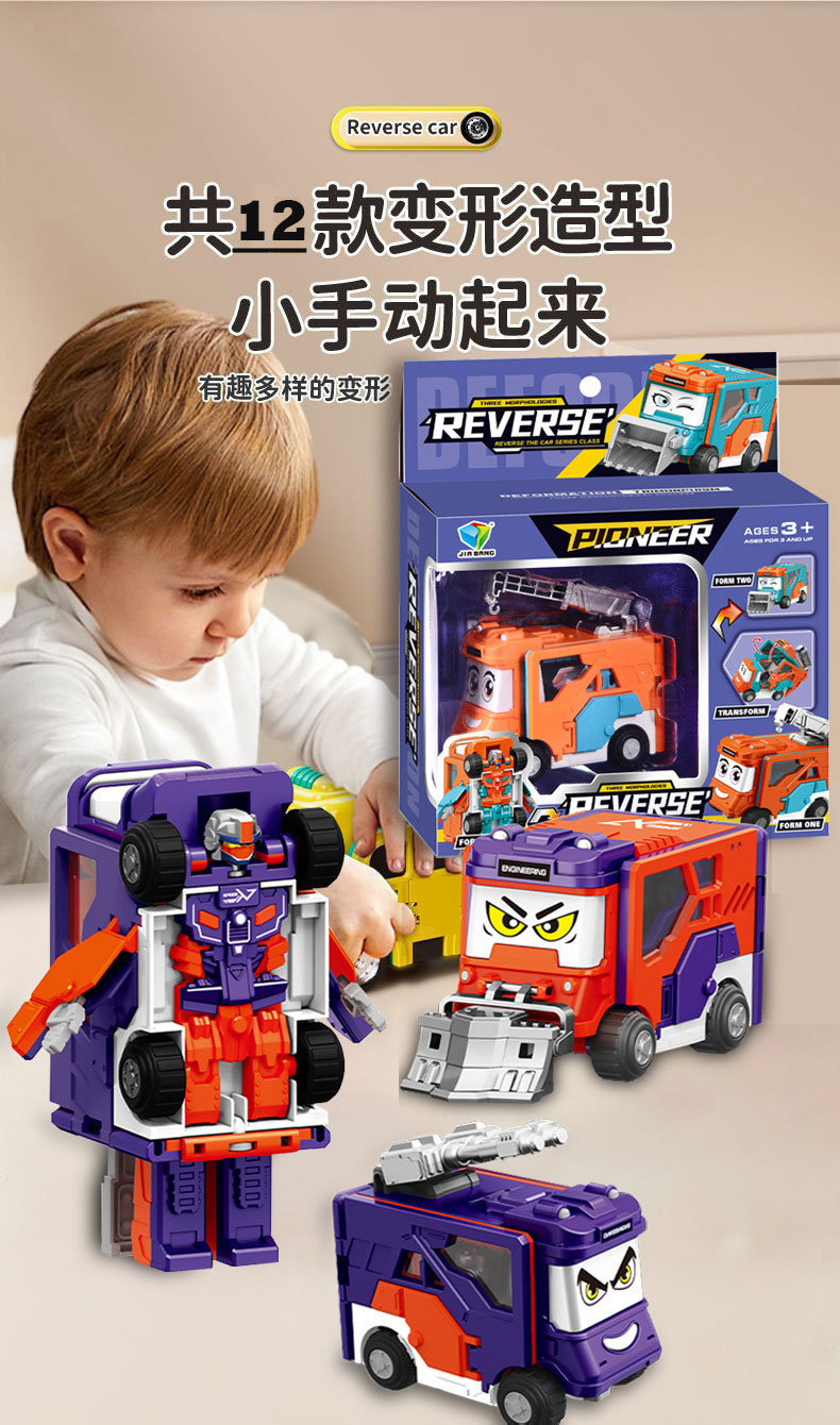 어린이 역방향 변형 자동차 변형 플립 자동차 3단계 역방향 로봇 선물 상자 세트 소년 교육 장난감스토어 가기