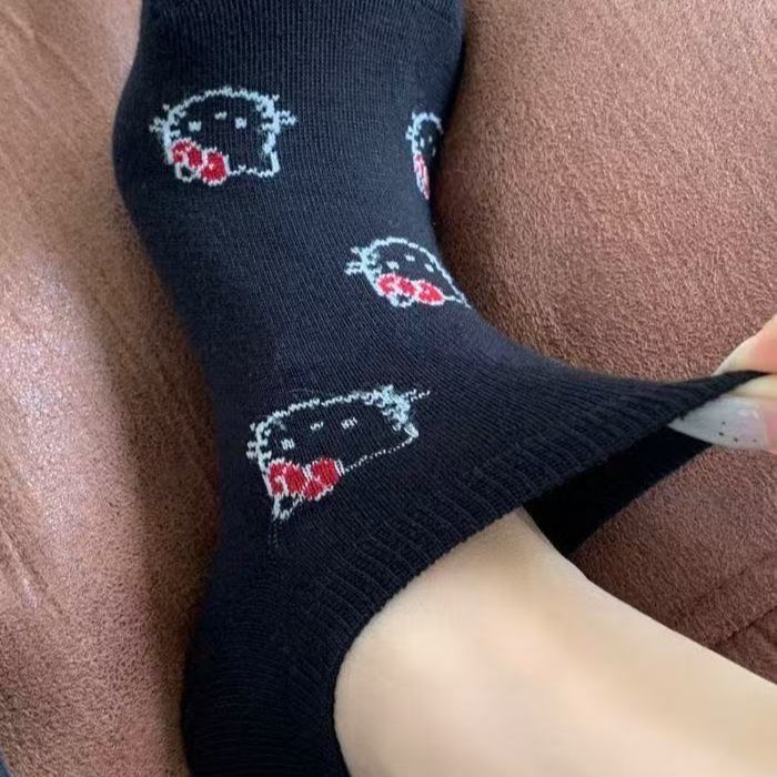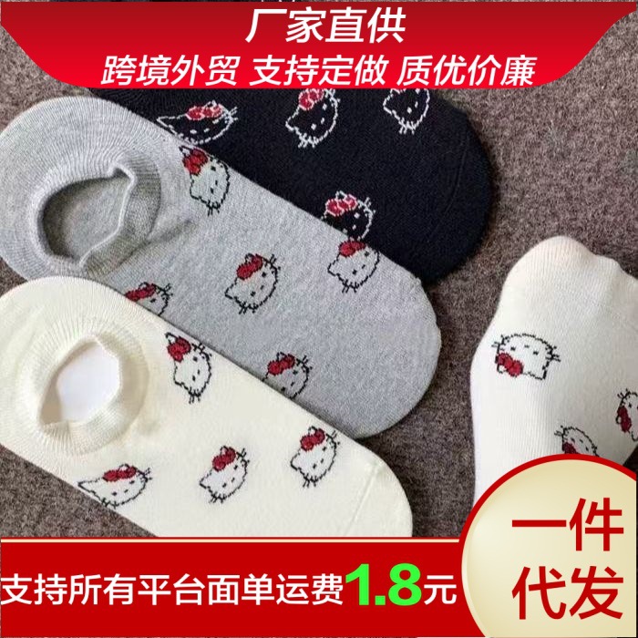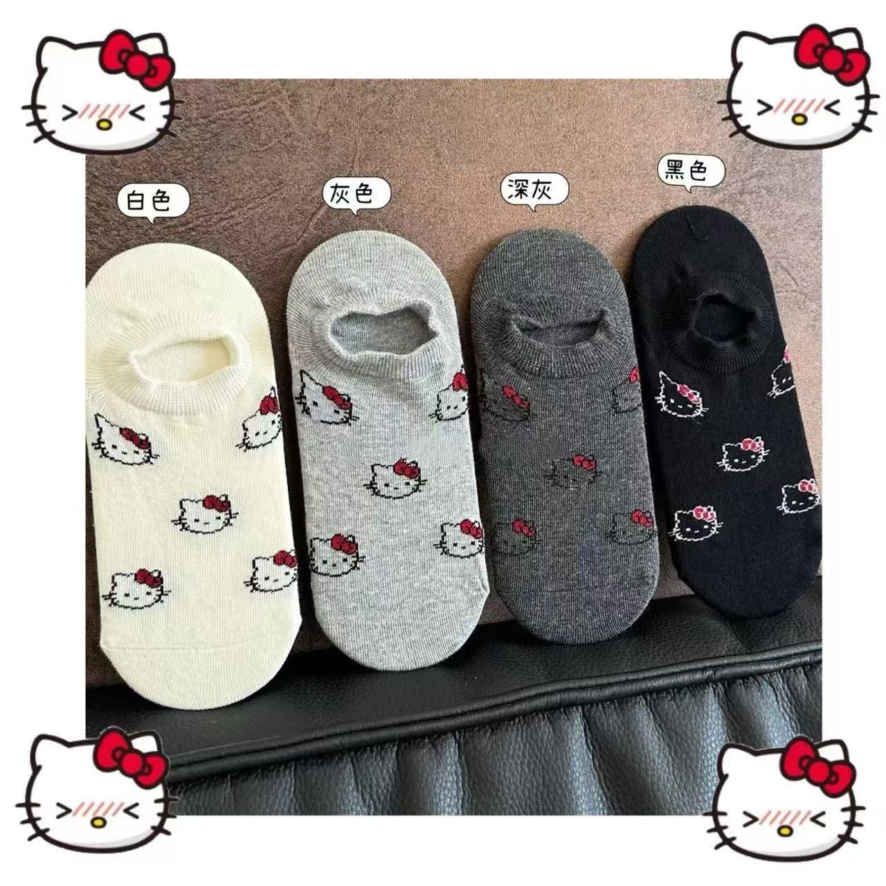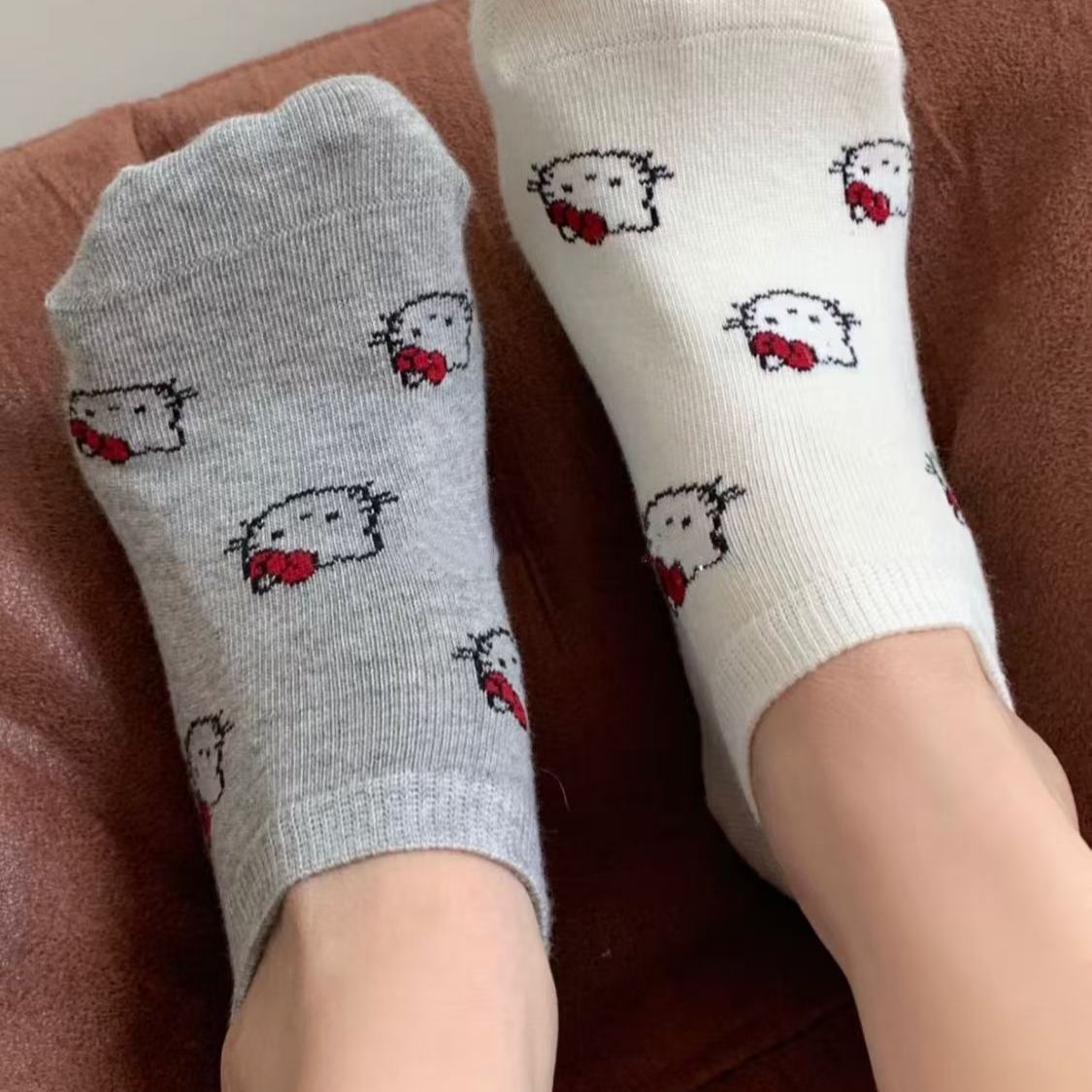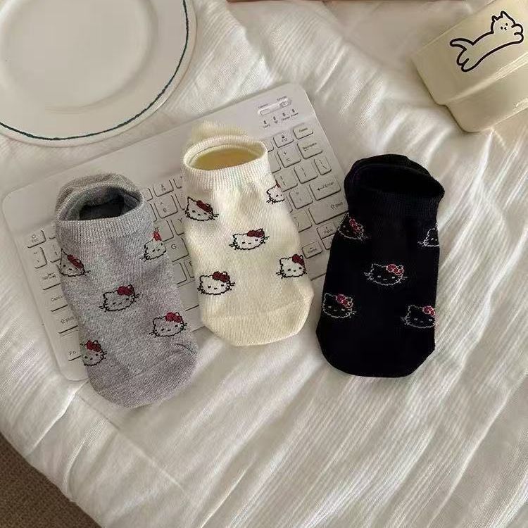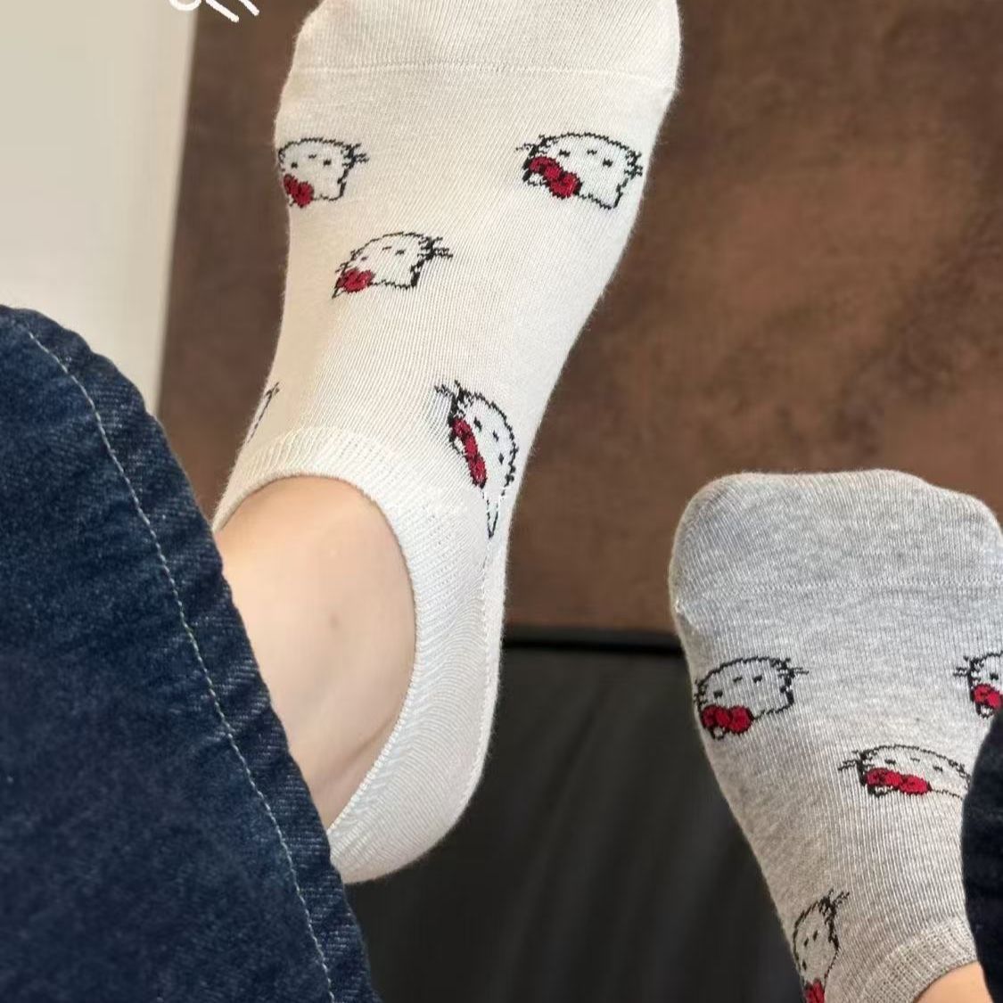 2025 새로운 만화 새끼 고양이 양말 여성 봄, 여름 한국 자카드 뼈없는 통기성 헬로 키티 보트 양말스토어 가기