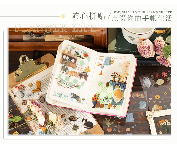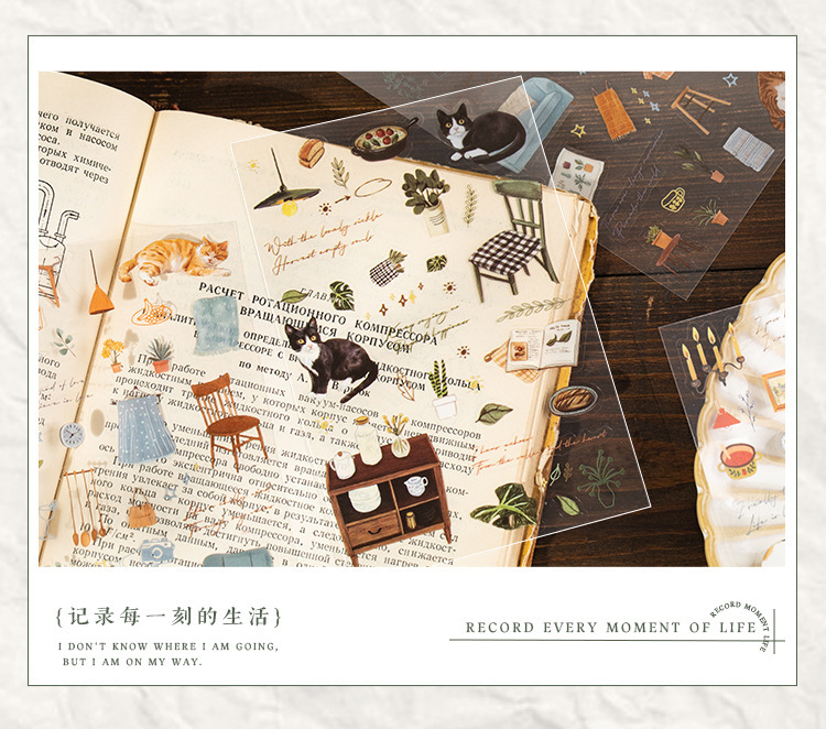 언어 유휴 이중 투명 애완 동물 필름 절단 스티커 시간 언어 시리즈 방수 소재 손 계정 컵 DIY 조경 콜라주