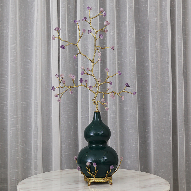 유럽과 미국의 프랑스 세라믹 조각 조롱박 꽃 가지 장식품 스톤 자수정 거실 입구 장식품