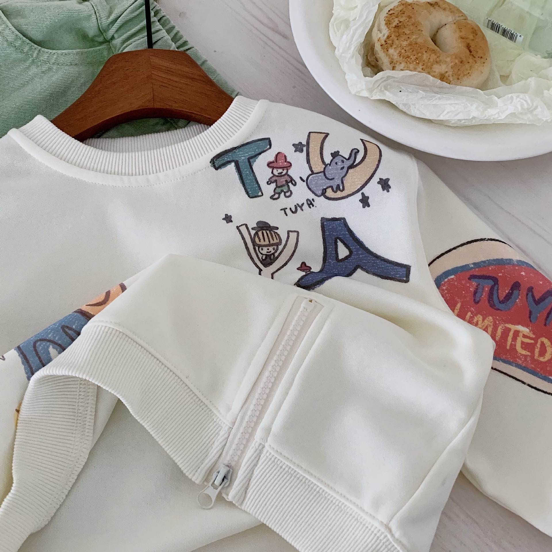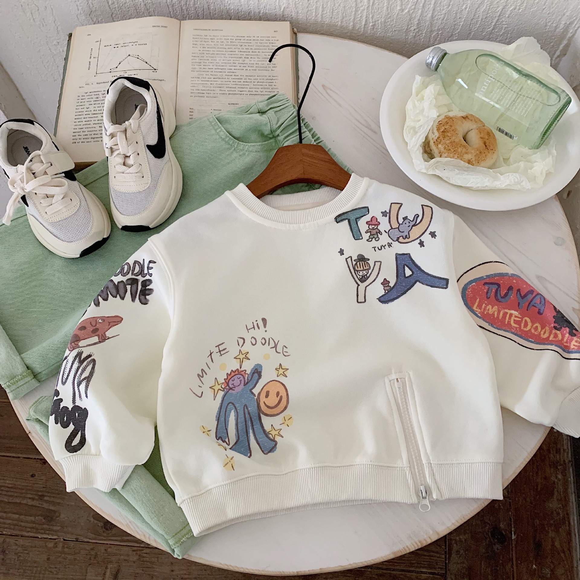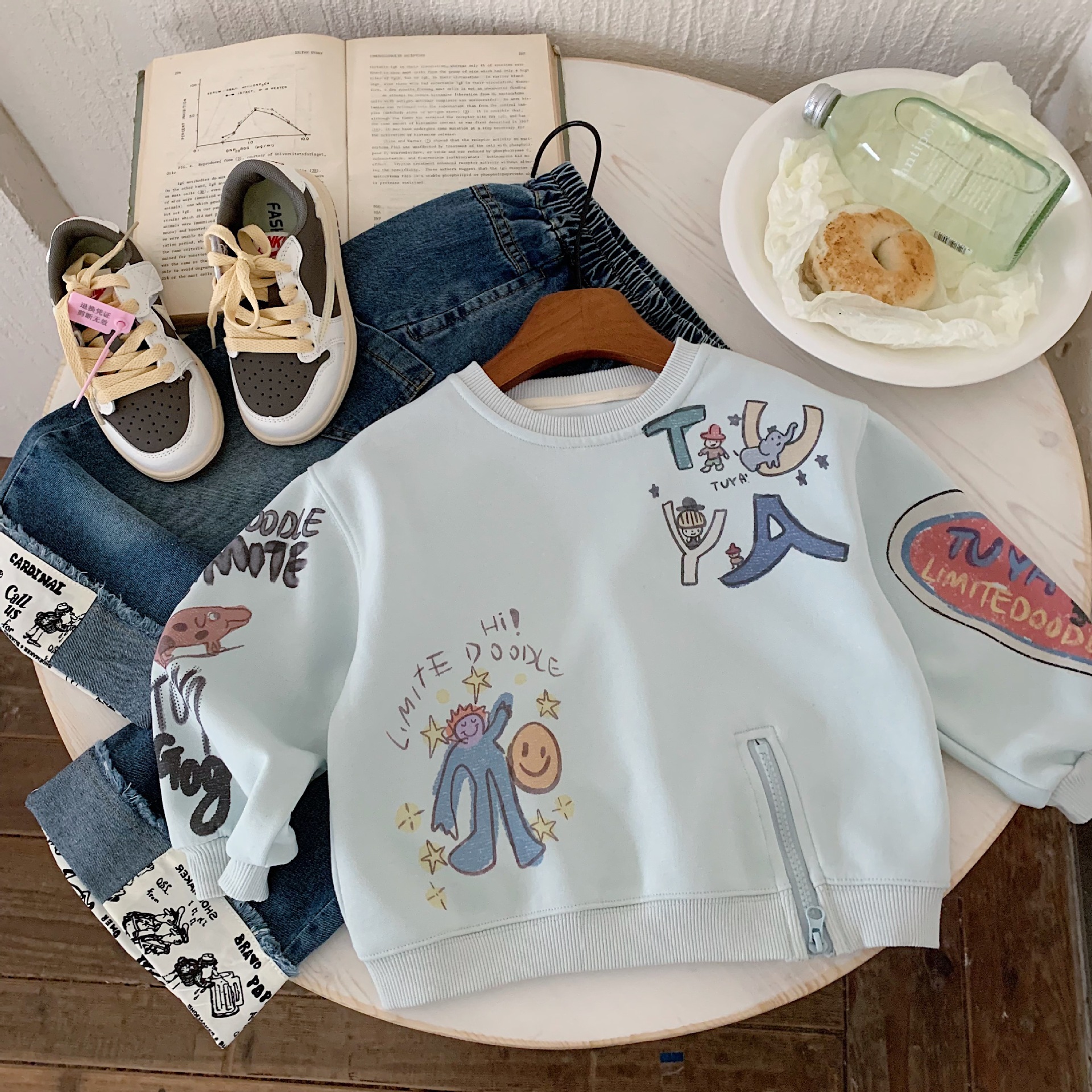 어린이 봄 운동복 2025 새로운 소년 낙서 운동복 만화 인쇄 봄과 가을 어린이 라운드 넥 탑스토어 가기