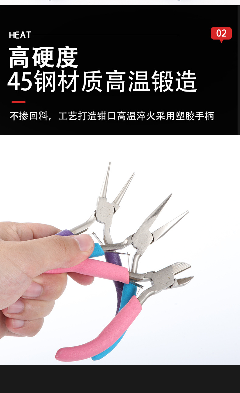보석 펜치 3 피스 세트 다채로운 다기능 바늘 코 펜치 대각선 펜치 둥근 입 펜치 DIY 수제 미니 보석 펜치