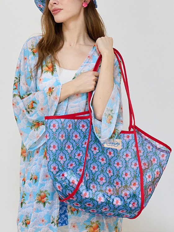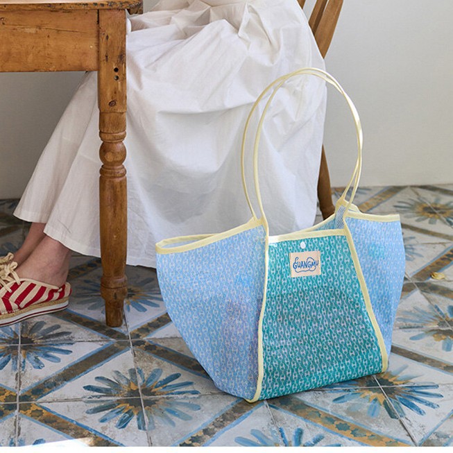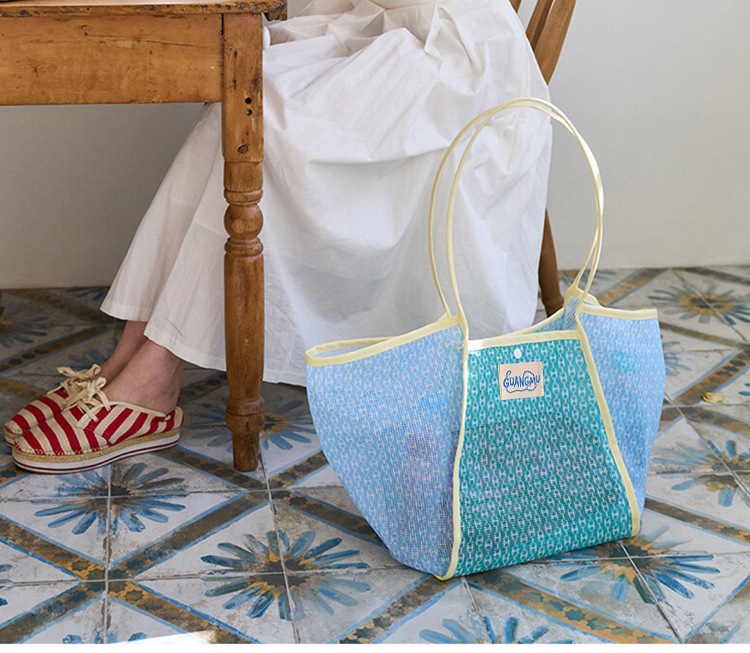 해변 가방 대용량 대비 어깨 가방 중공 메쉬 쇼핑 가방 여행 해변 장난감 보관 가방 수영 가방스토어 가기