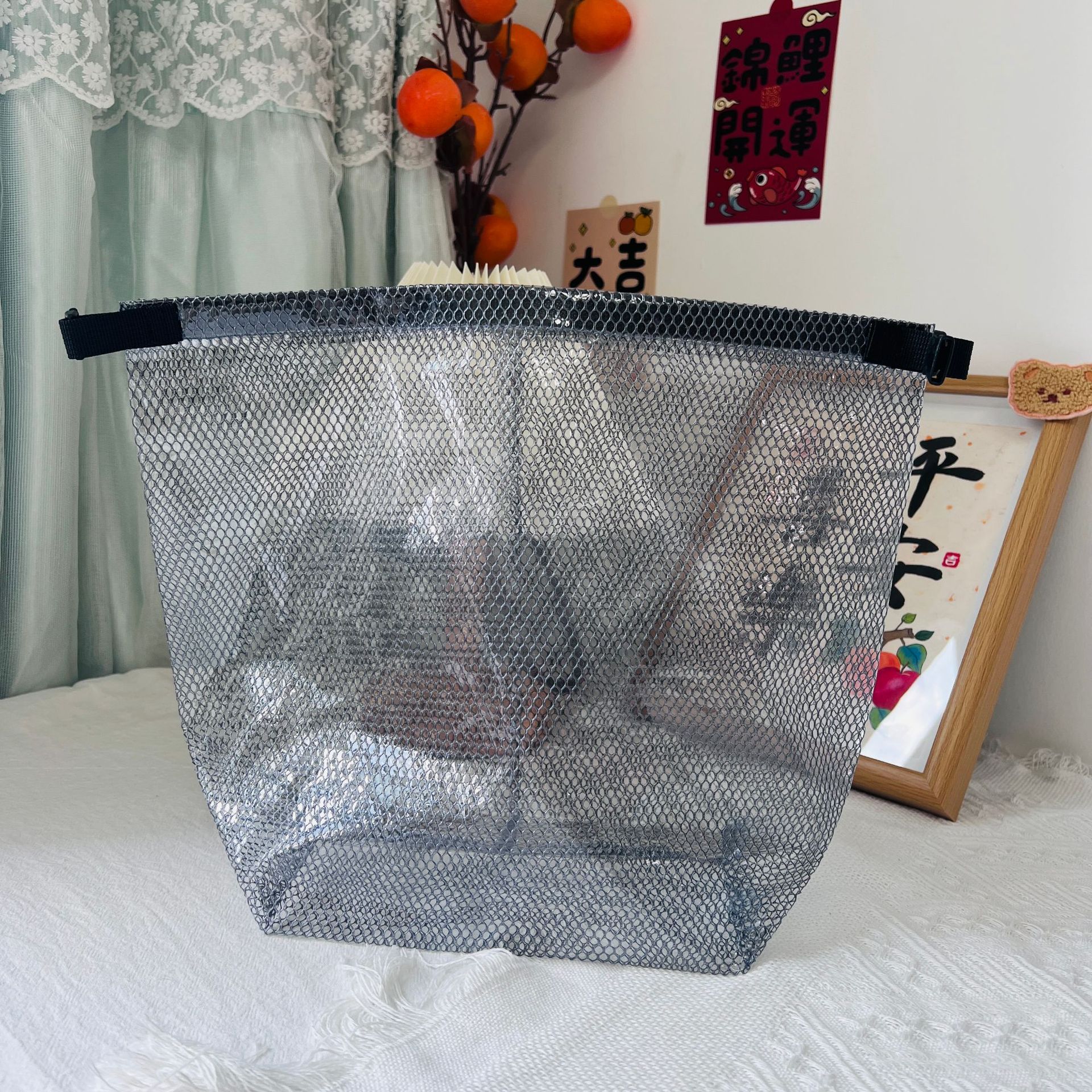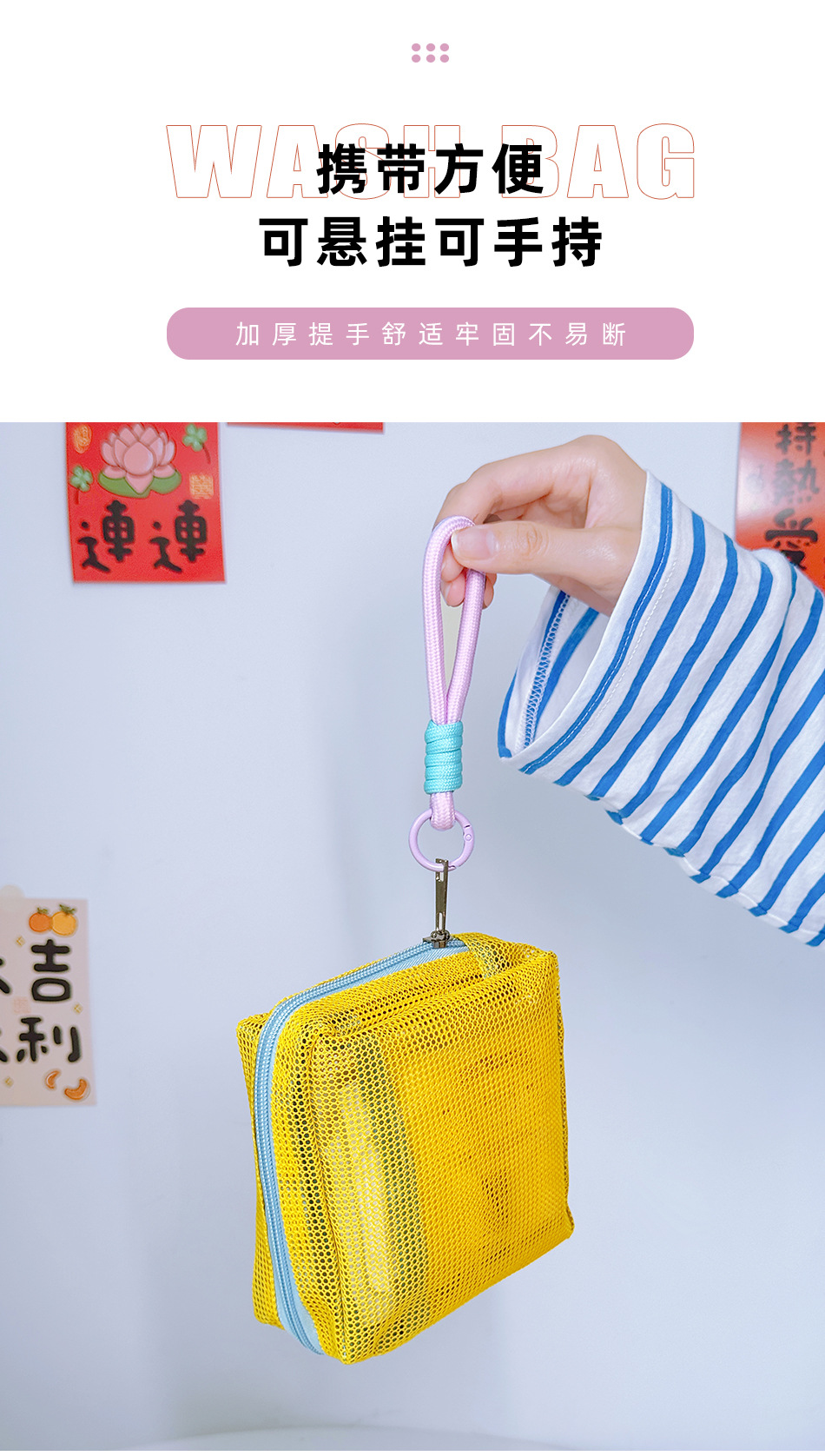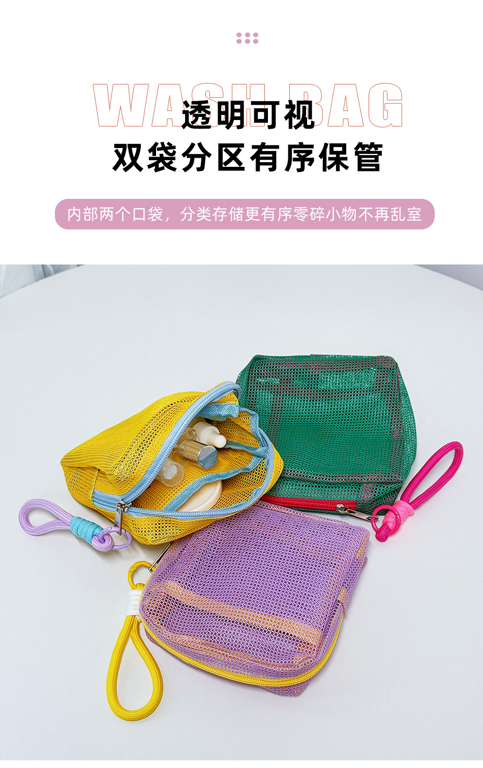 2025 새로운 도파민 화장품 가방 색상 대비 휴대용 메쉬 캐주얼 중공 손 유용한 세척 여행 보관 가방스토어 가기