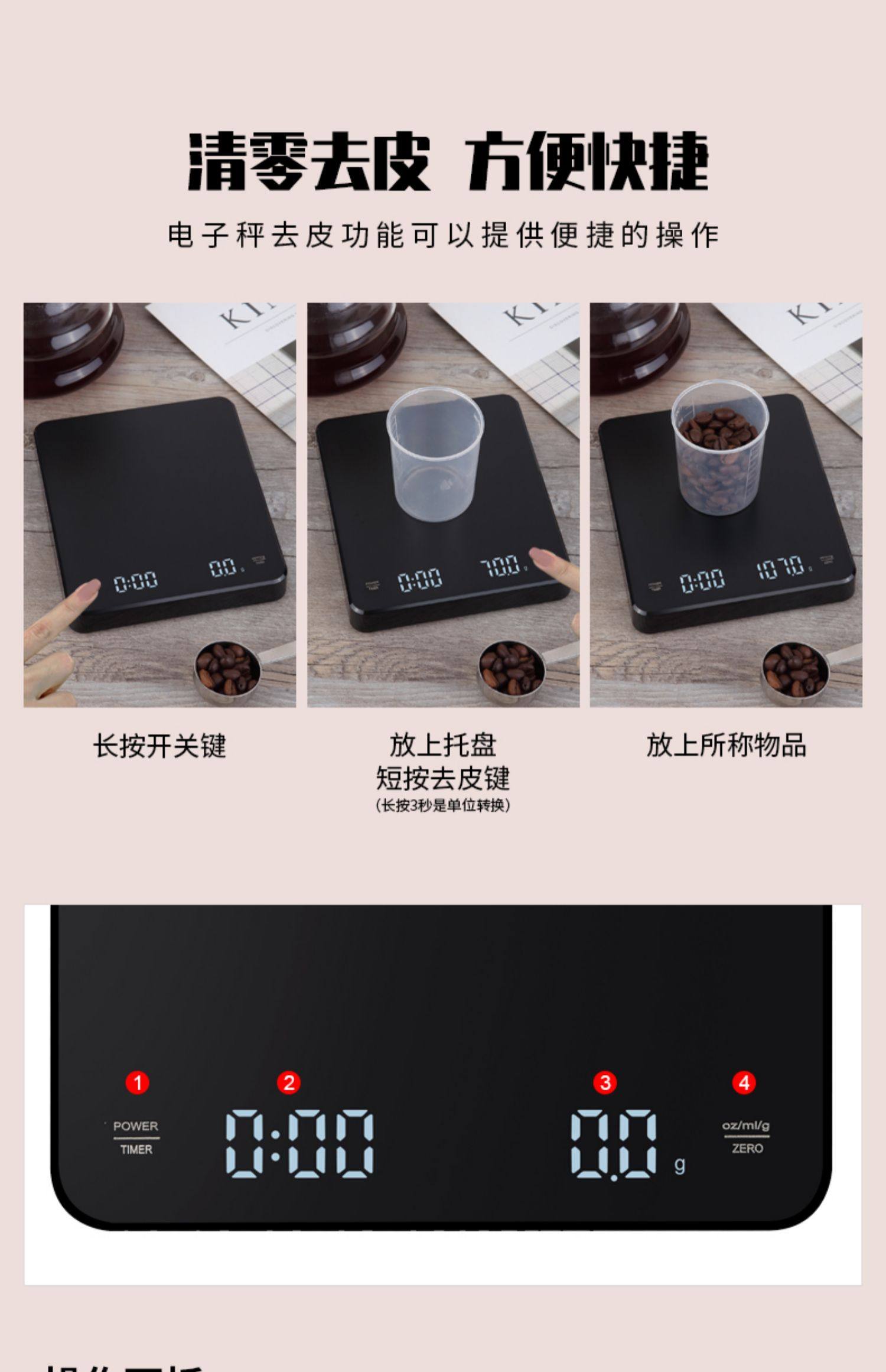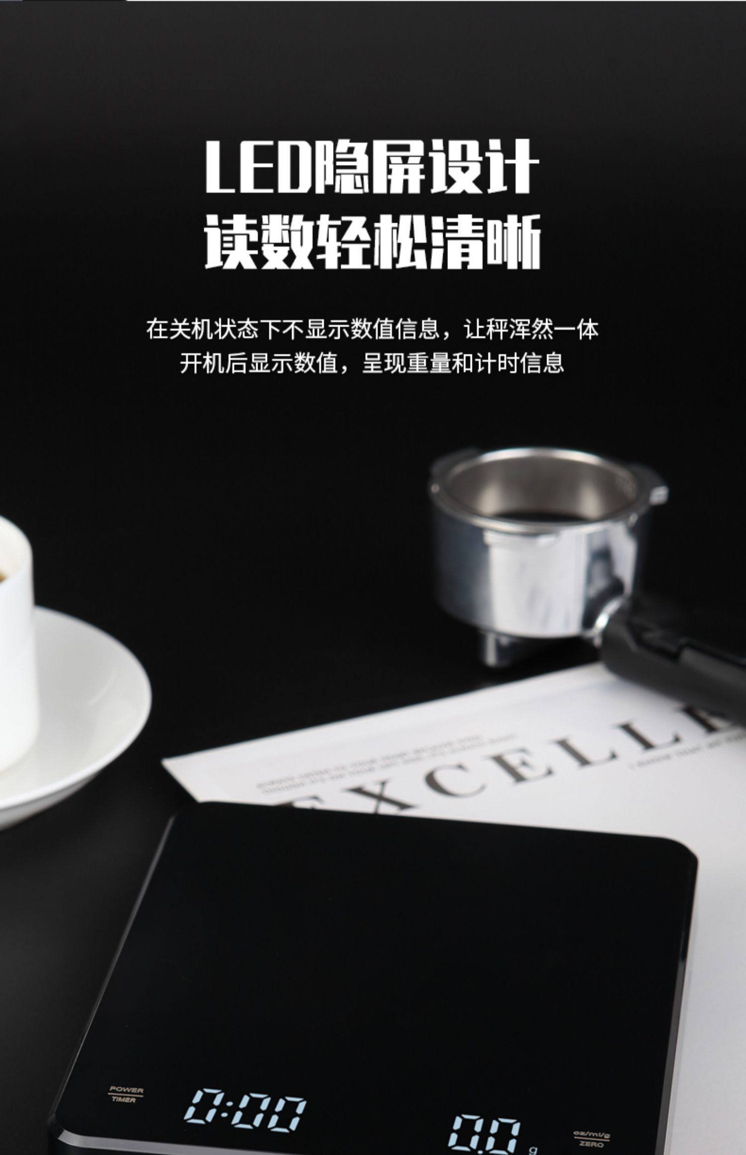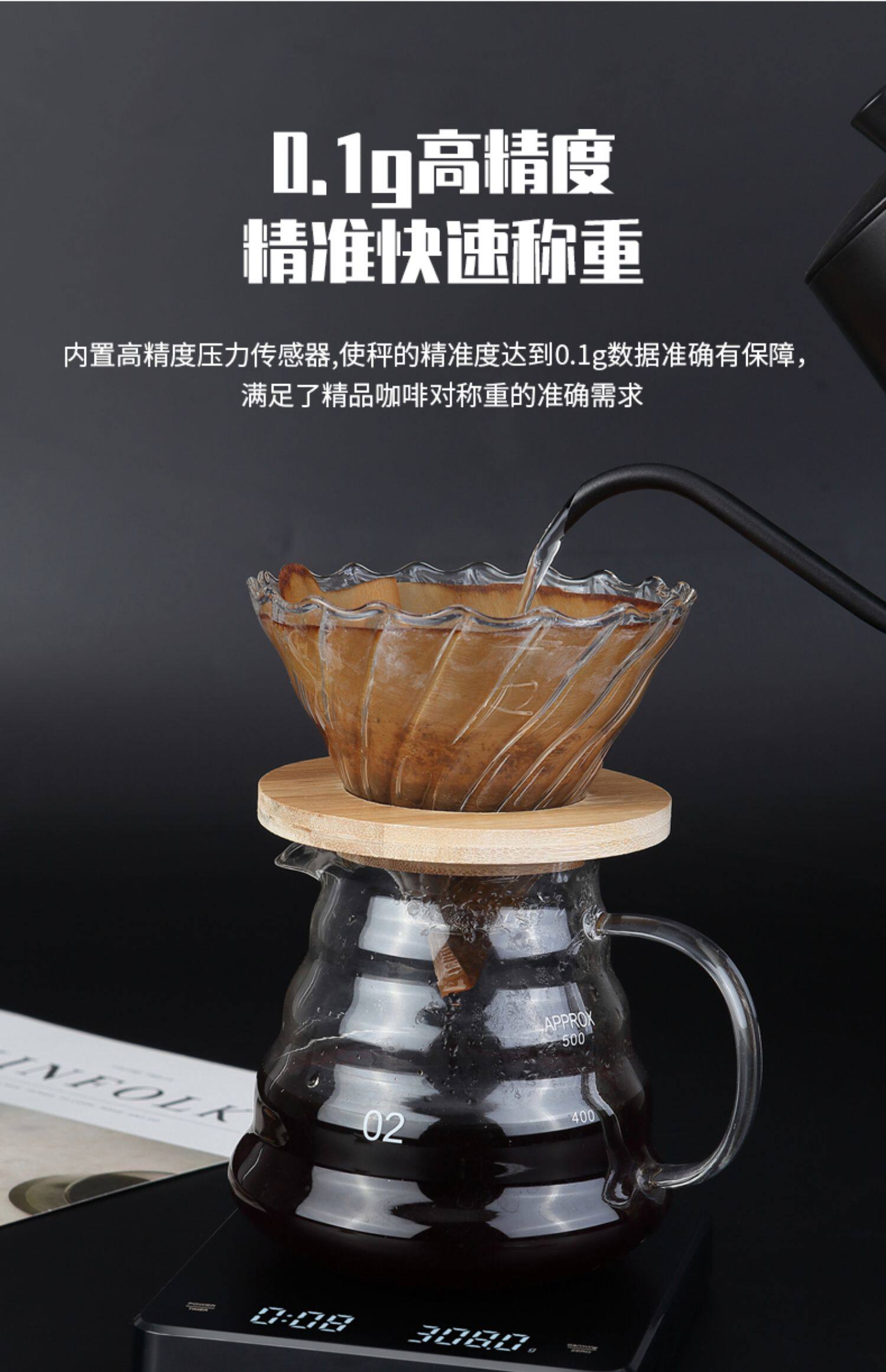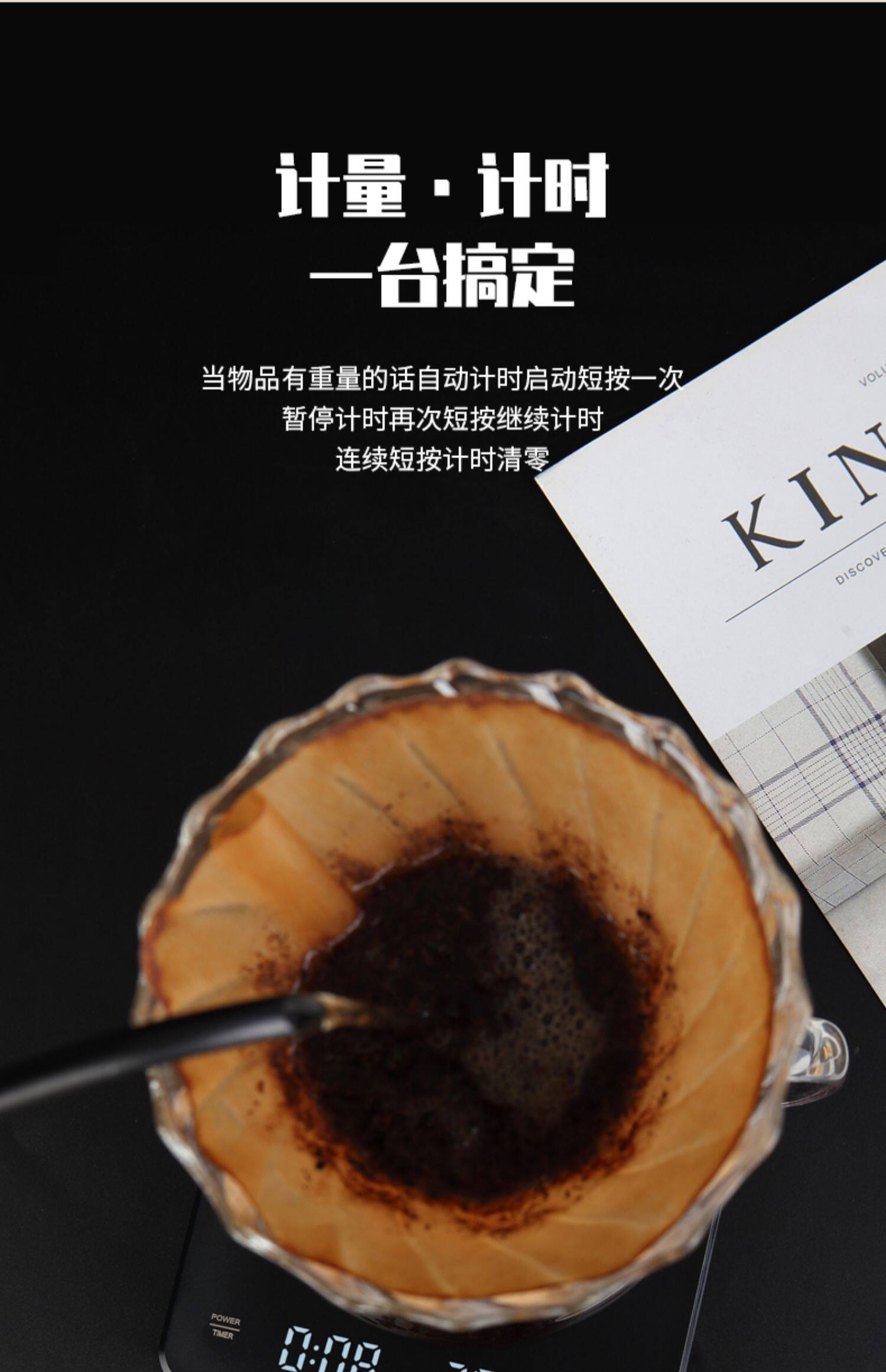 핸드 브루 커피 전자 저울, 자동 타이밍 저울, 소형 차 저울, 고정밀 가정용 주방 베이킹 저울, 보석 저울
