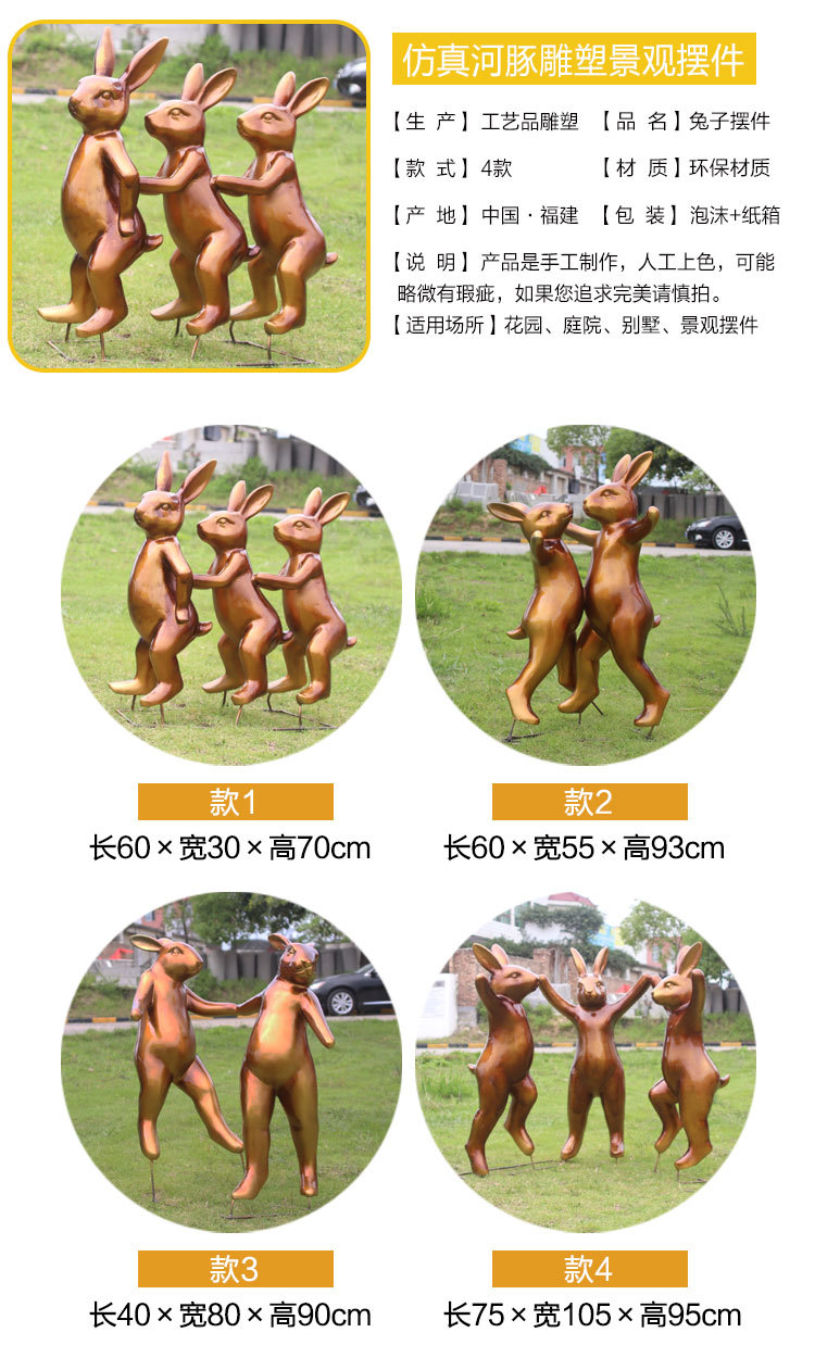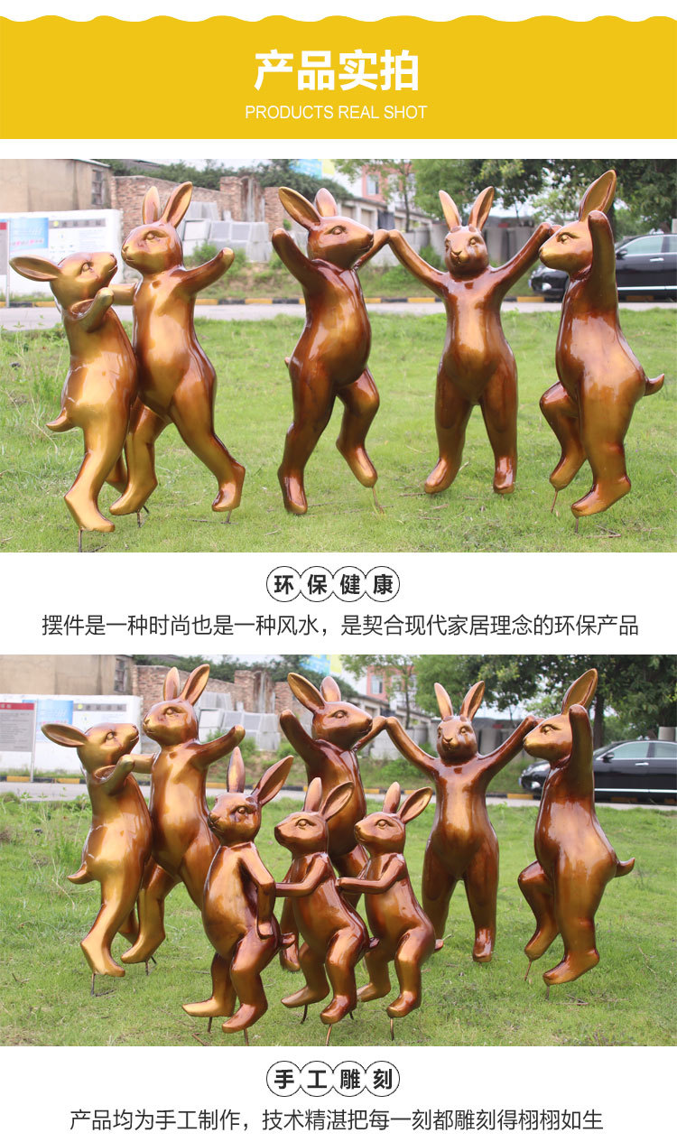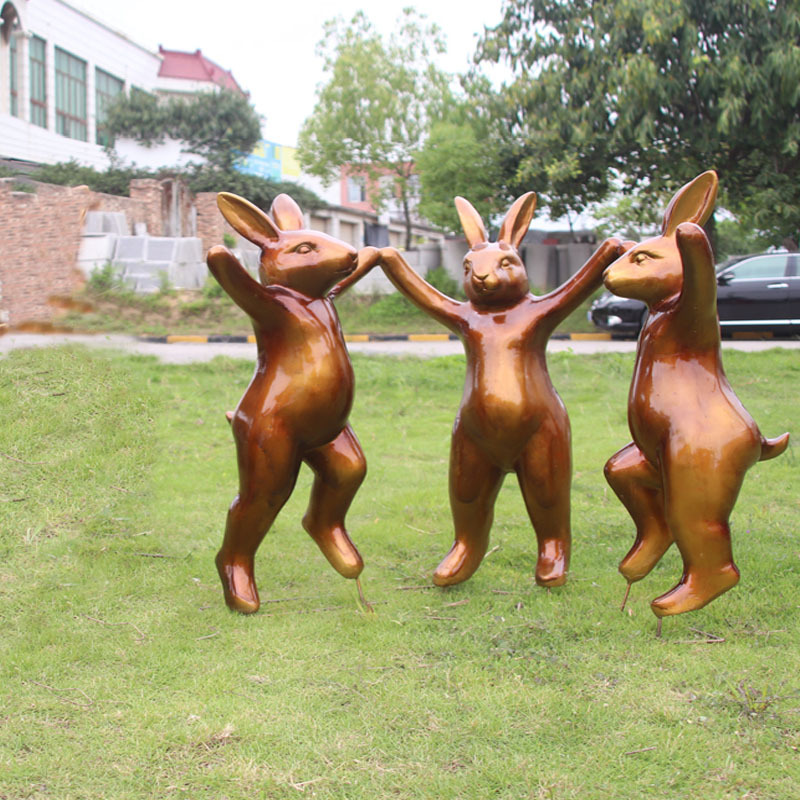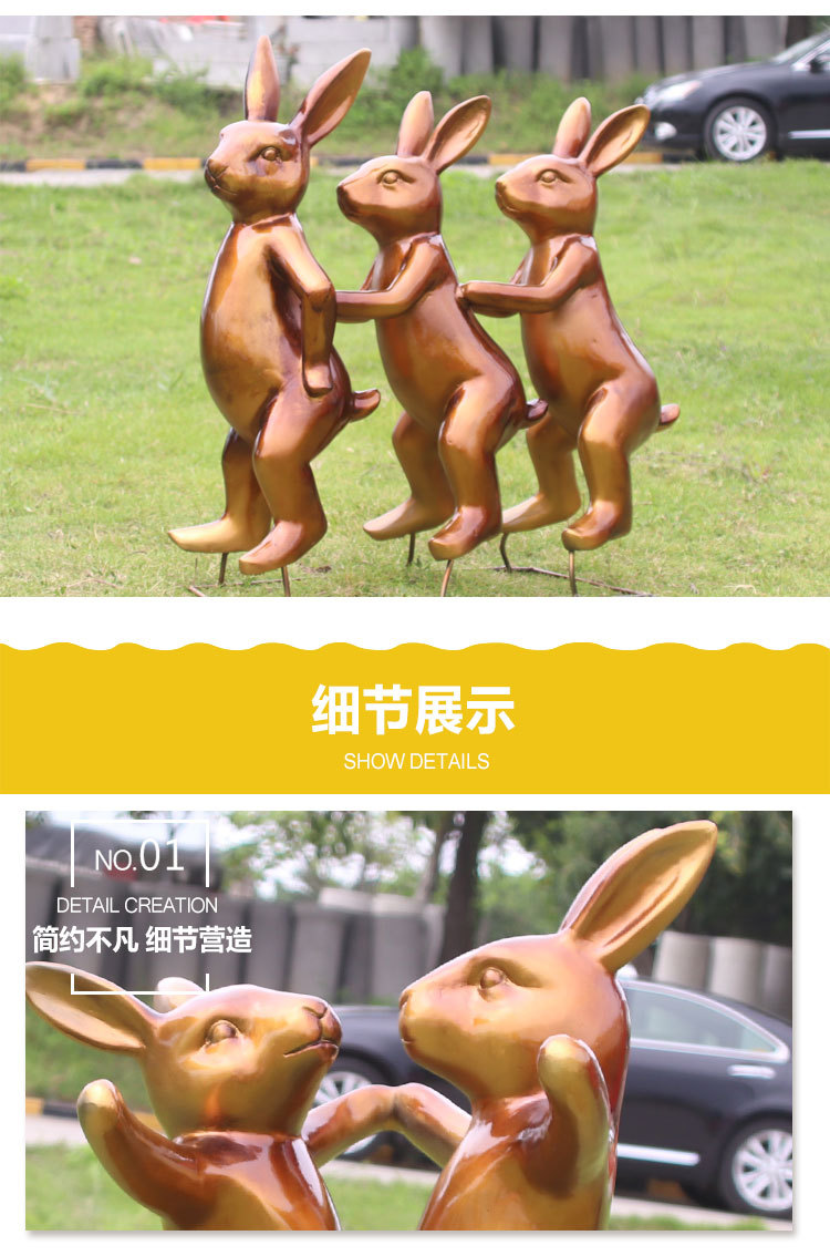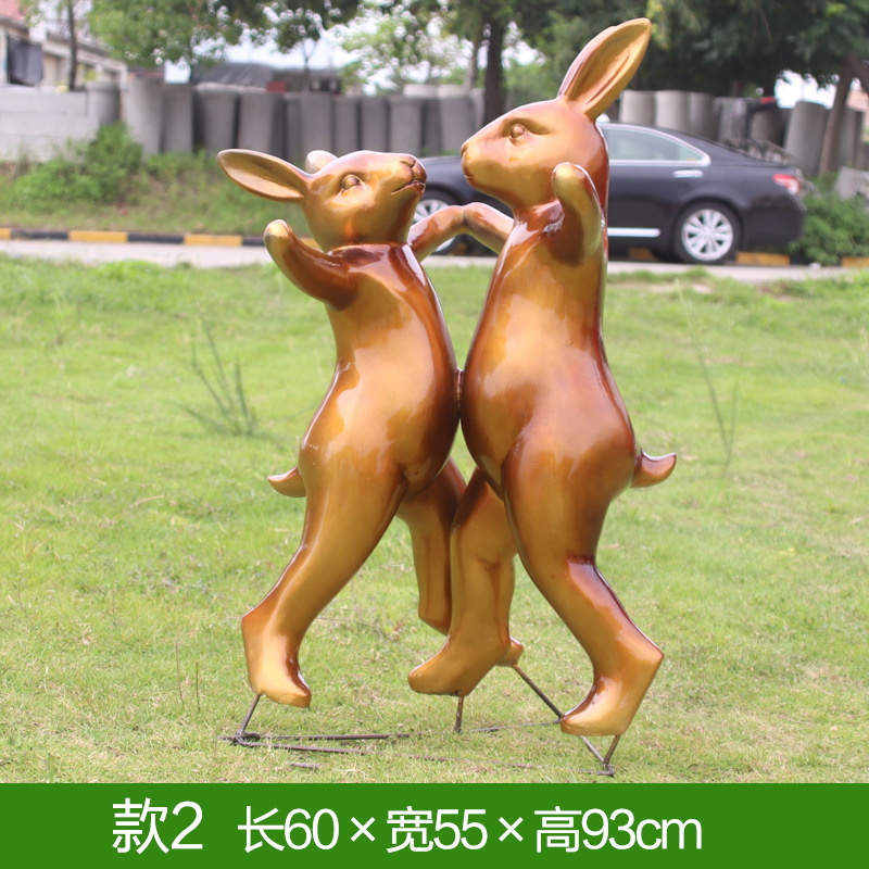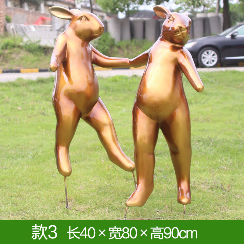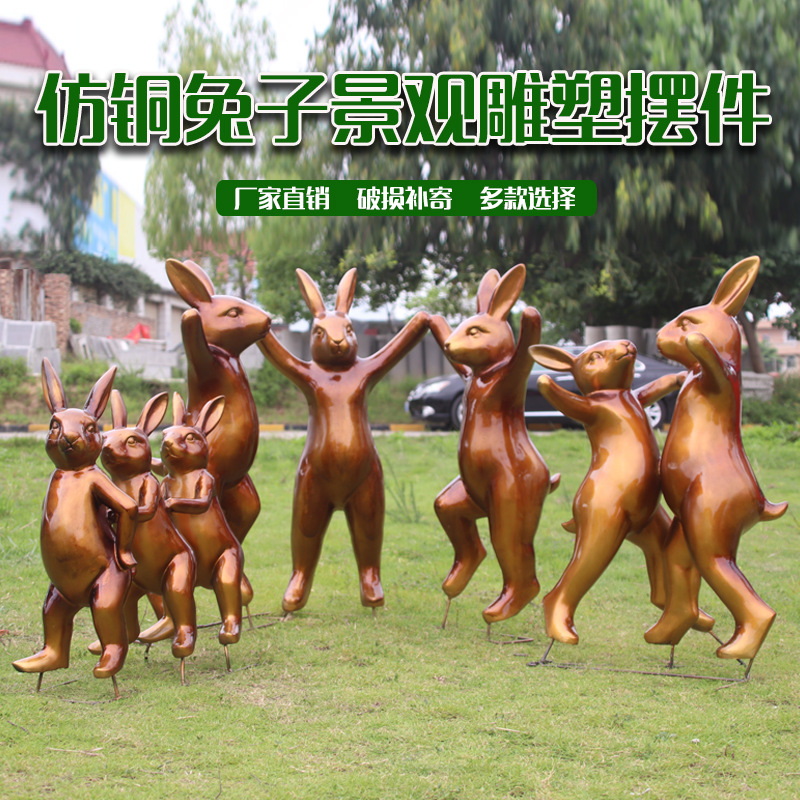 야외 정원 풍경 모방 구리 토끼 장식품 유리 섬유 강화 플라스틱 시뮬레이션 토끼 조각 유치원 커뮤니티 광장 아름다운 첸스토어 가기