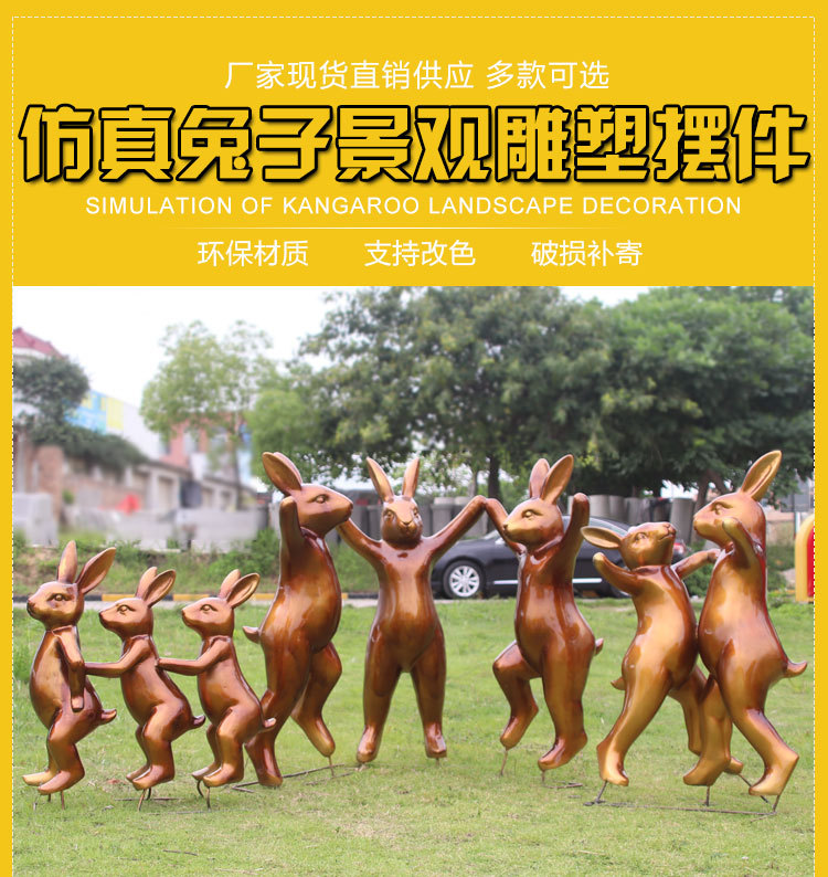 야외 정원 풍경 모방 구리 토끼 장식품 유리 섬유 강화 플라스틱 시뮬레이션 토끼 조각 유치원 커뮤니티 광장 아름다운 첸